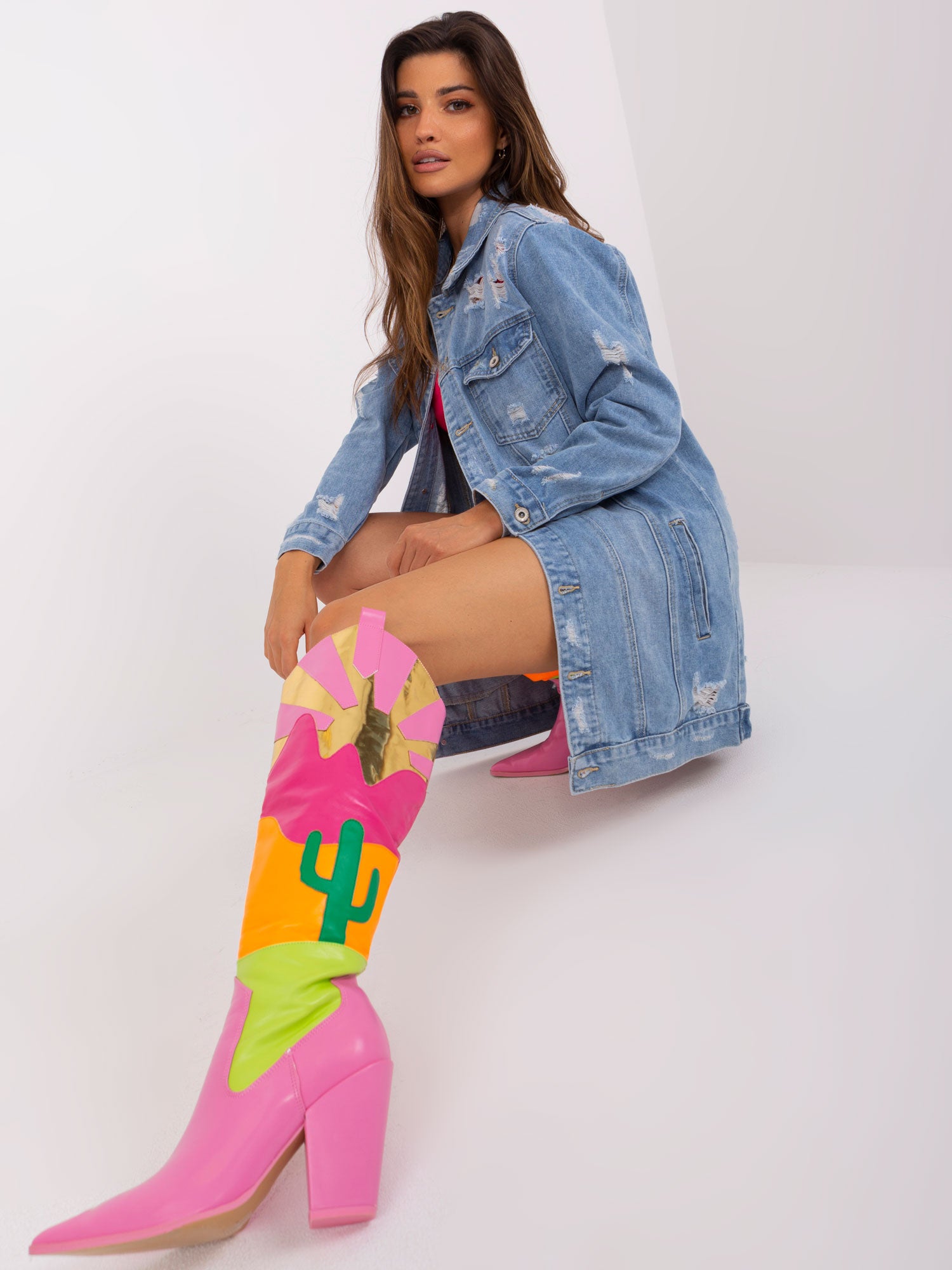 Modelka ma na sobie rozmiar S. Wymiary modelki: wzrost 173 cm, biust 89 cm, talia 65 cm, biodra 91 cm.