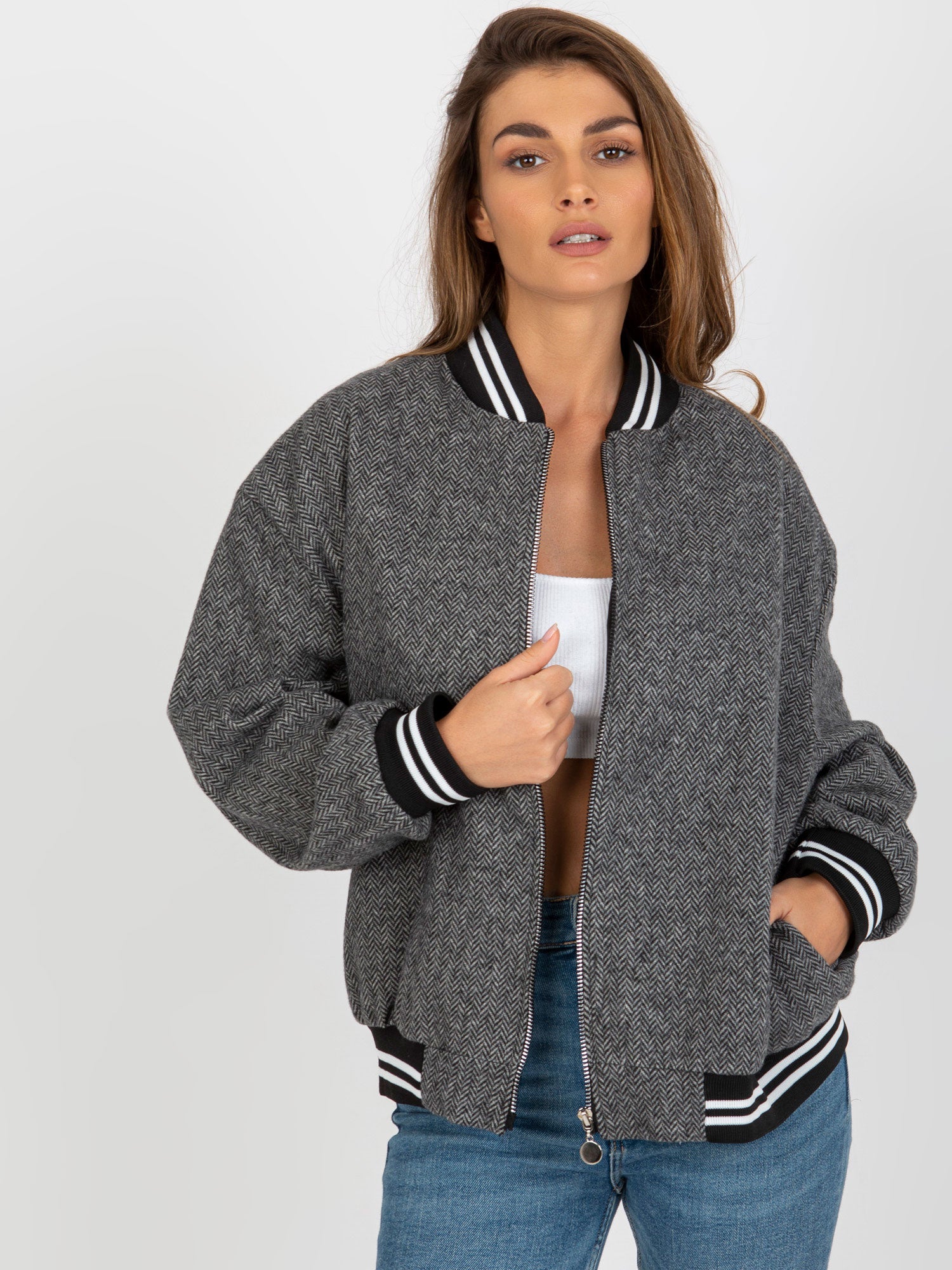Ciemnoszara przejściowa kurtka bomberka oversize .