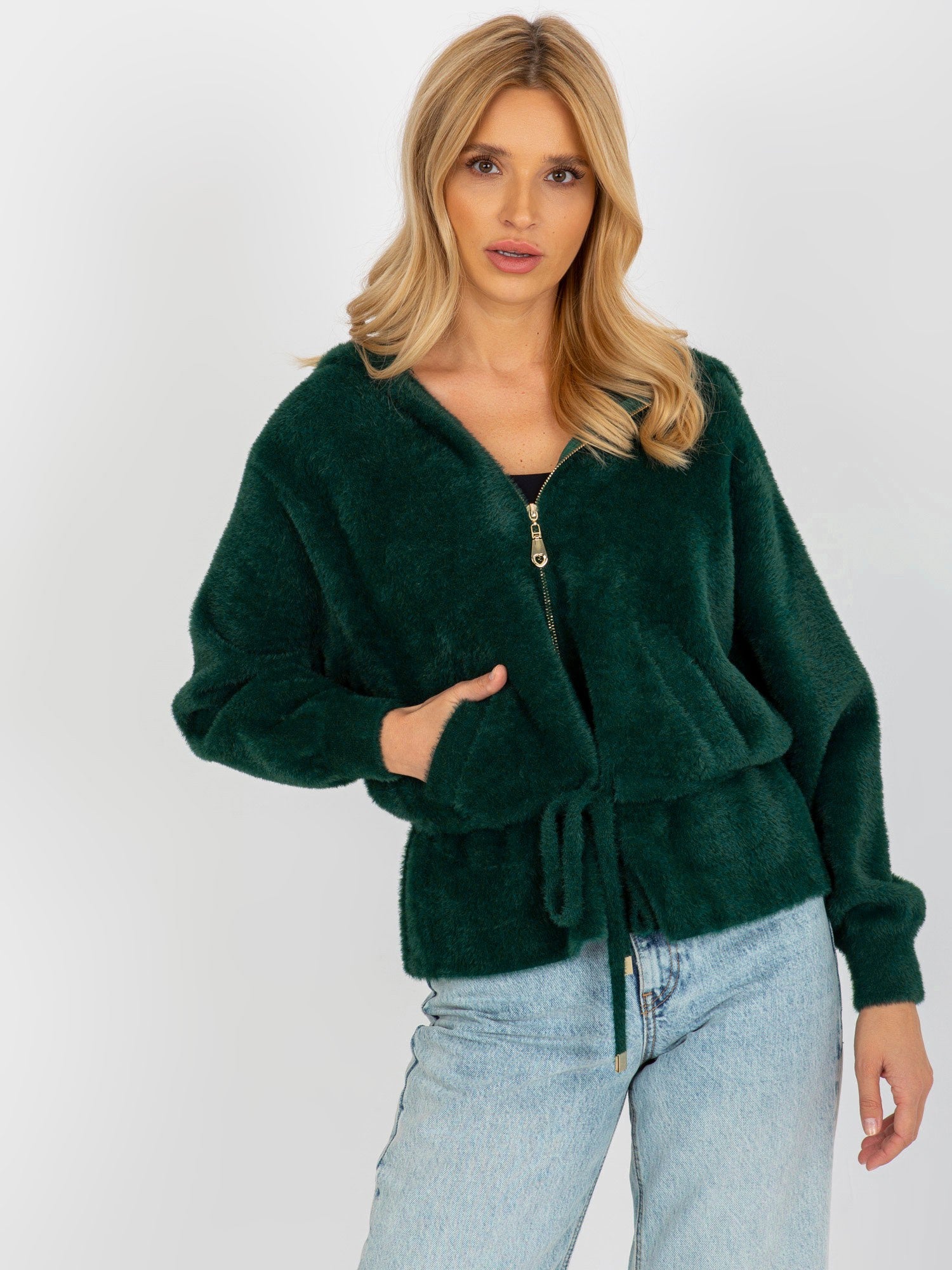 Ciemnozielona przejściowa kurtka alpaka ze ściągaczem Keilani .