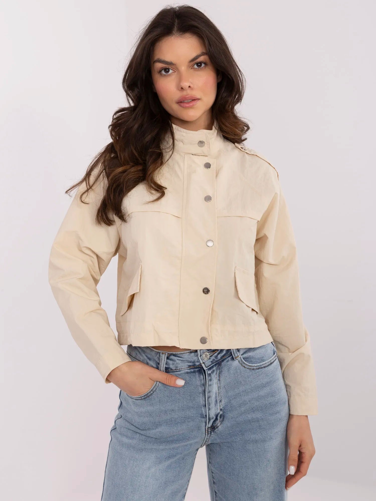 Wymiary kurtki w rozmiarze one size mierzone na płasko: szerokość pod pachami - 56 cm, długość rękawa - 71 cm (od szwu), szerokość w biodrach - 56 cm, długość całkowita - 50 cm.