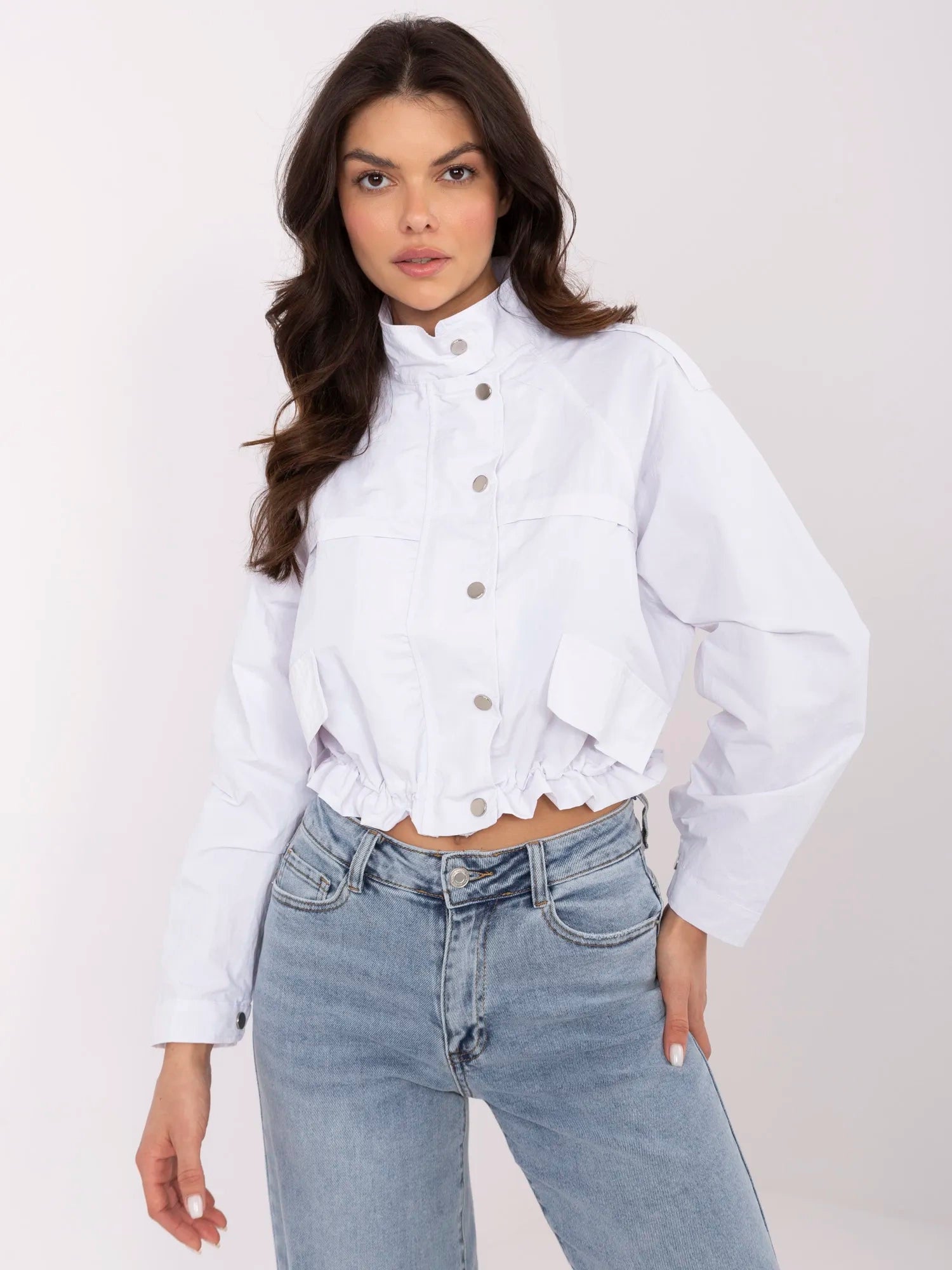 Wymiary kurtki w rozmiarze one size mierzone na płasko: szerokość pod pachami - 56 cm, długość rękawa - 71 cm (od szwu), szerokość w biodrach - 56 cm, długość całkowita - 50 cm.