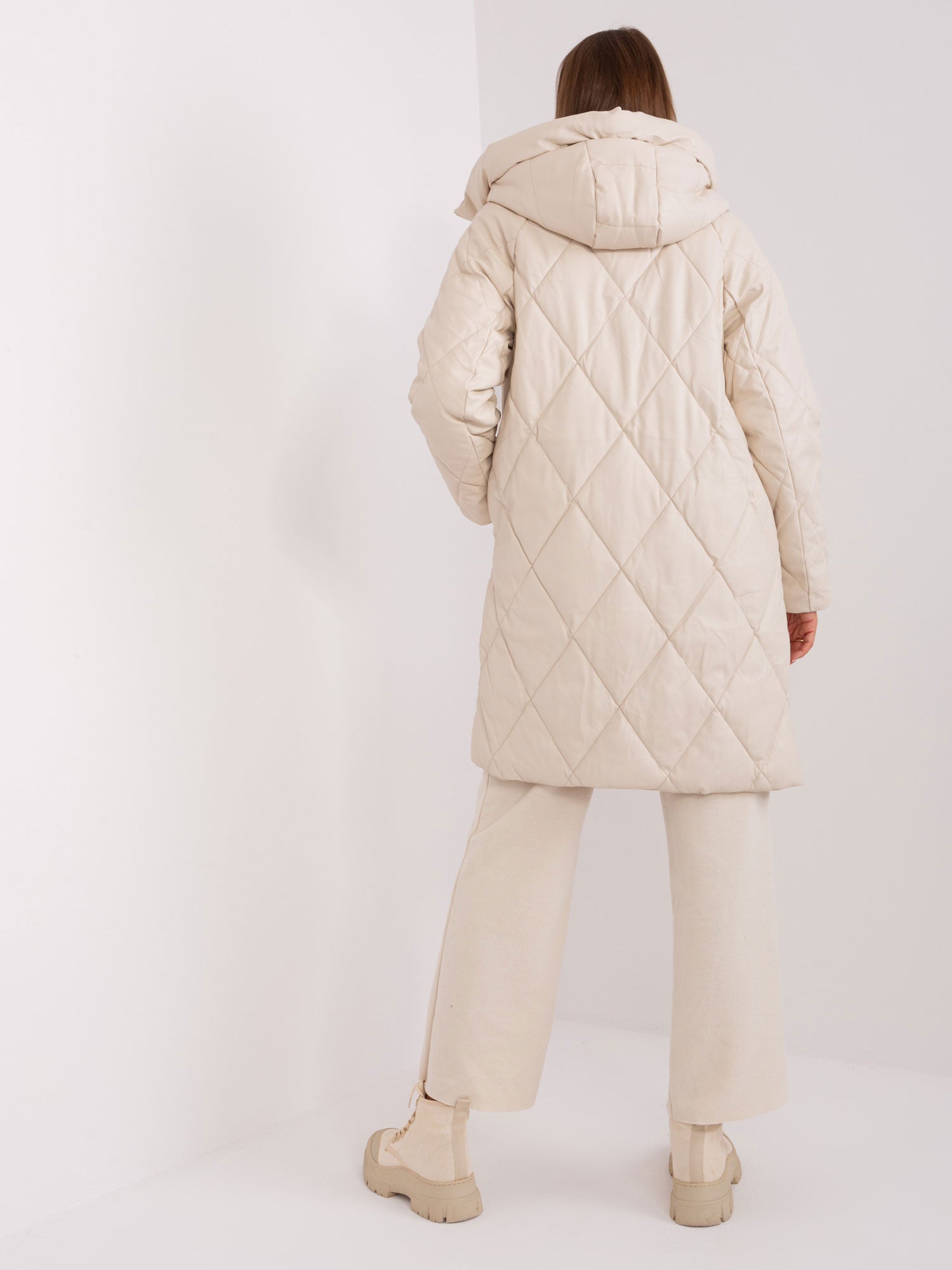 Jasnobeżowa damska kurtka zimowa z eco skóry .