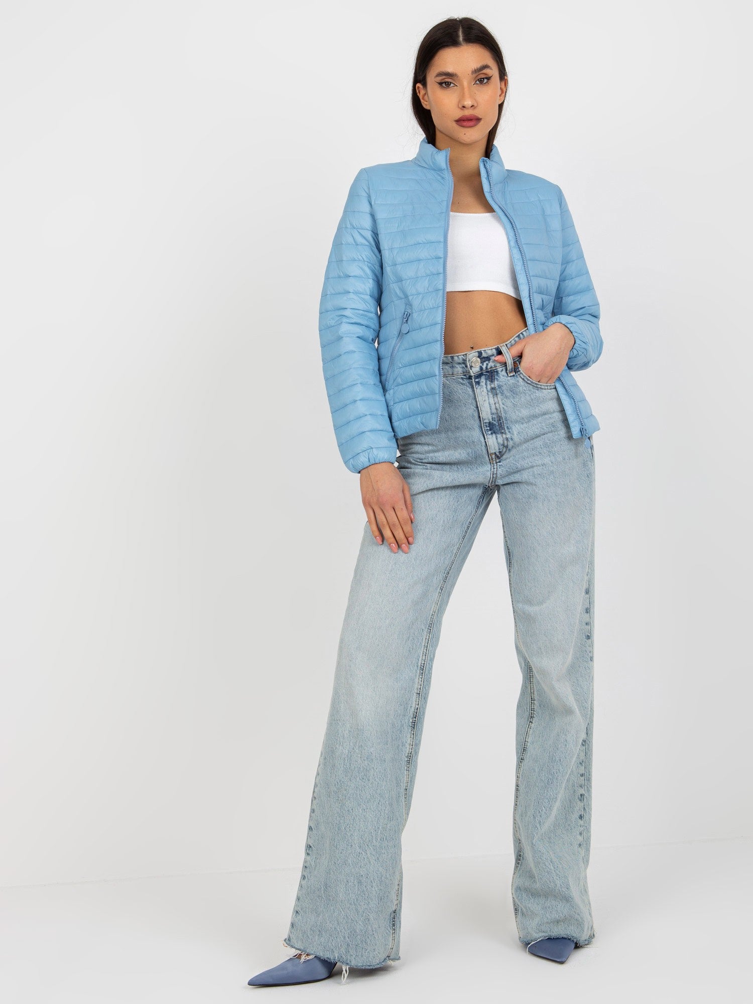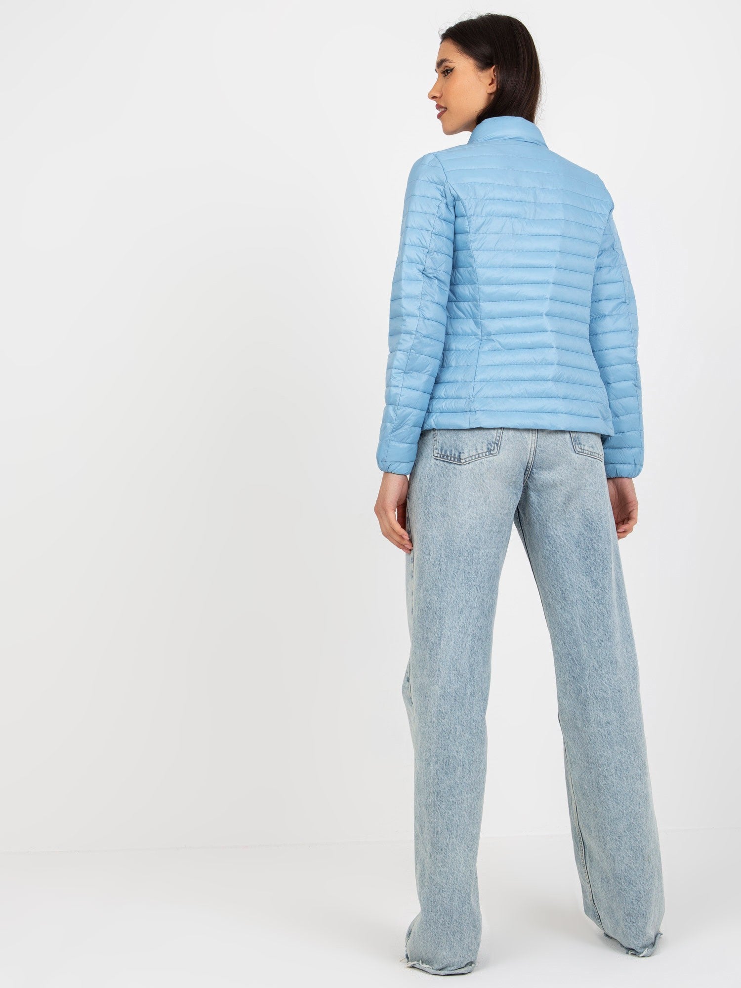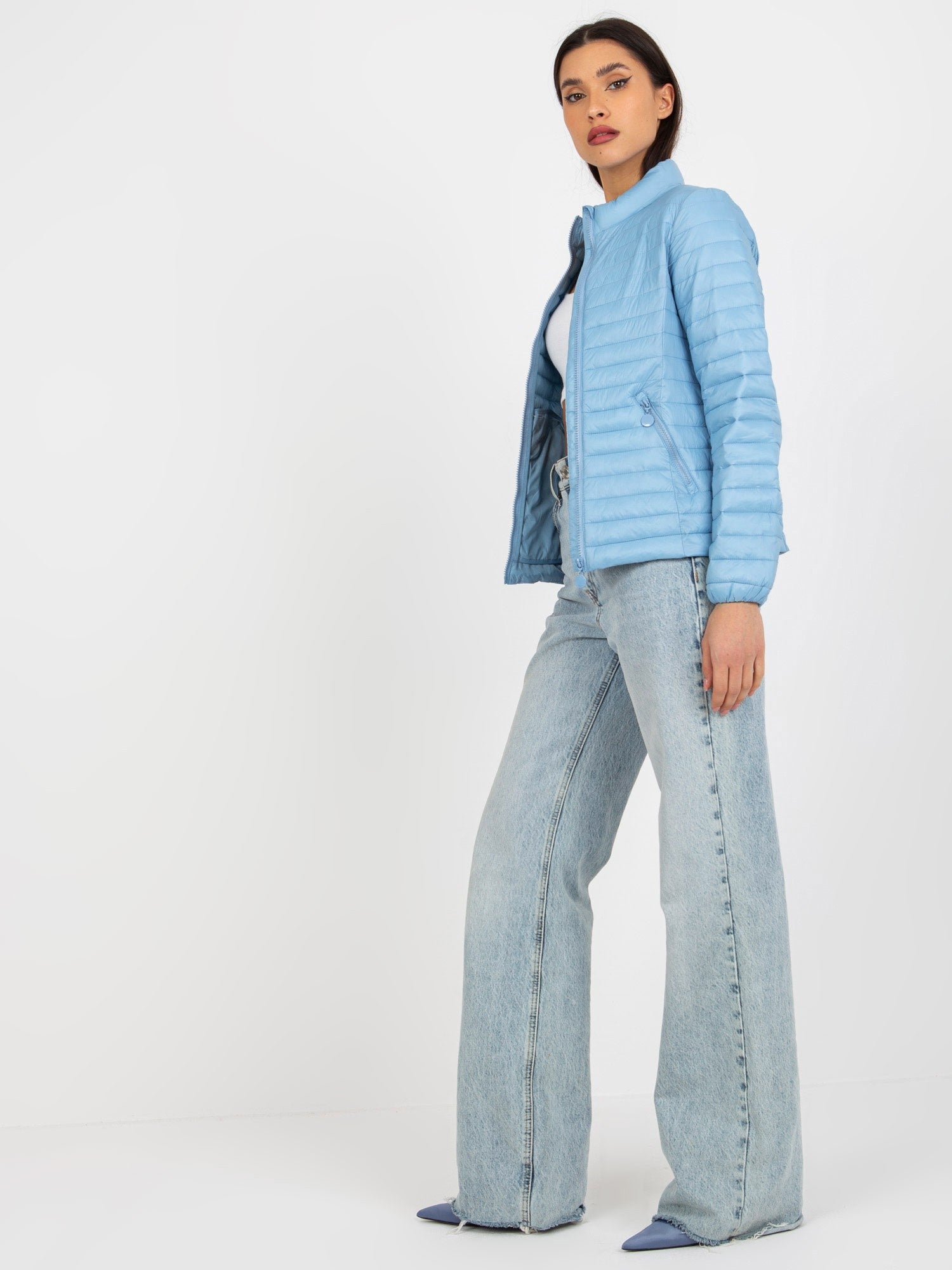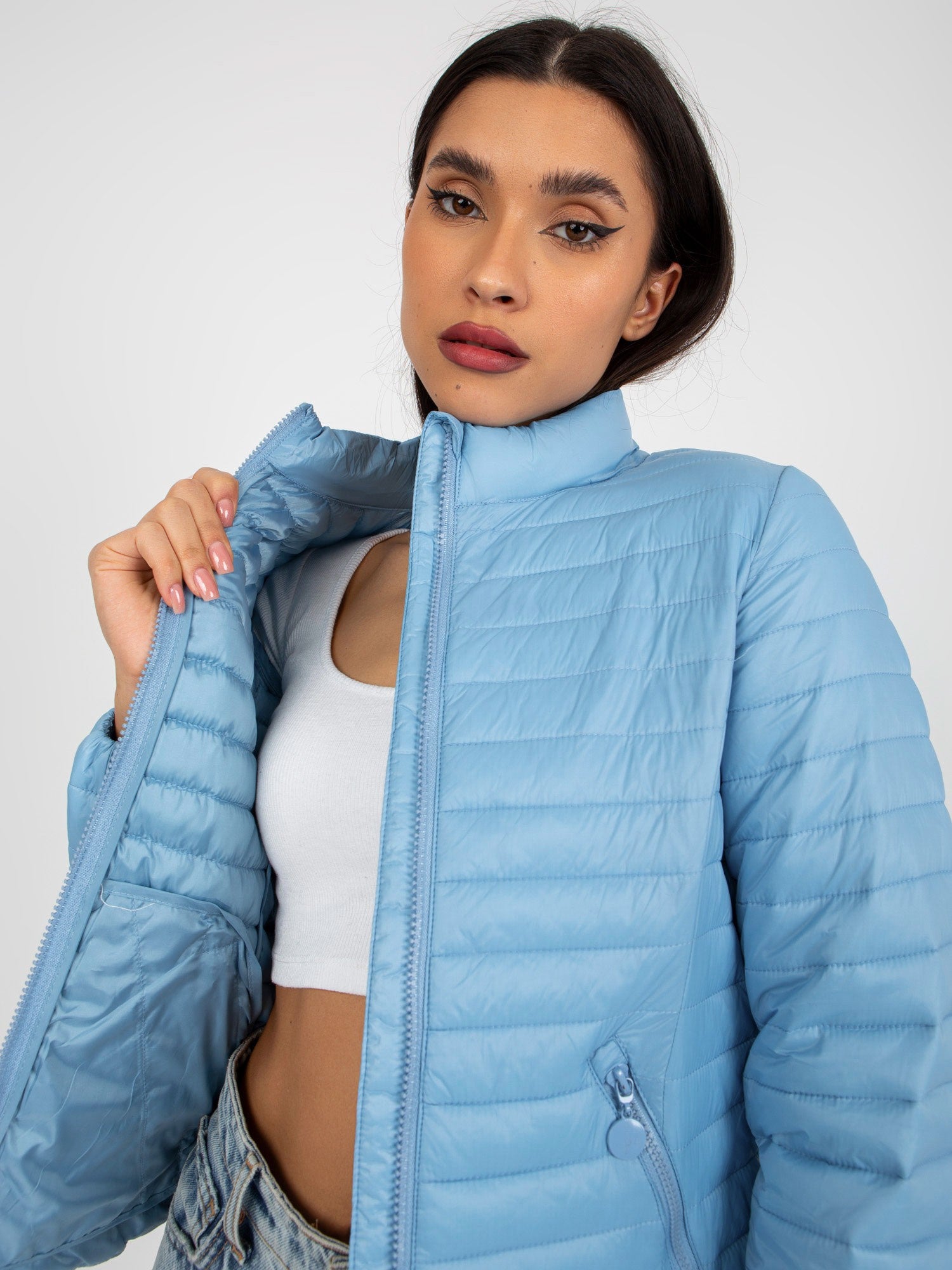 Jasnoniebieska przejściowa kurtka pikowana z kieszeniami .