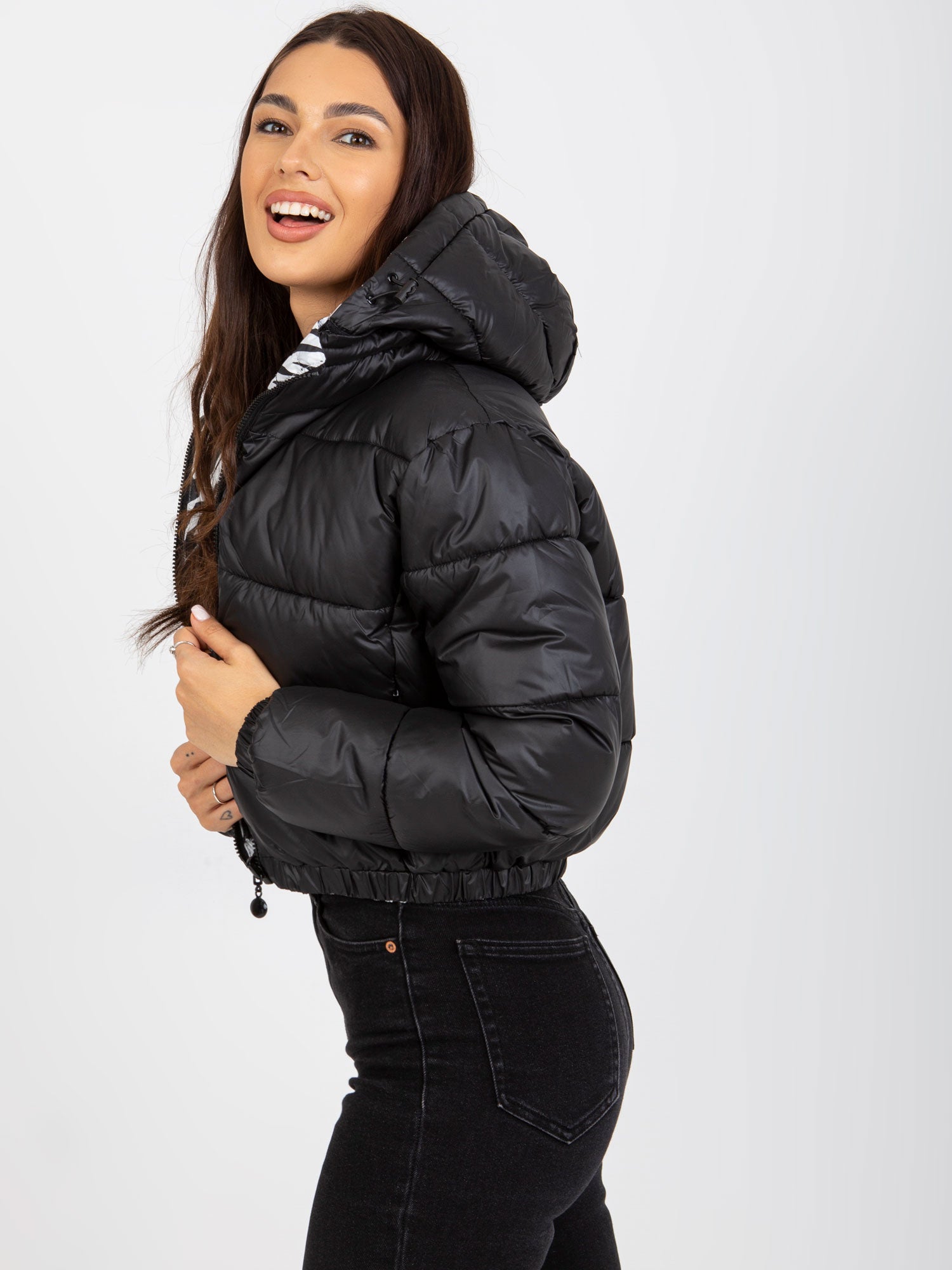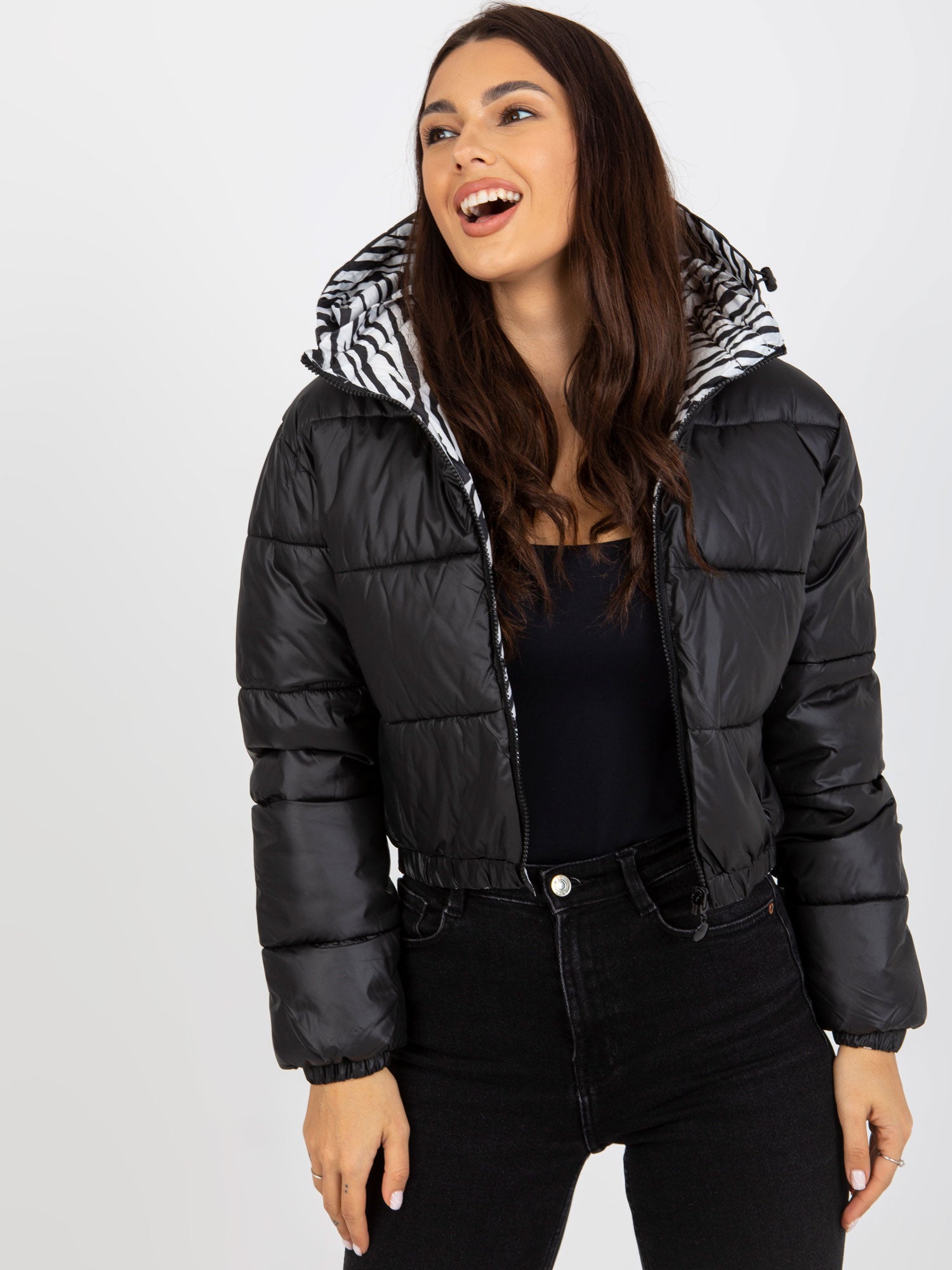 Czarna dwustronna kurtka pikowana w zwierzęcy wzór .