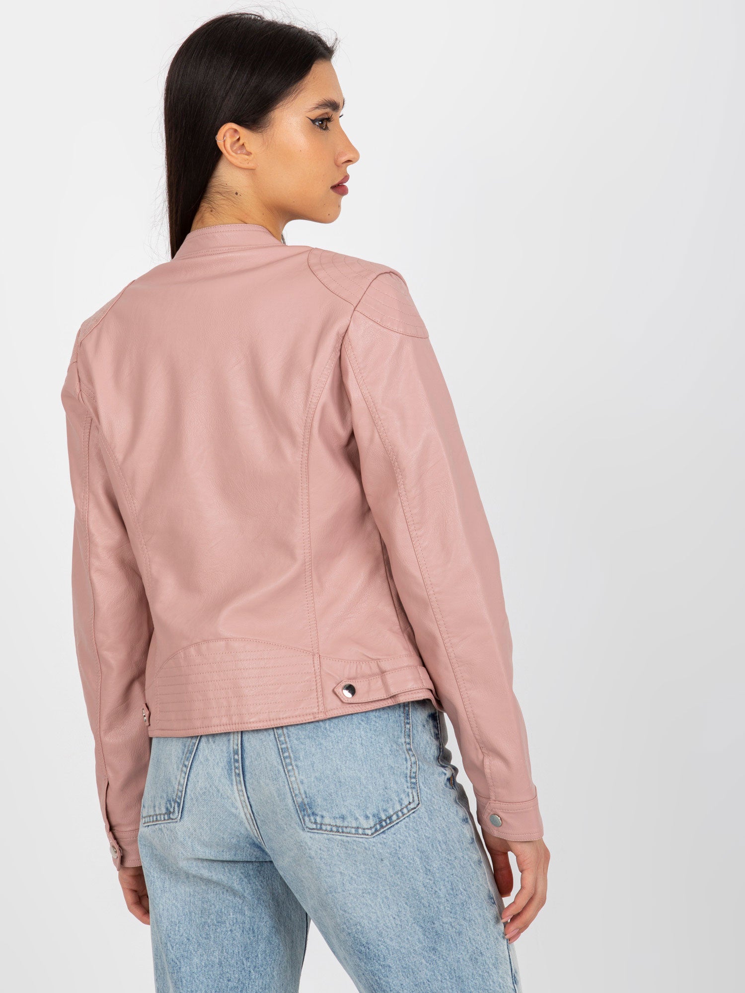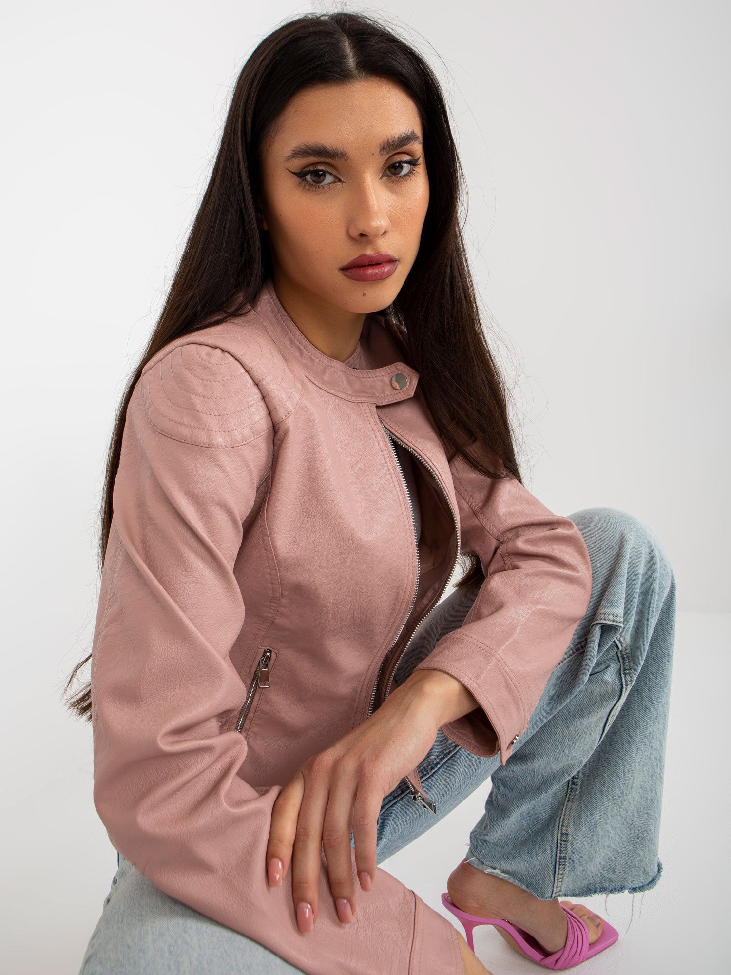 Jasnoróżowa kurtka z ekoskóry biker z podszewką .