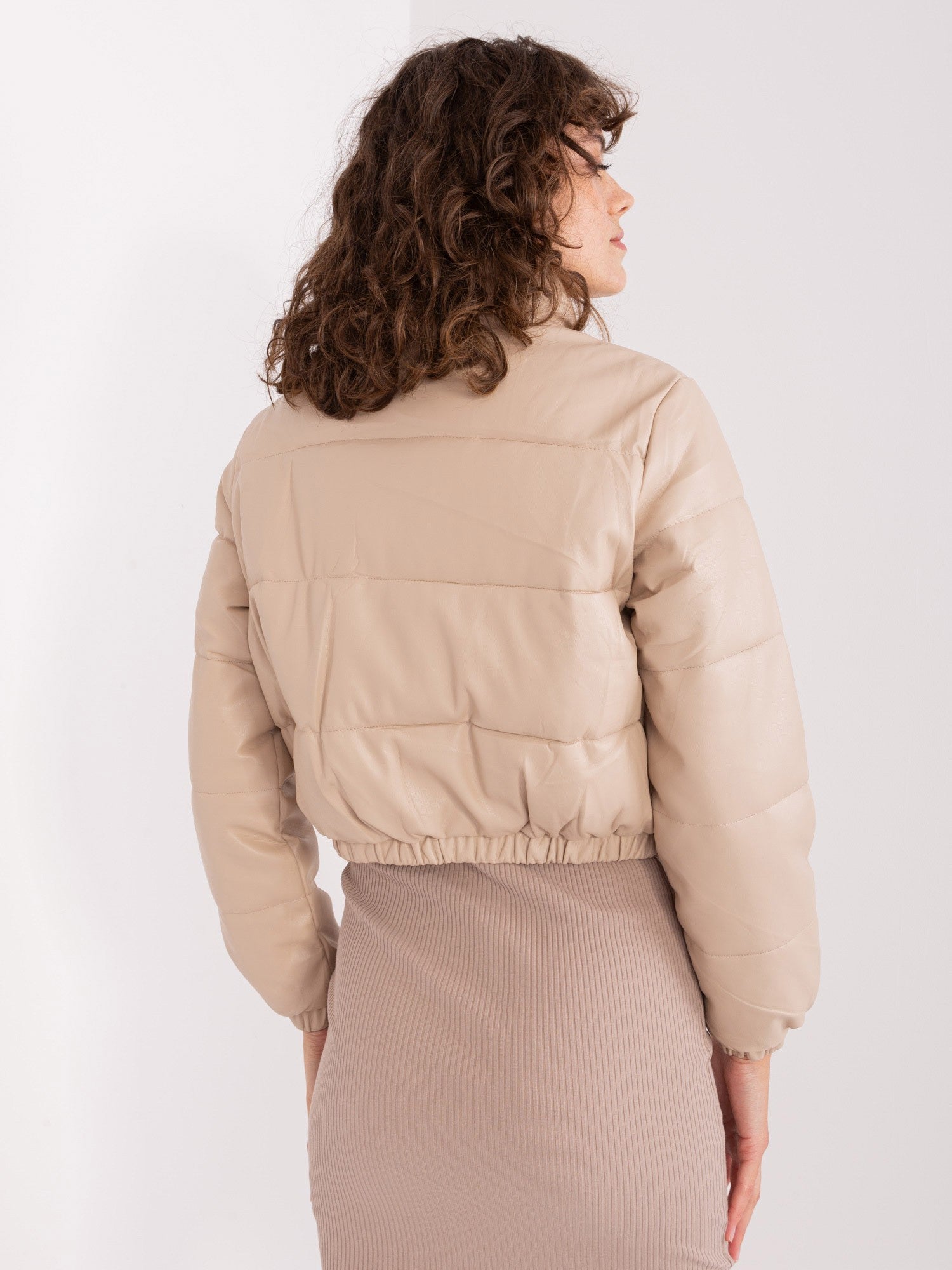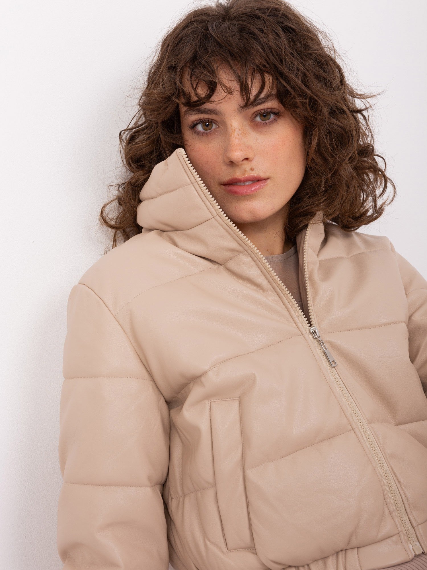 Beżowa krótka kurtka zimowa z pikowaniem .