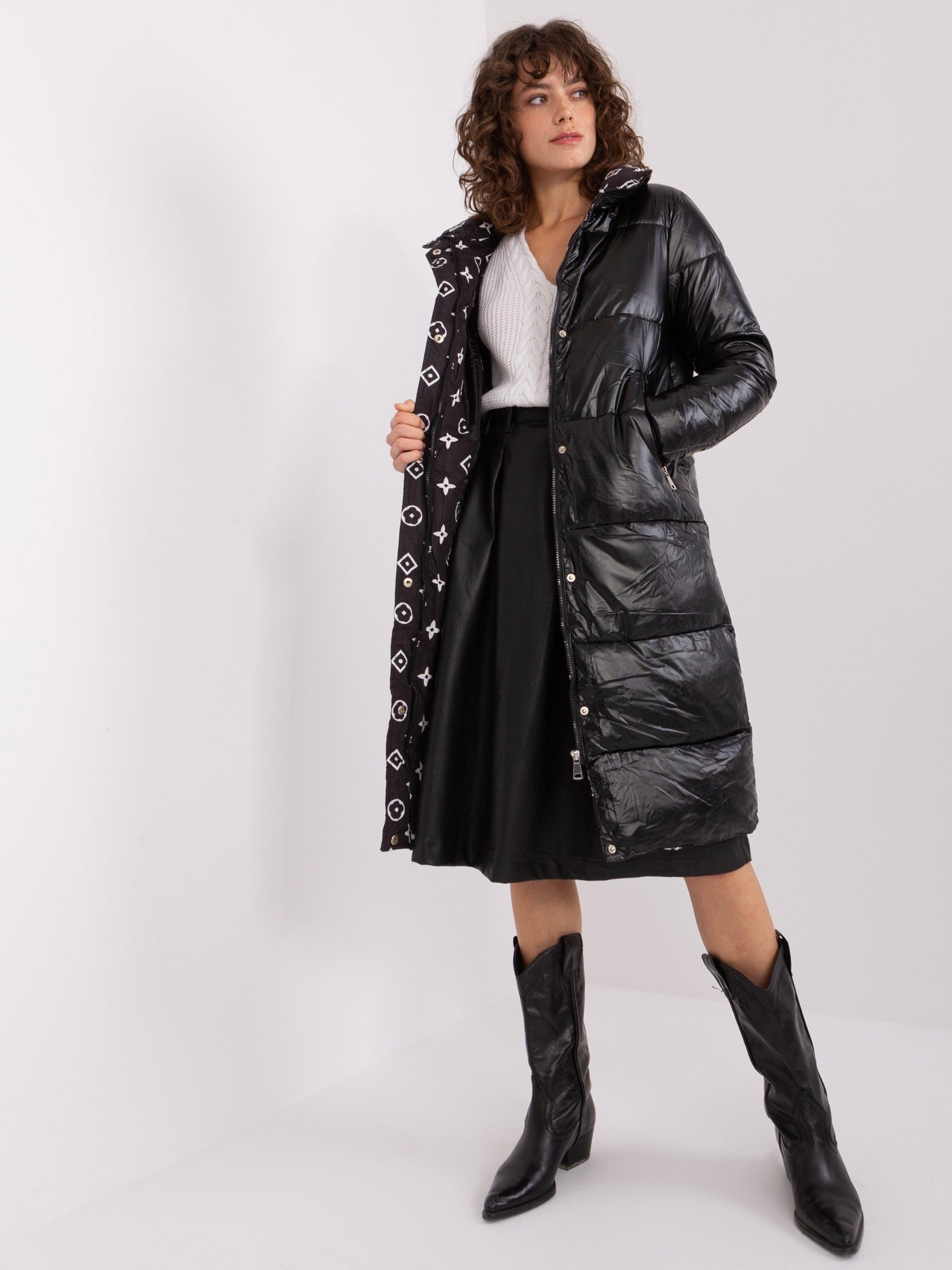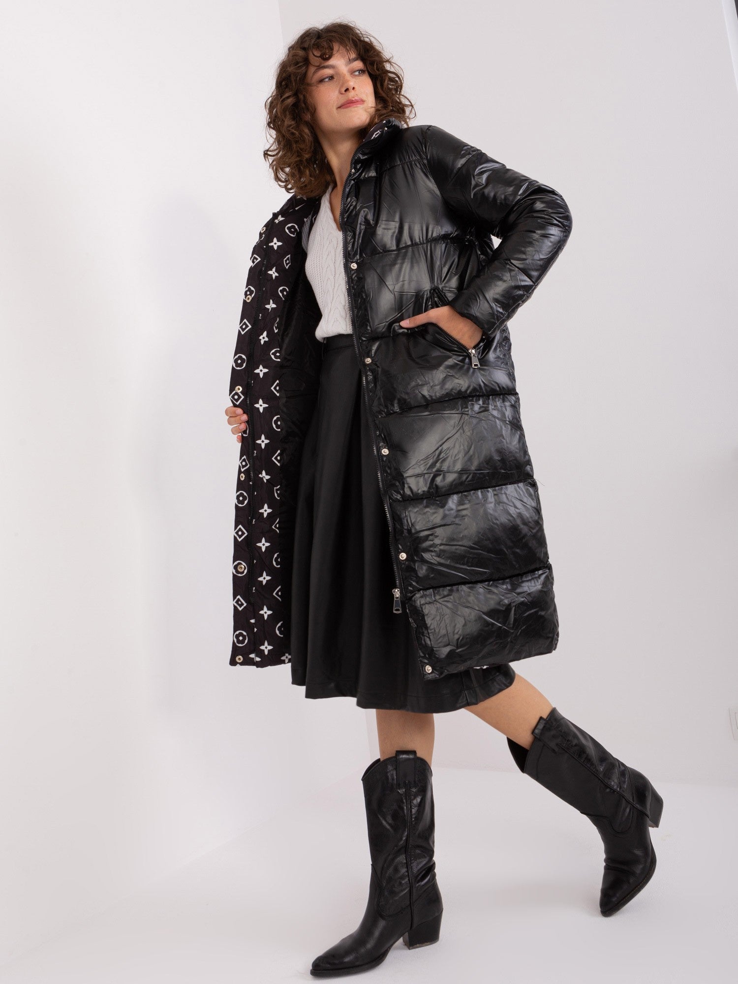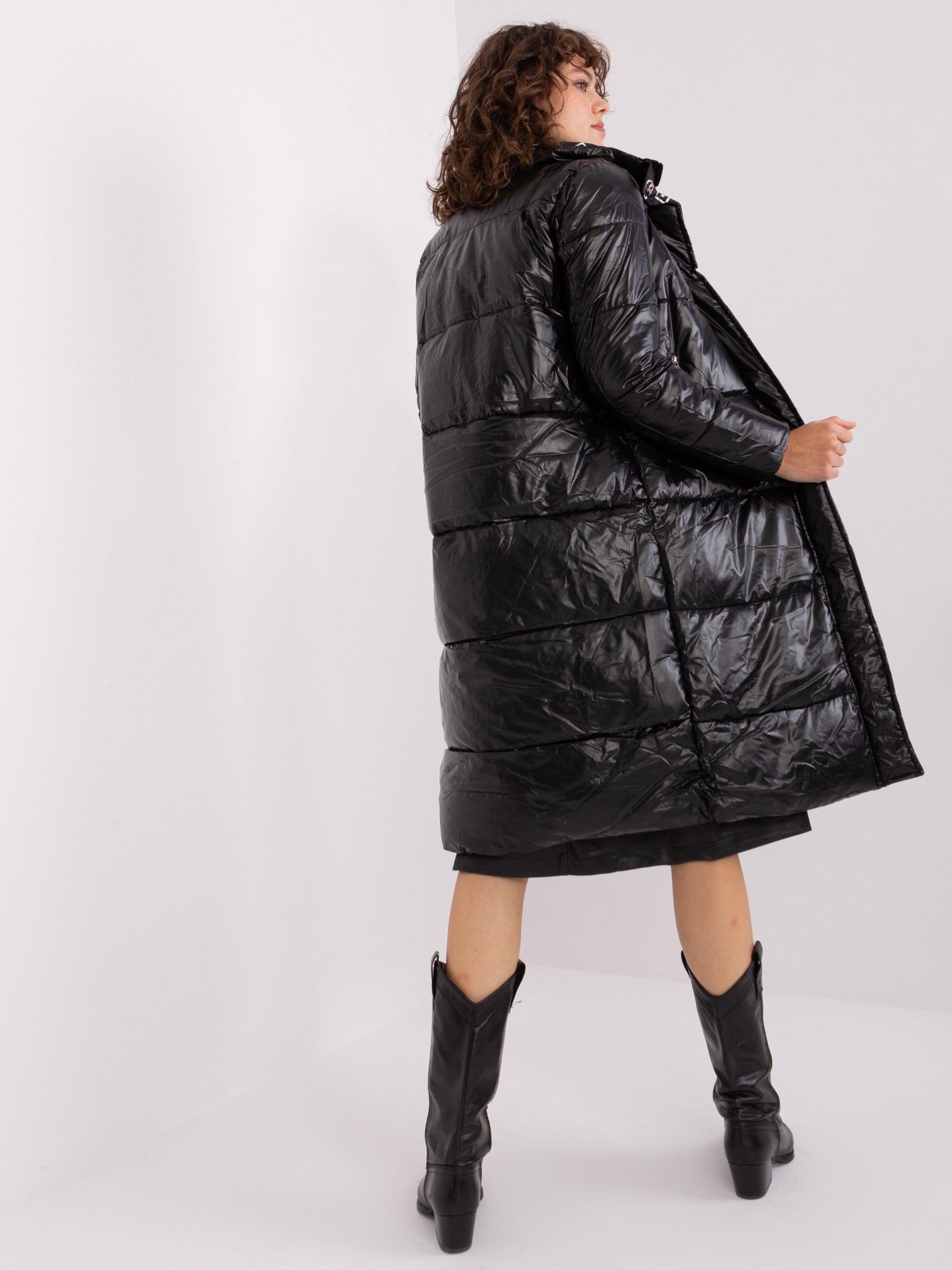 Czarna puchowa kurtka zimowa z pikowaniem .