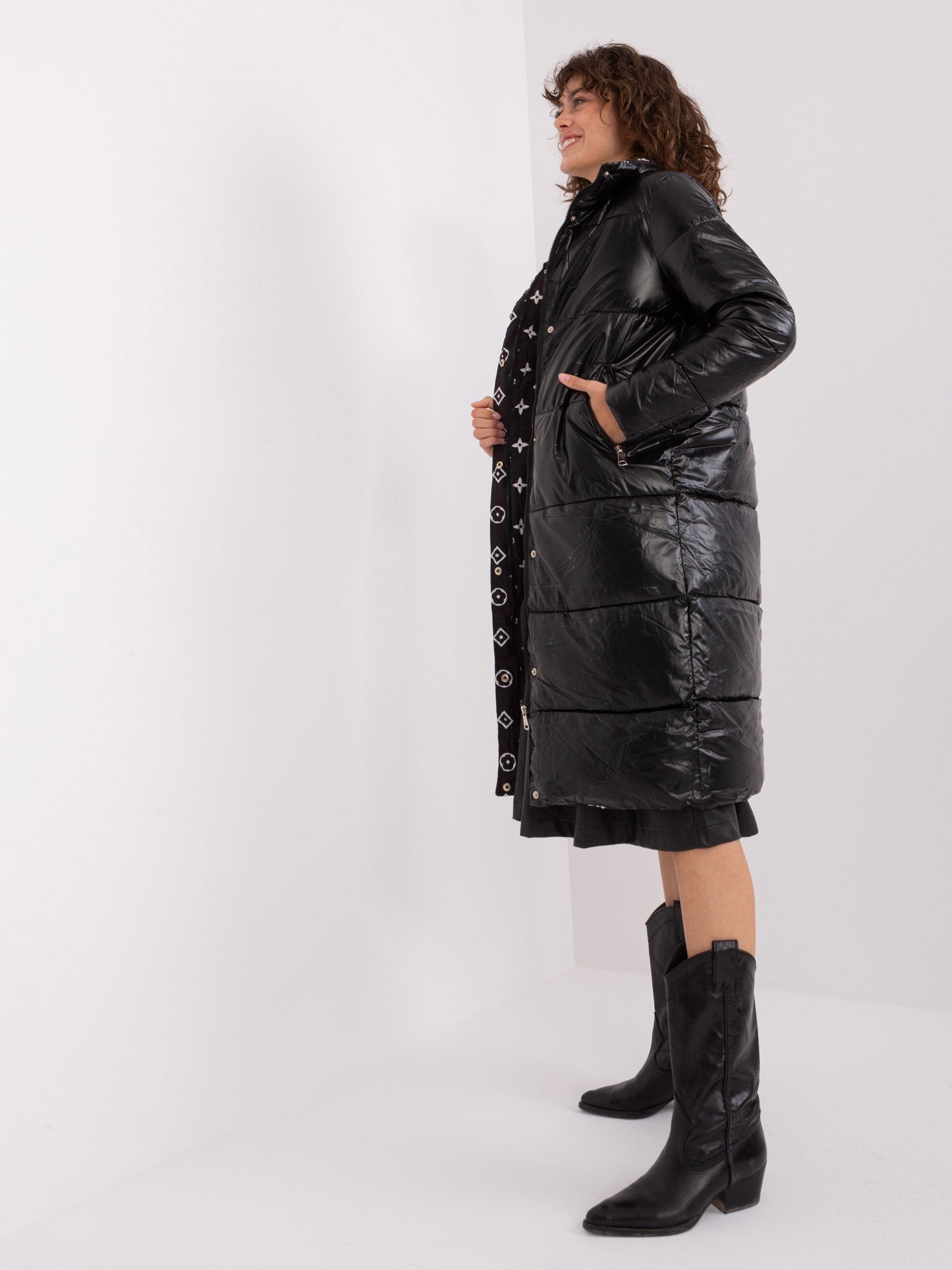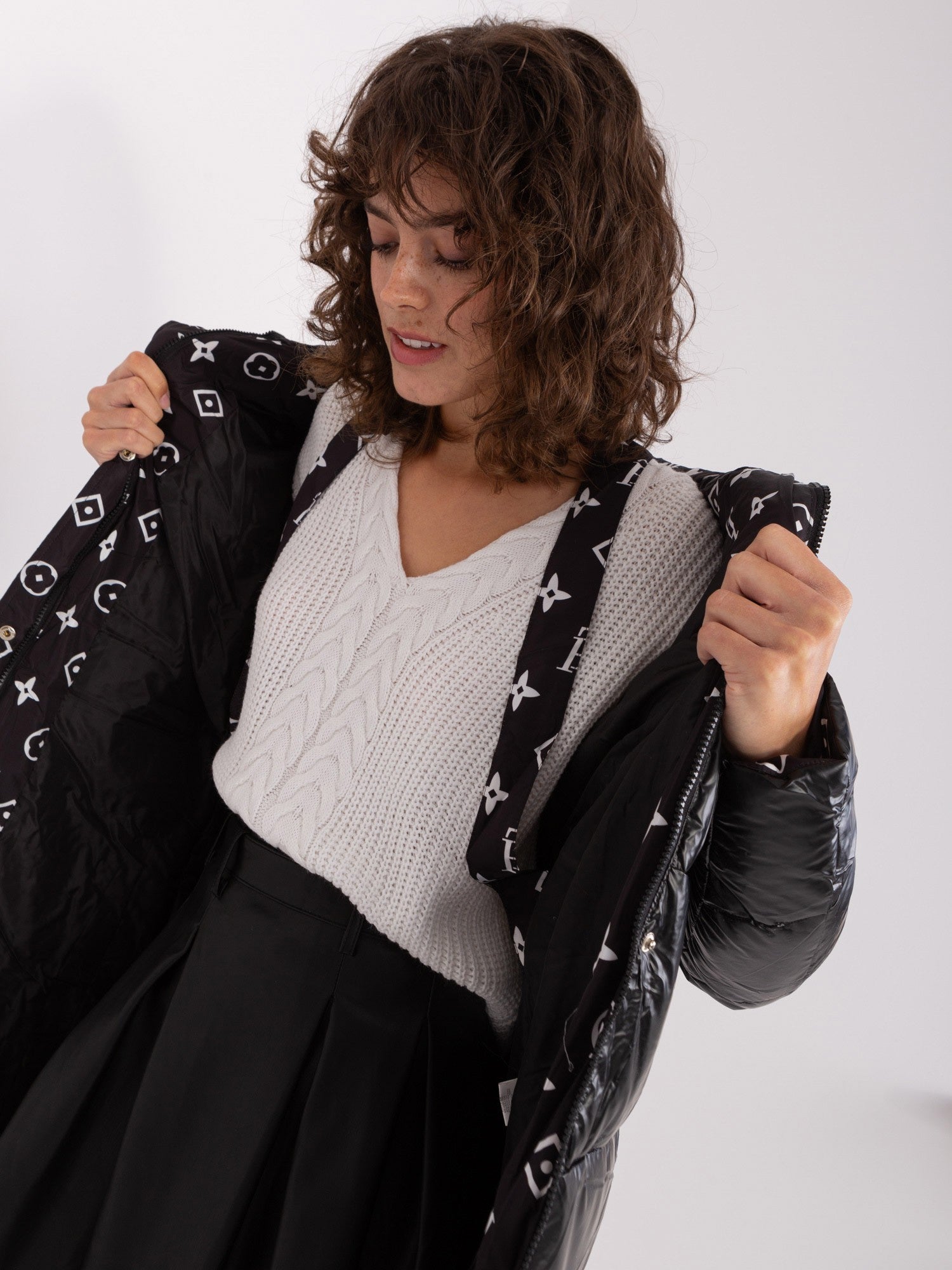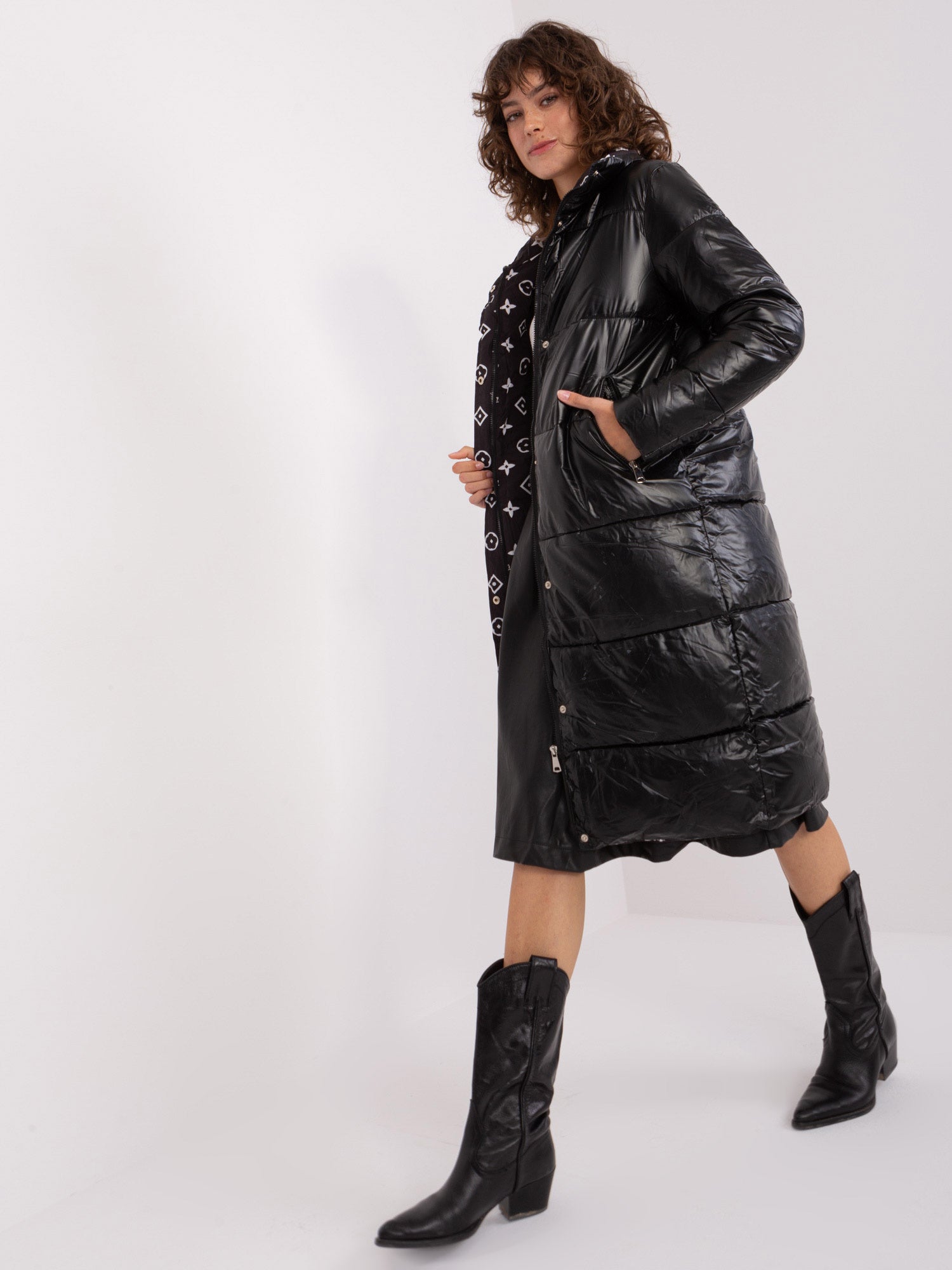 Czarna puchowa kurtka zimowa z pikowaniem .