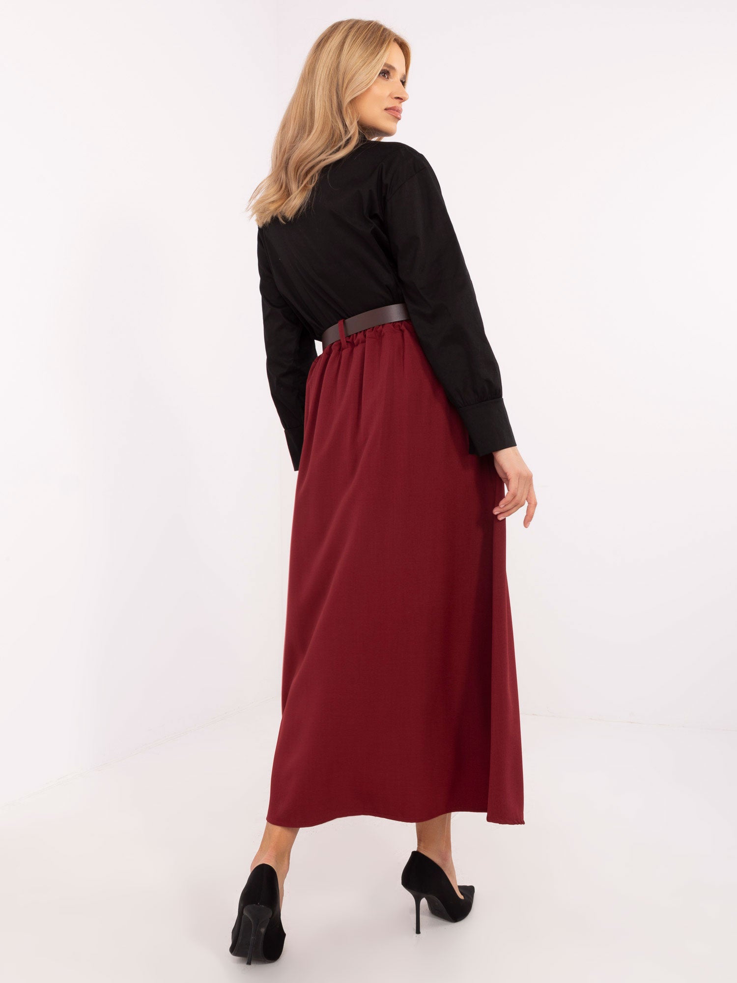 Wymiary spódnicy w rozmiarze one size mierzone na płasko: szerokość w pasie- 35 cm, szerokość w pasie- 55 cm (po rozciągnięciu), długość całkowita - 98 cm.