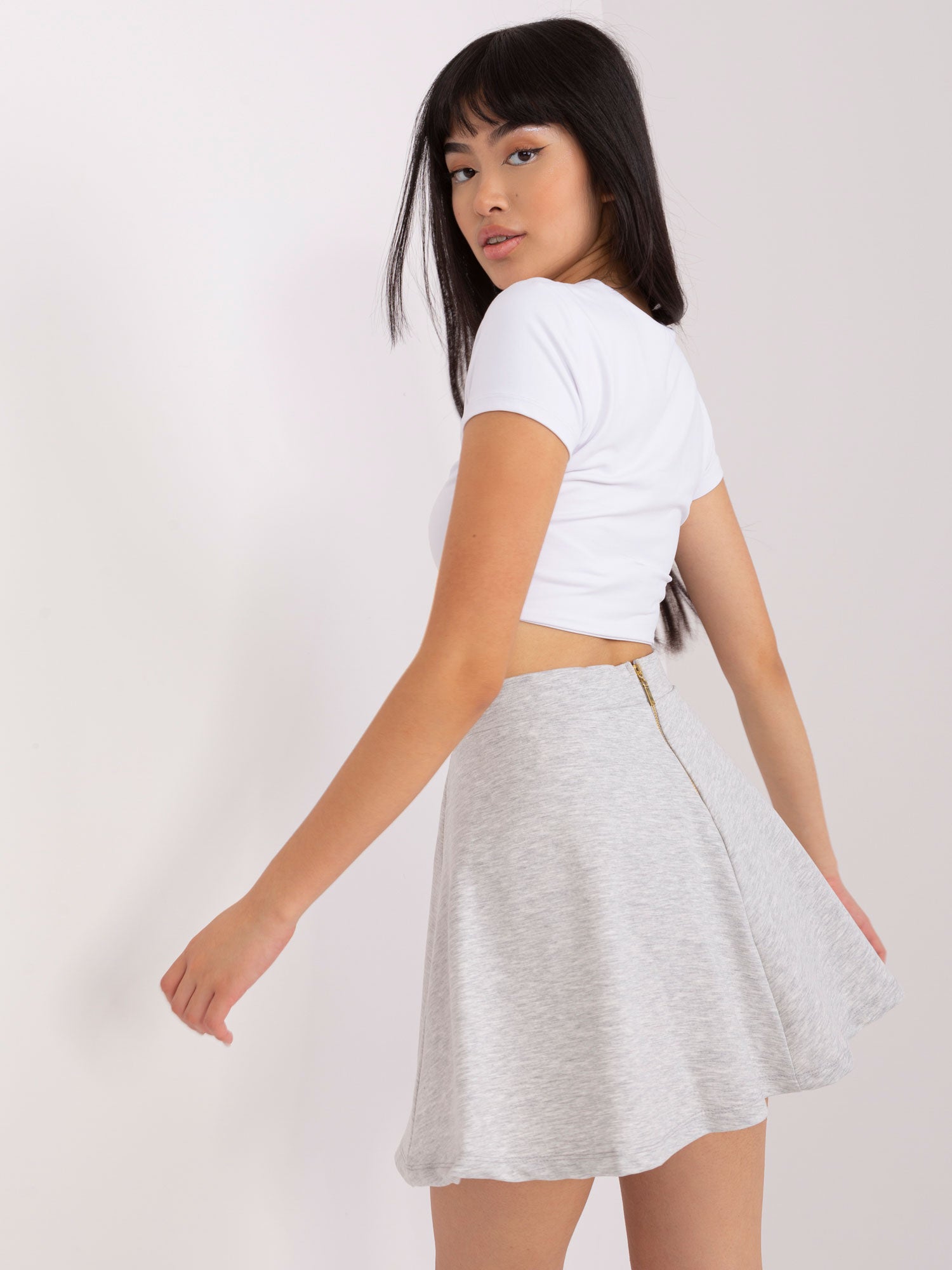 Jasnoszara mini spódnica dresowa z zamkiem .