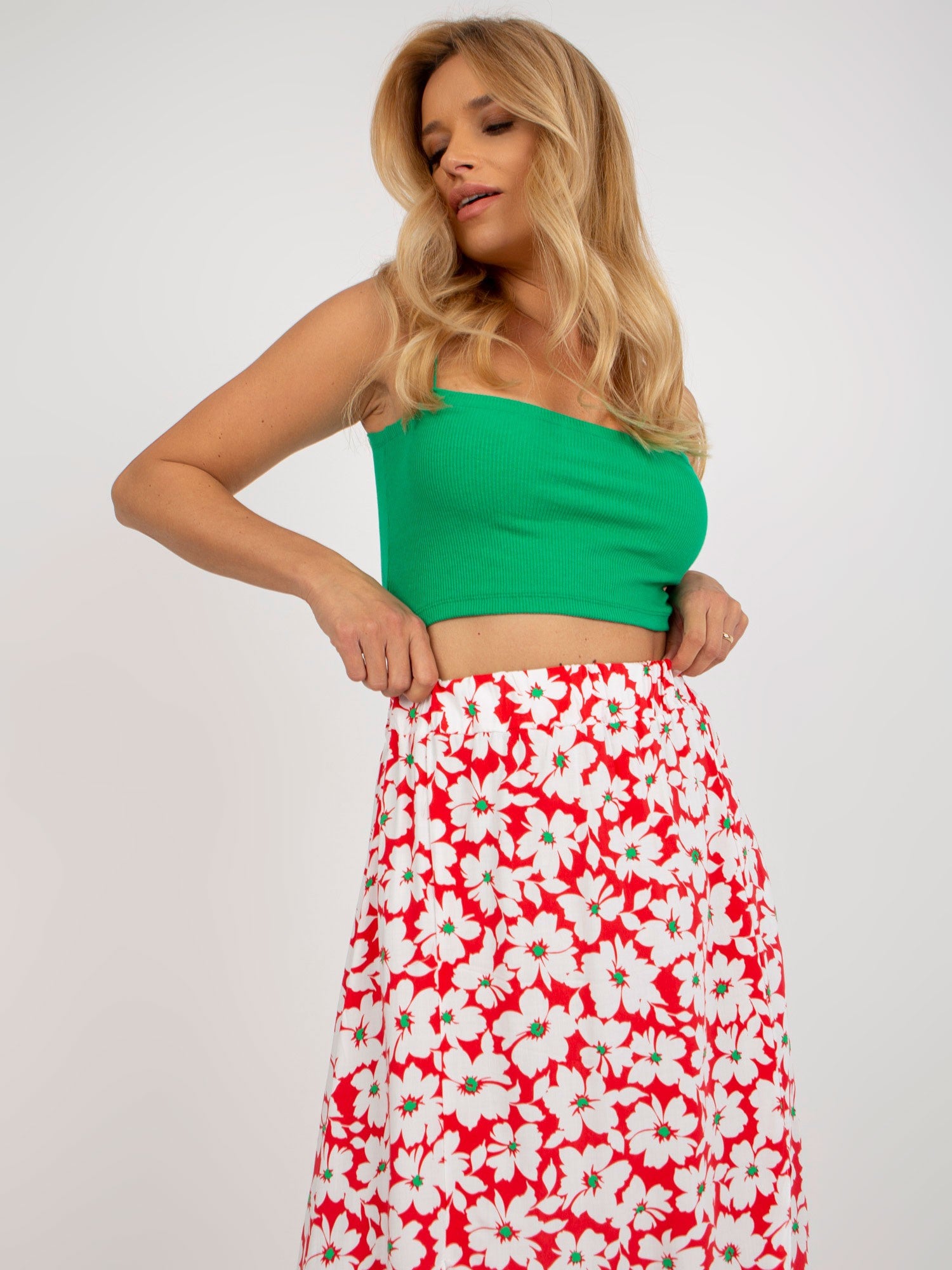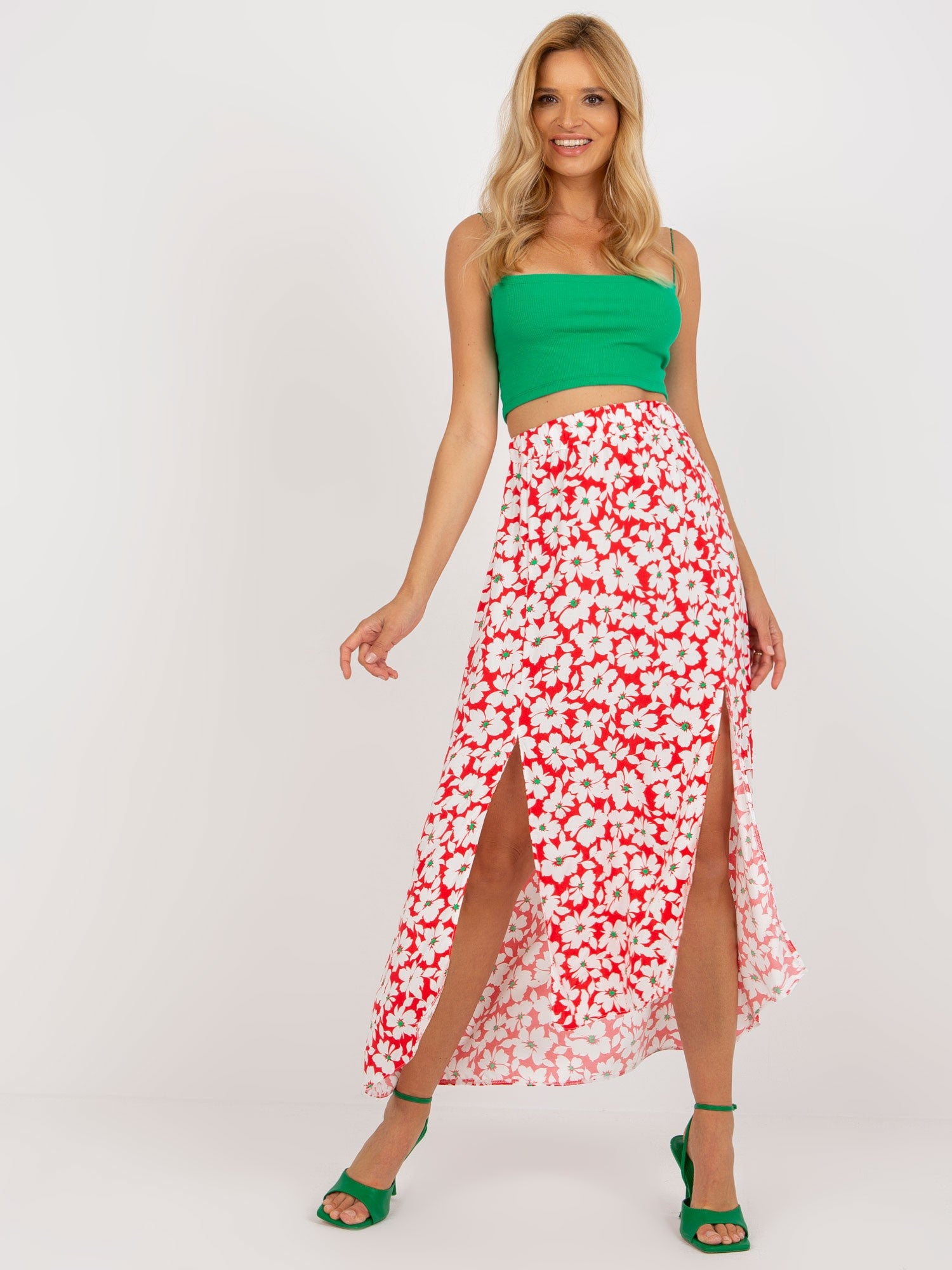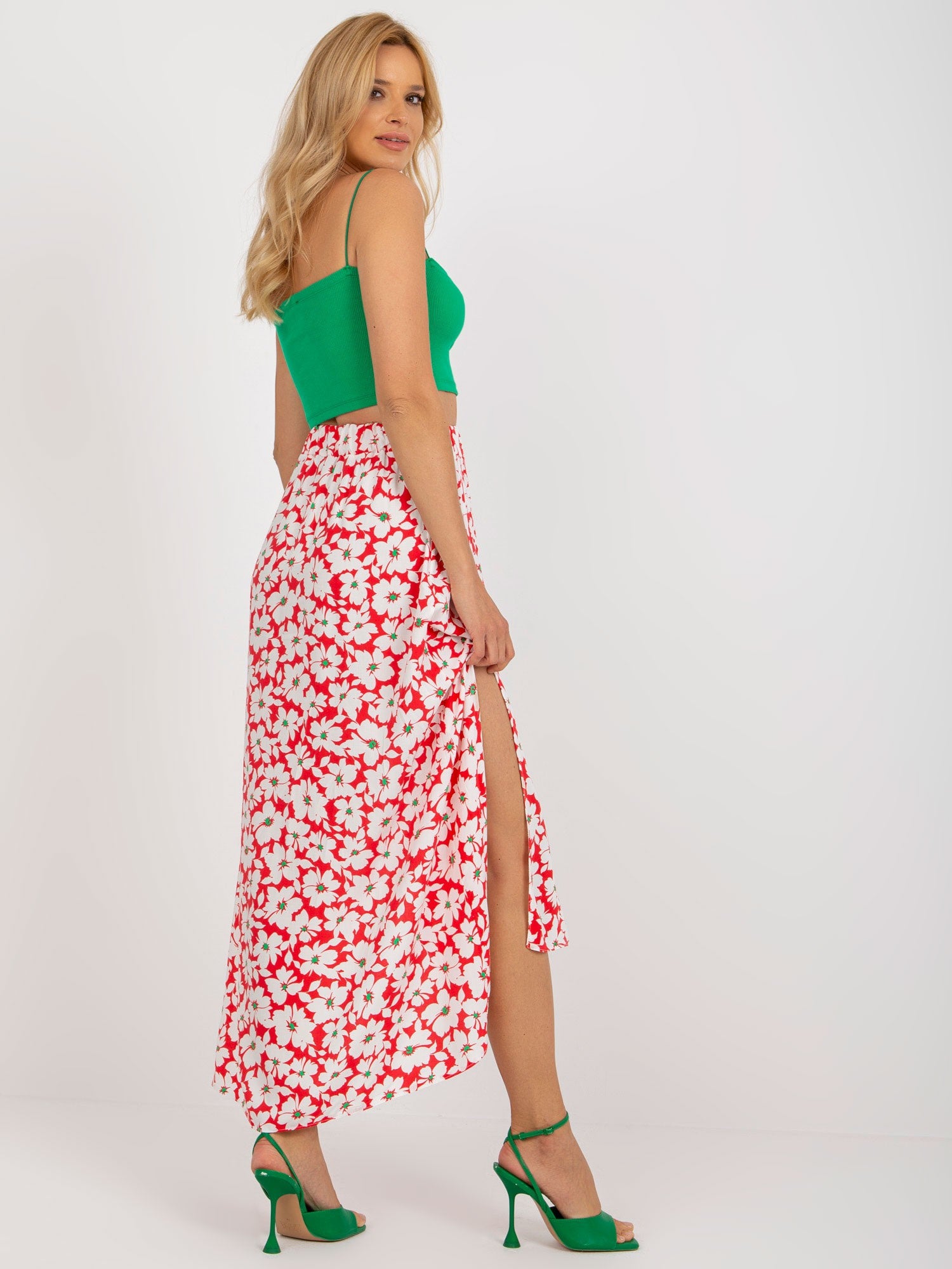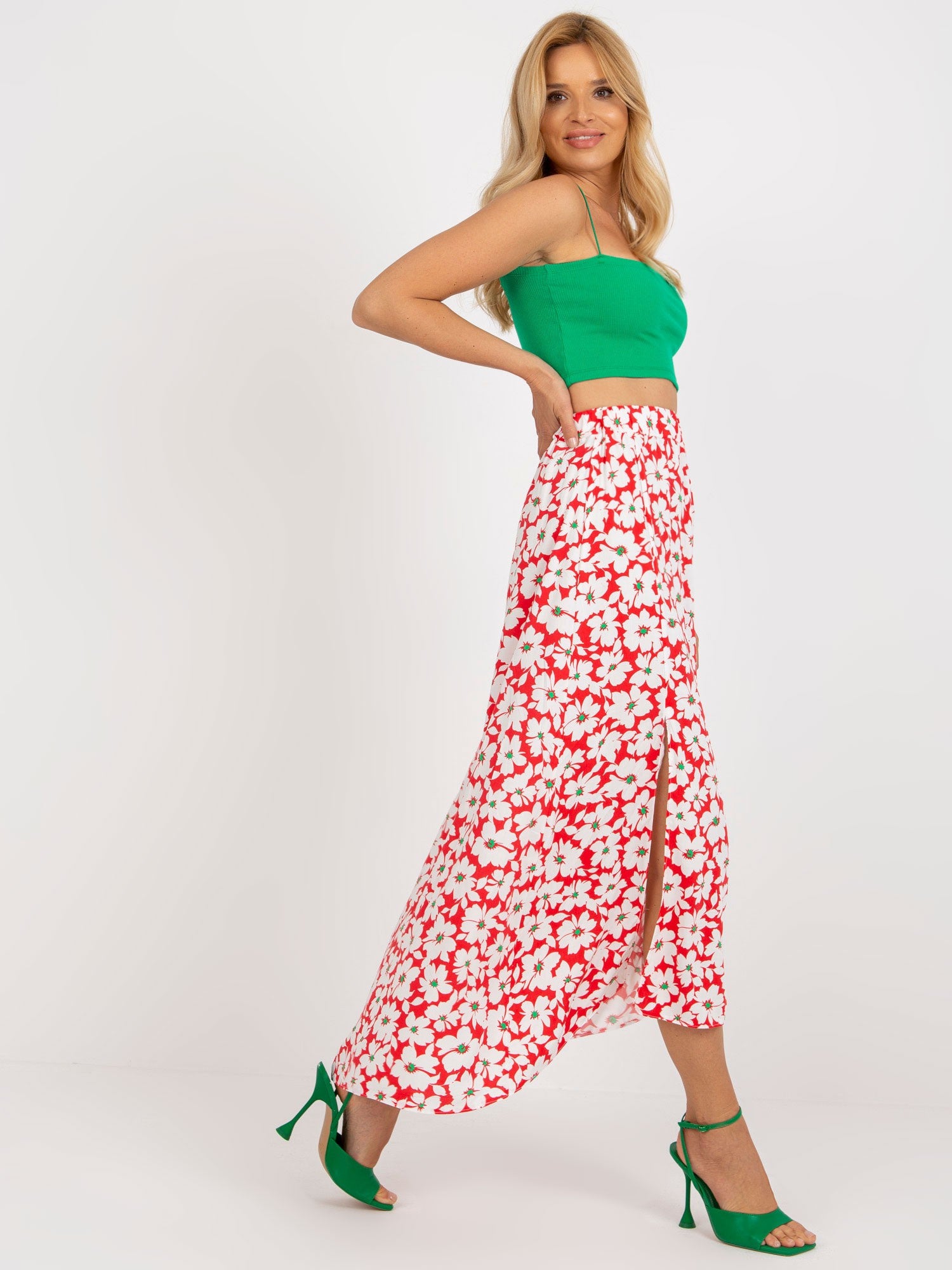 Czerwona spódnica asymetryczna z nadrukiem RUE PARIS .