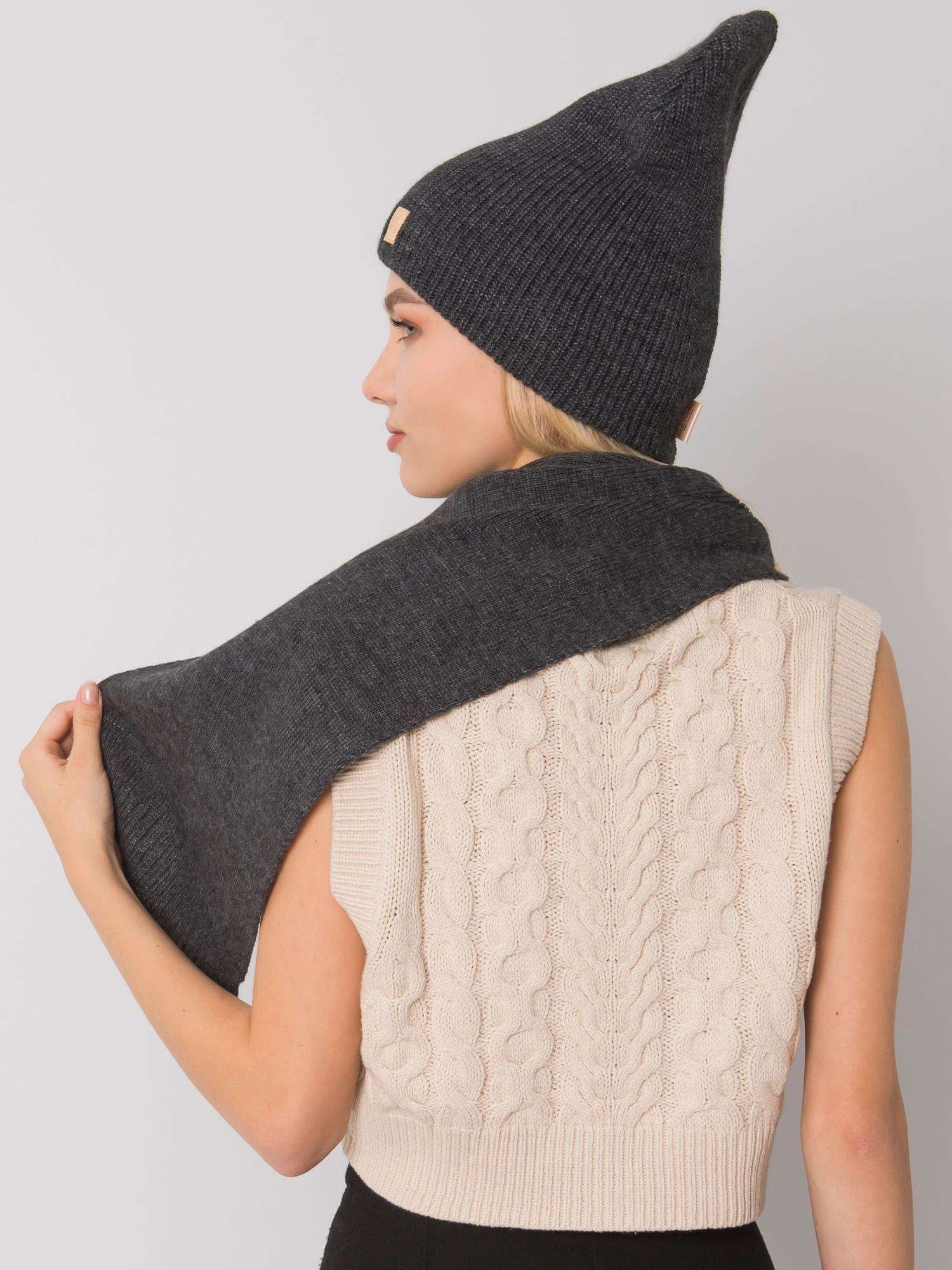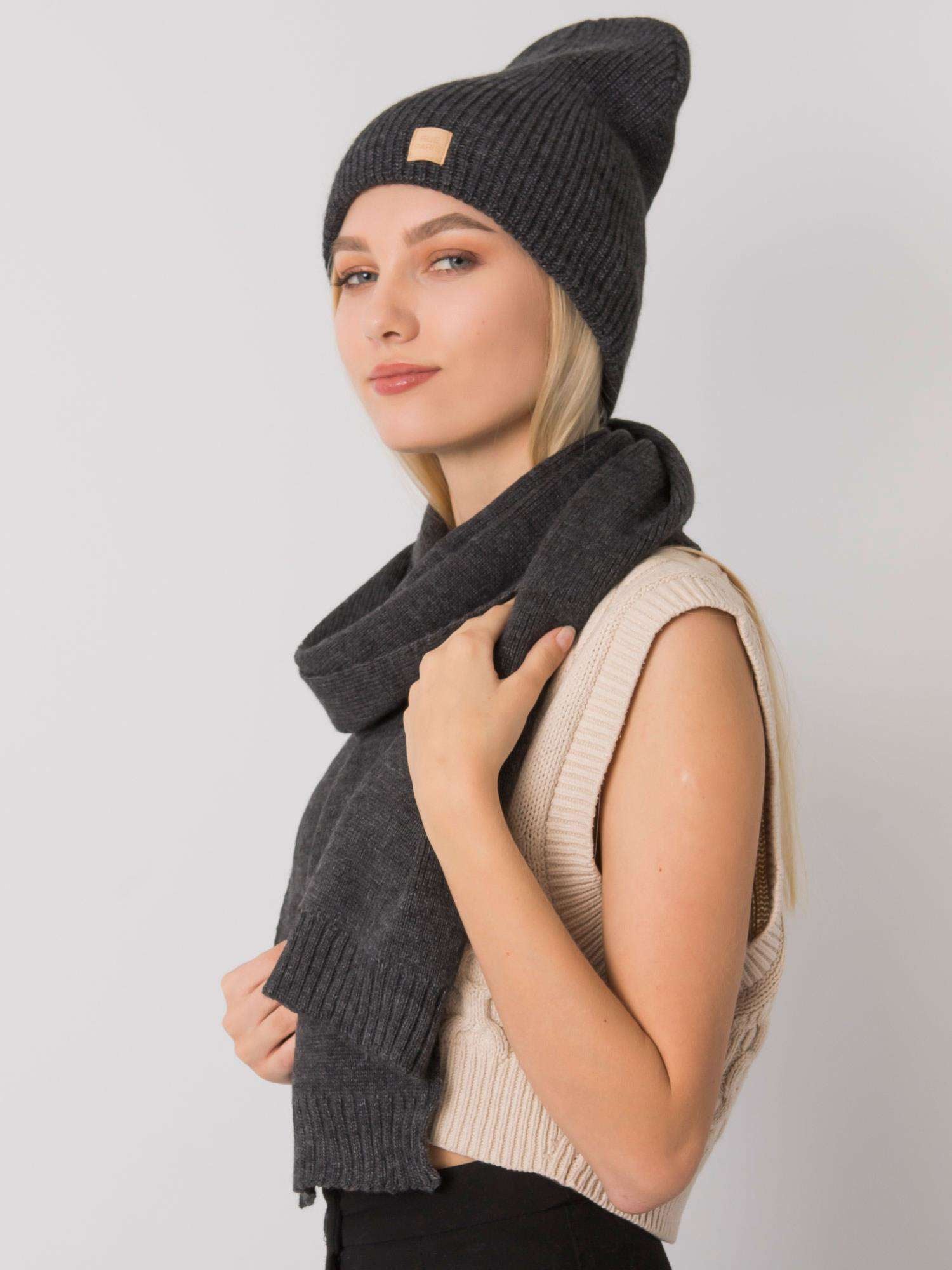 RUE PARIS Ciemnoszary komplet zimowy z czapką i szalikiem Czapka wyprodukowana w Polsce
