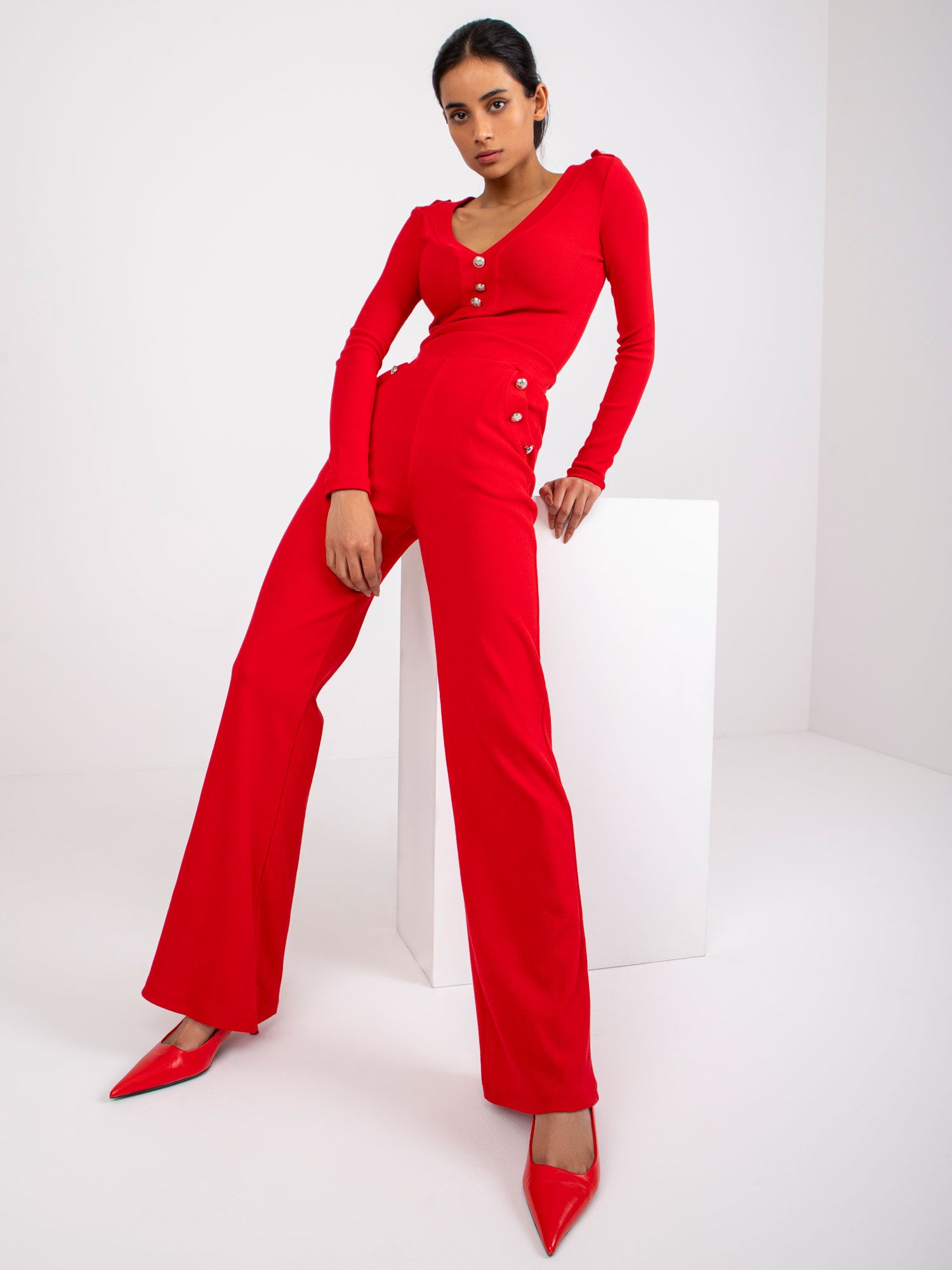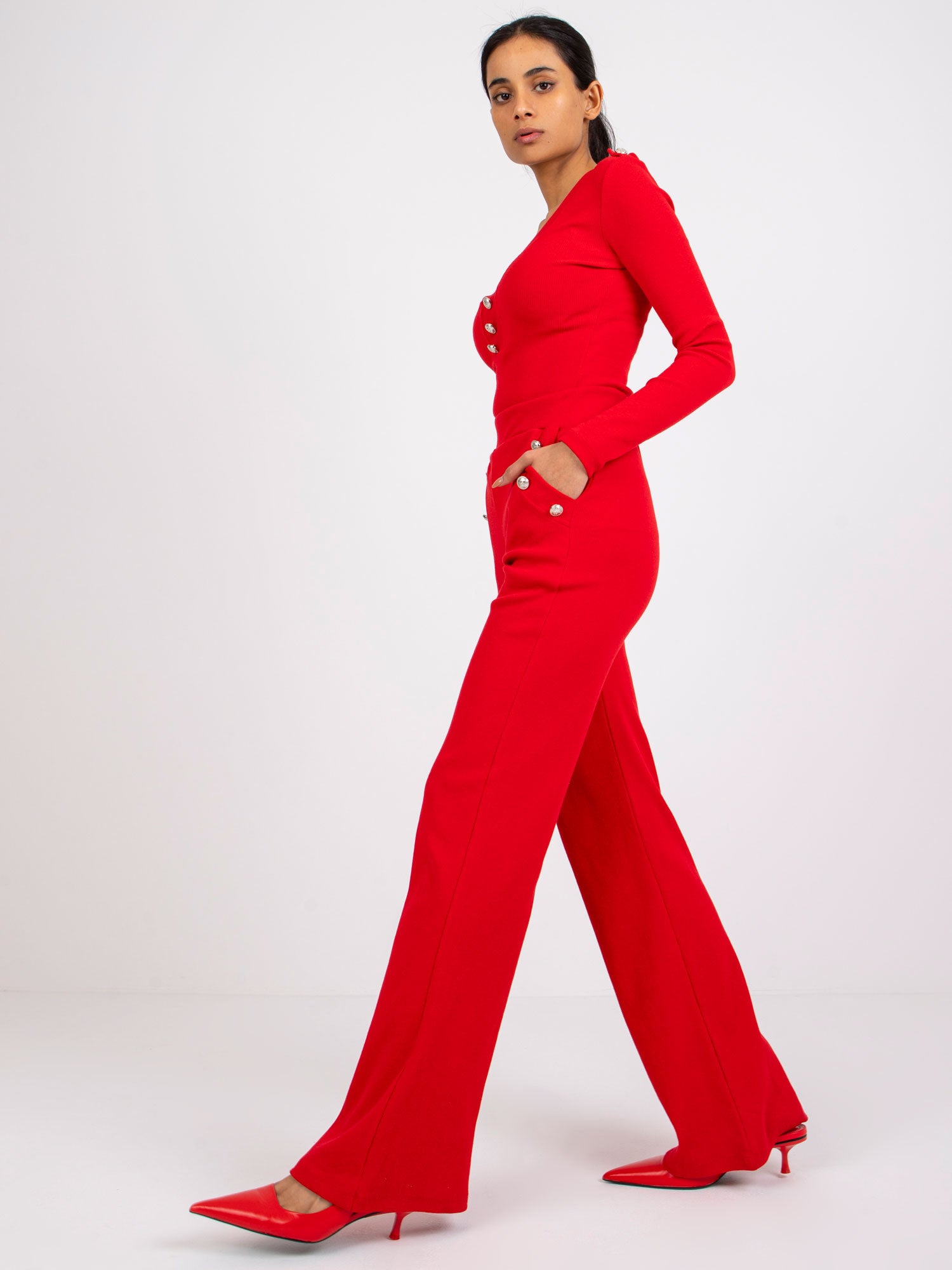 Wymiary kompletu w rozmiarze S mierzone na płasko: szerokość pod pachami - 37 cm, długość bluzki - 62 cm, długość rękawa - 57 cm, szerokość w pasie - 30 cm, długość spodni - 110 cm.