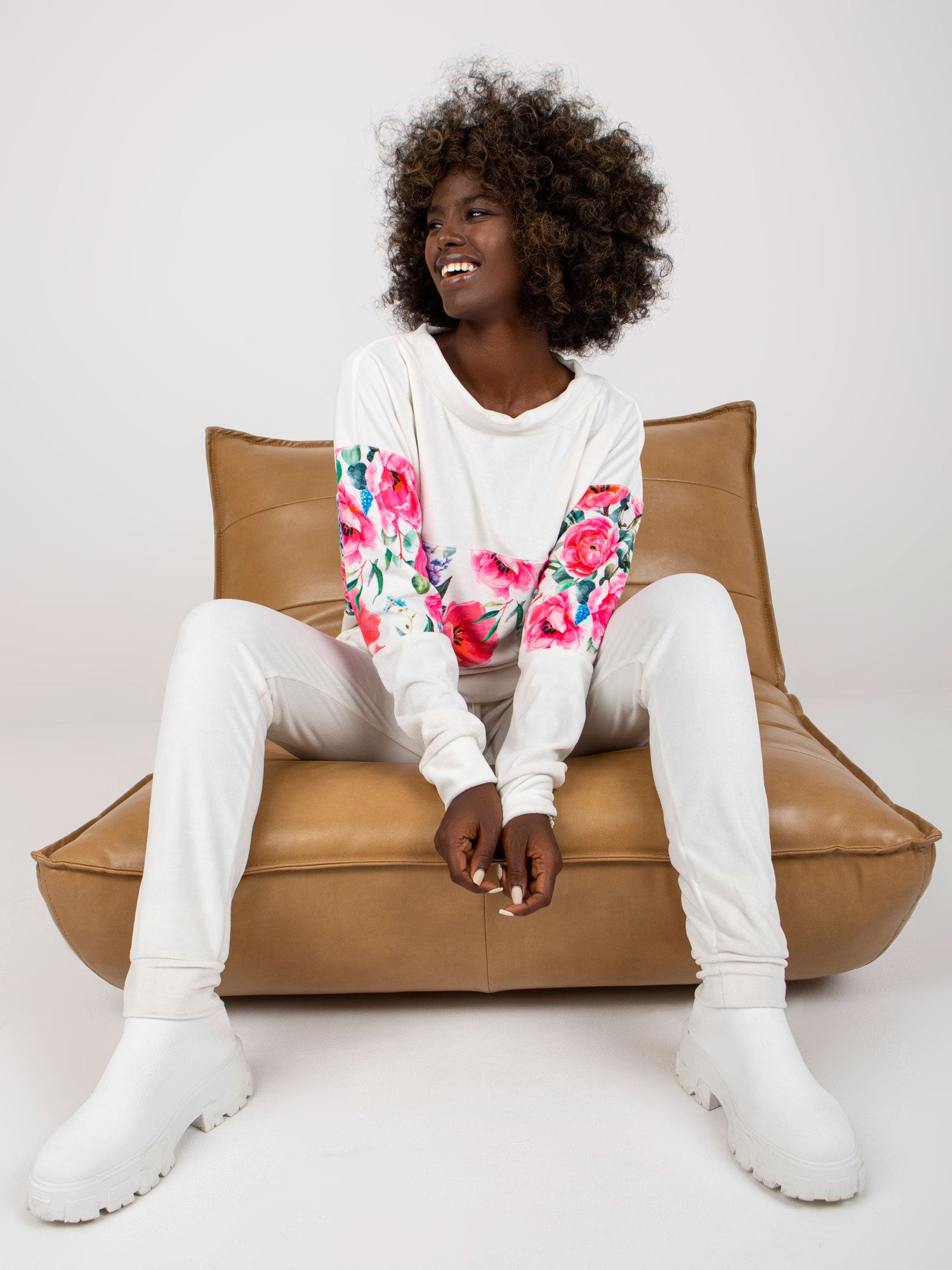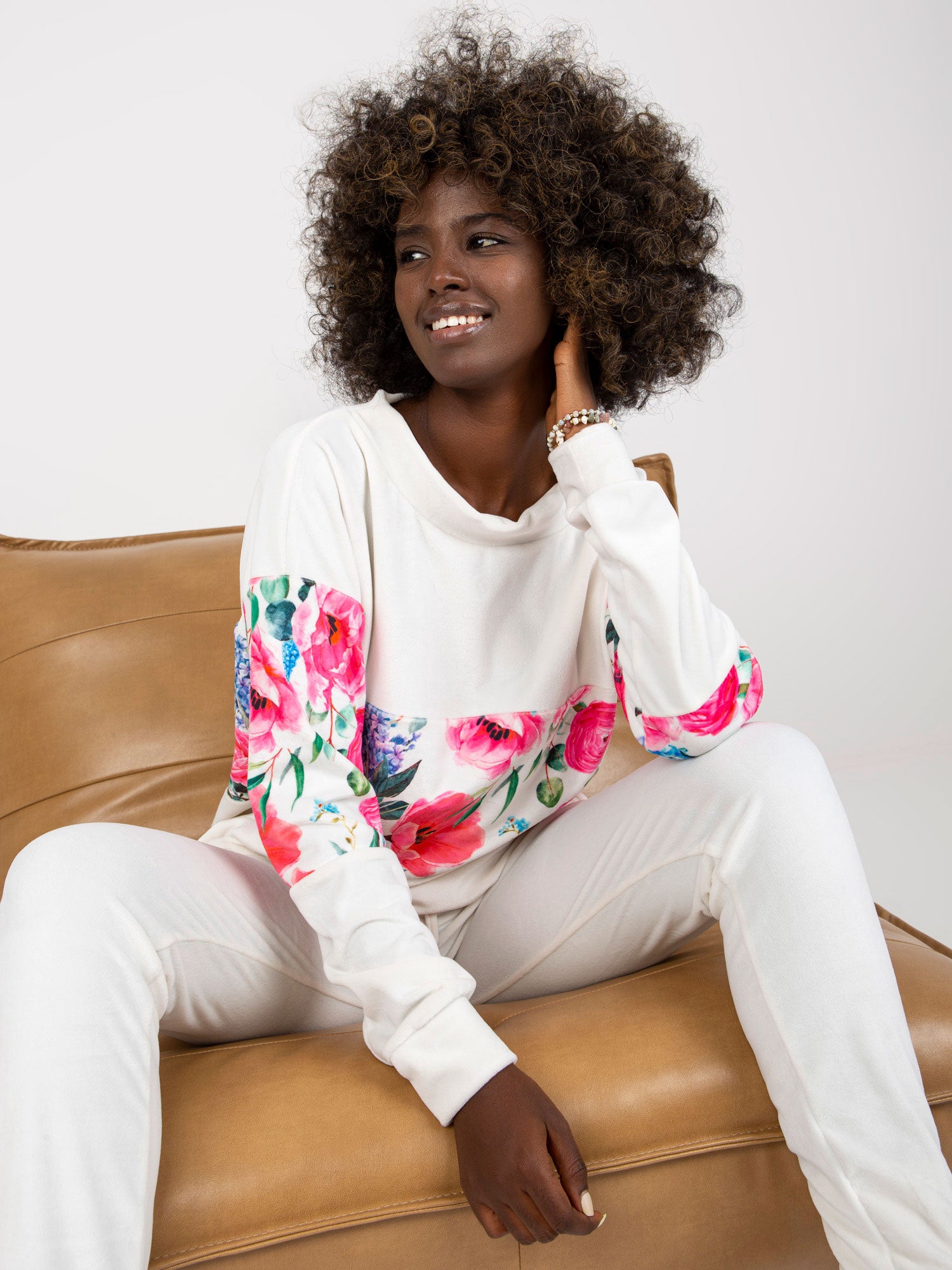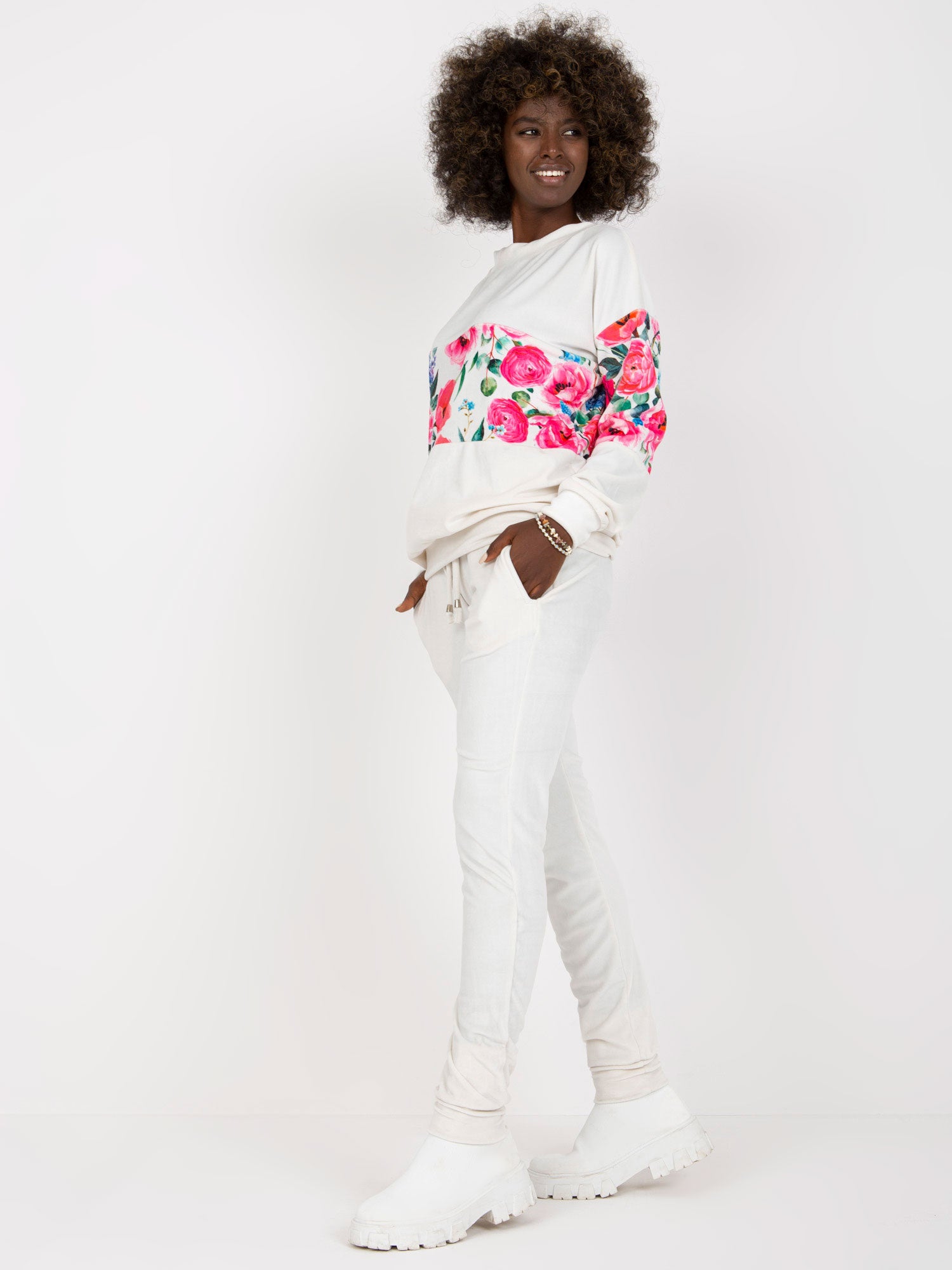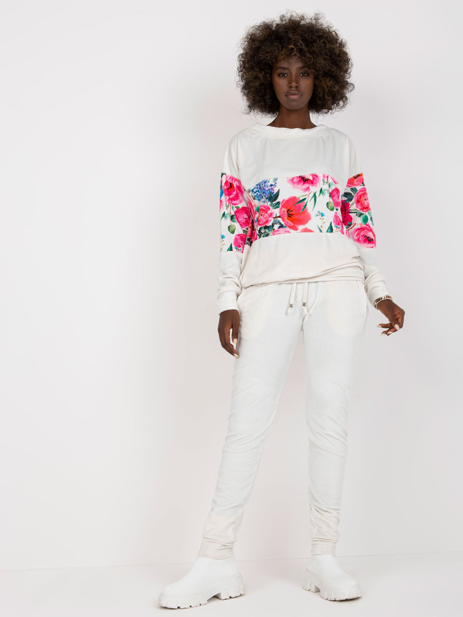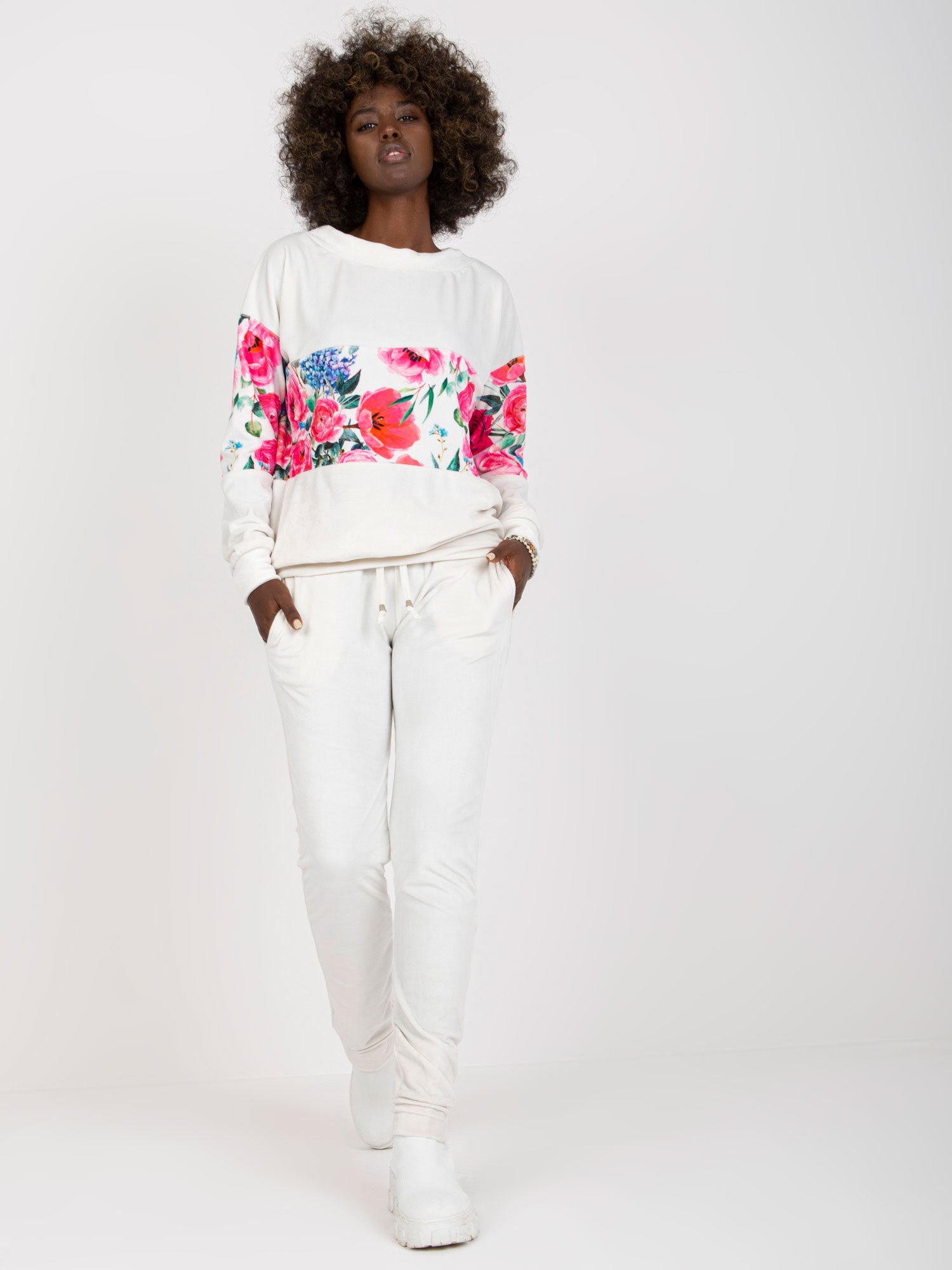 Biały dwuczęściowy komplet welurowy z nadrukiem RUE PARIS .