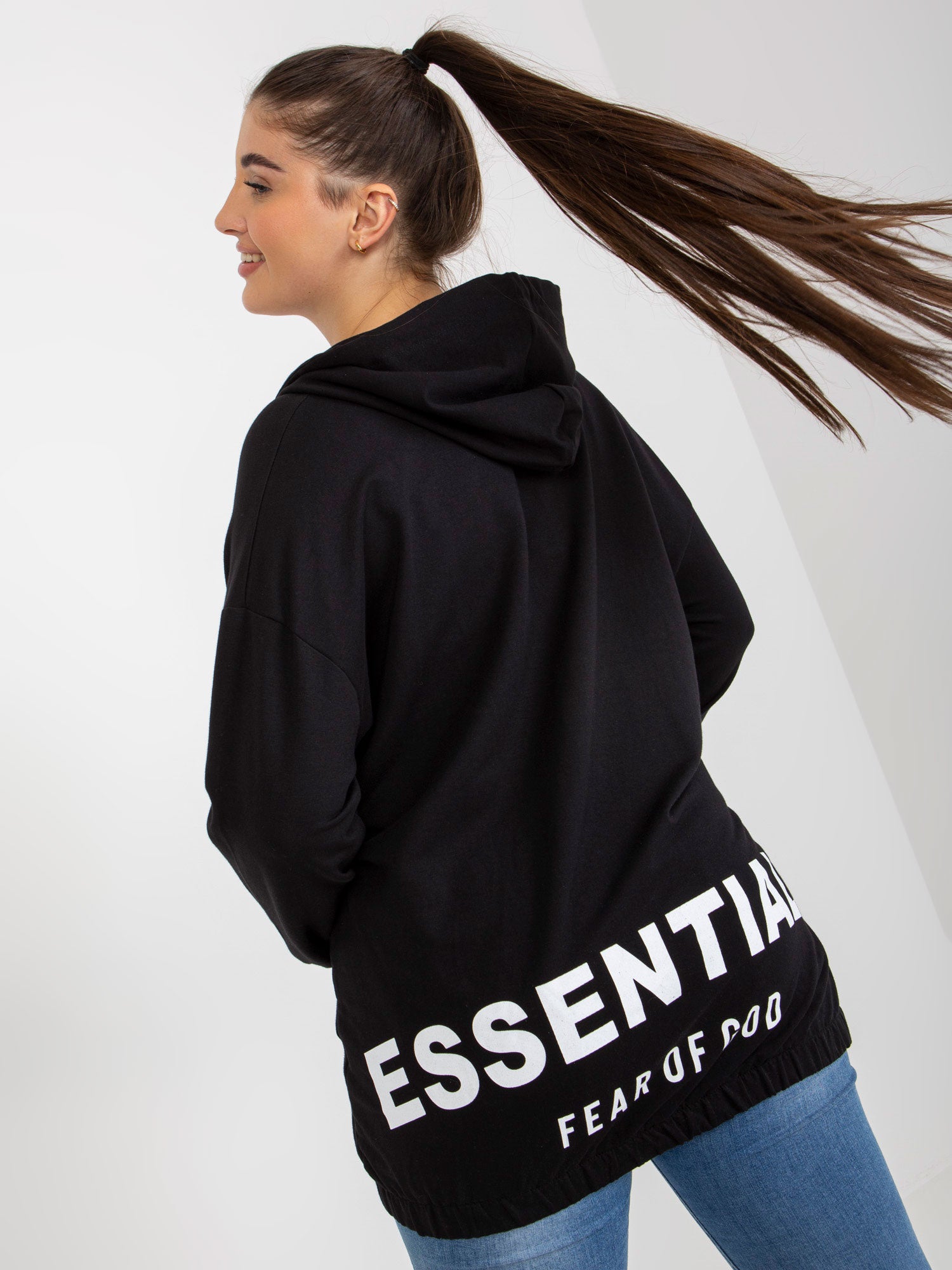 Czarna rozpinana bluza plus size z kieszeniami .