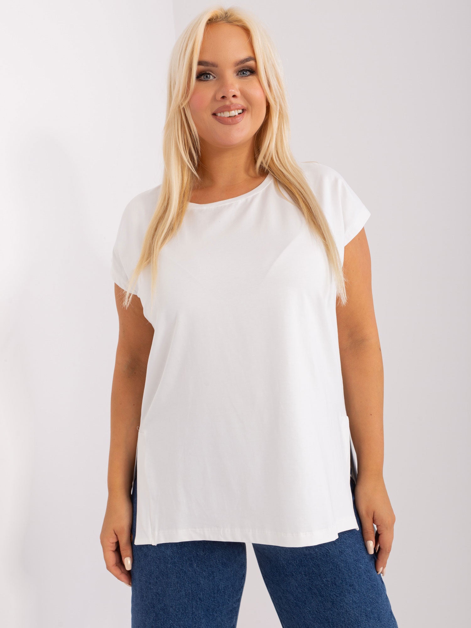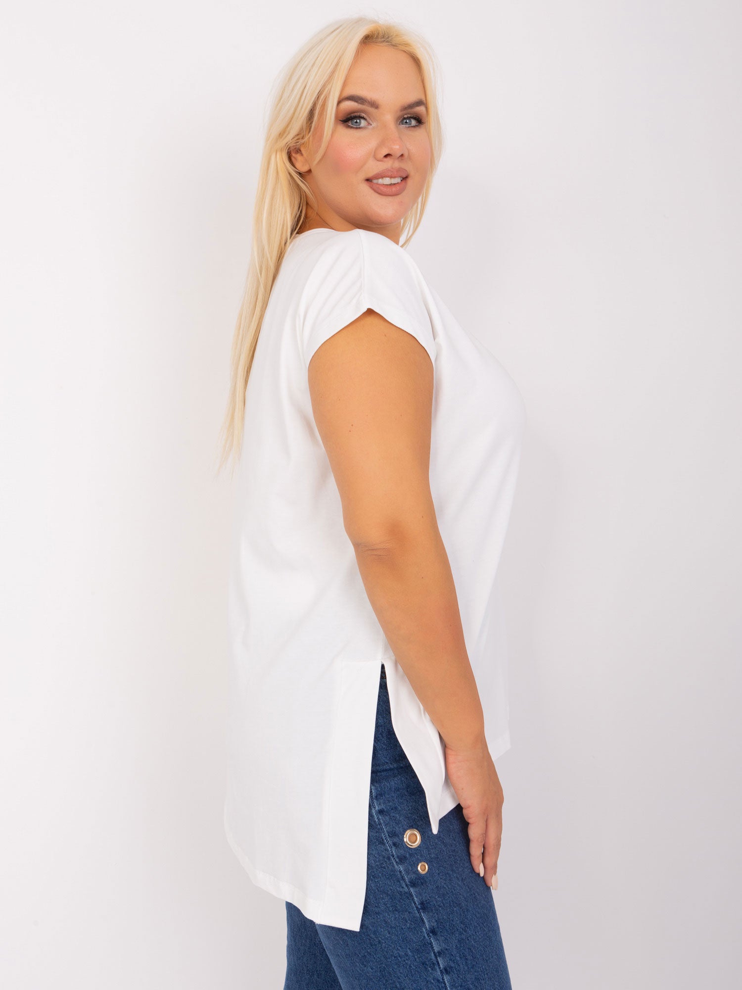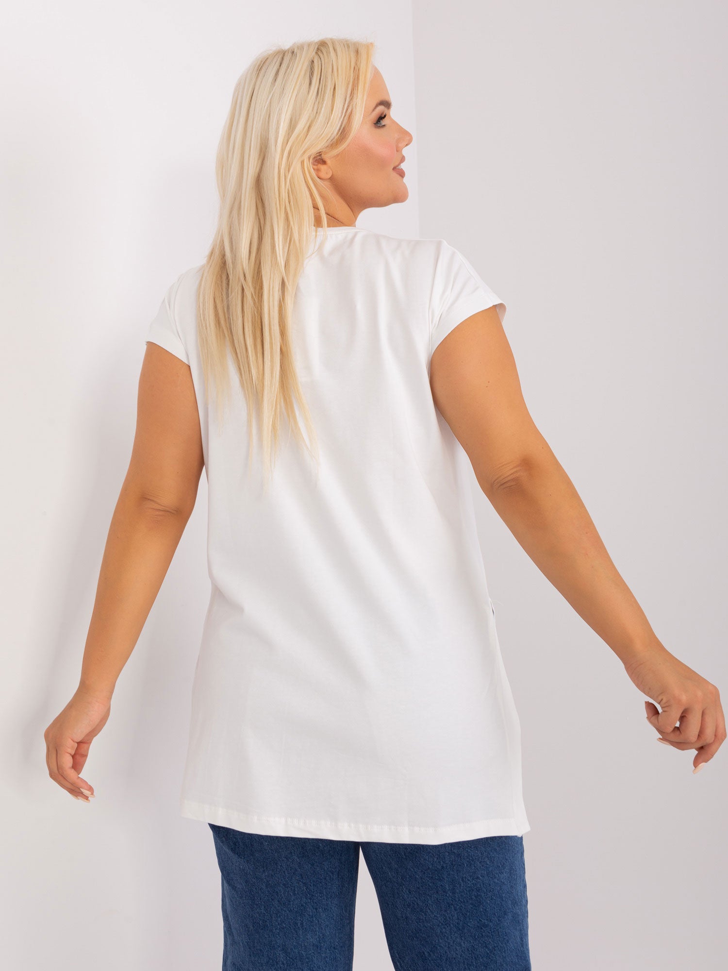Wymiary bluzki w rozmiarze one size mierzone na płasko: szerokość pod pachami - 60 cm, długość całkowita: przód - 68 cm, tył - 77 cm.