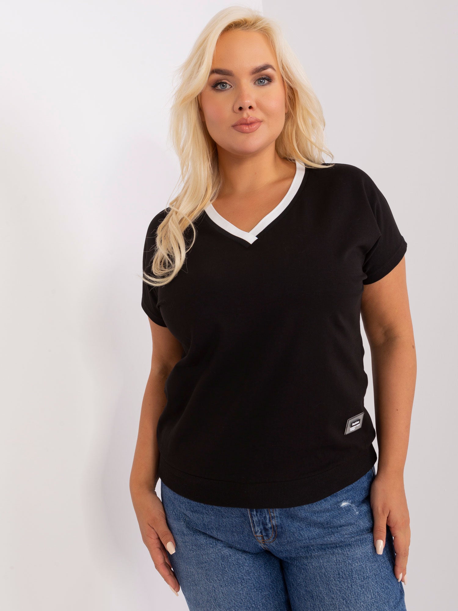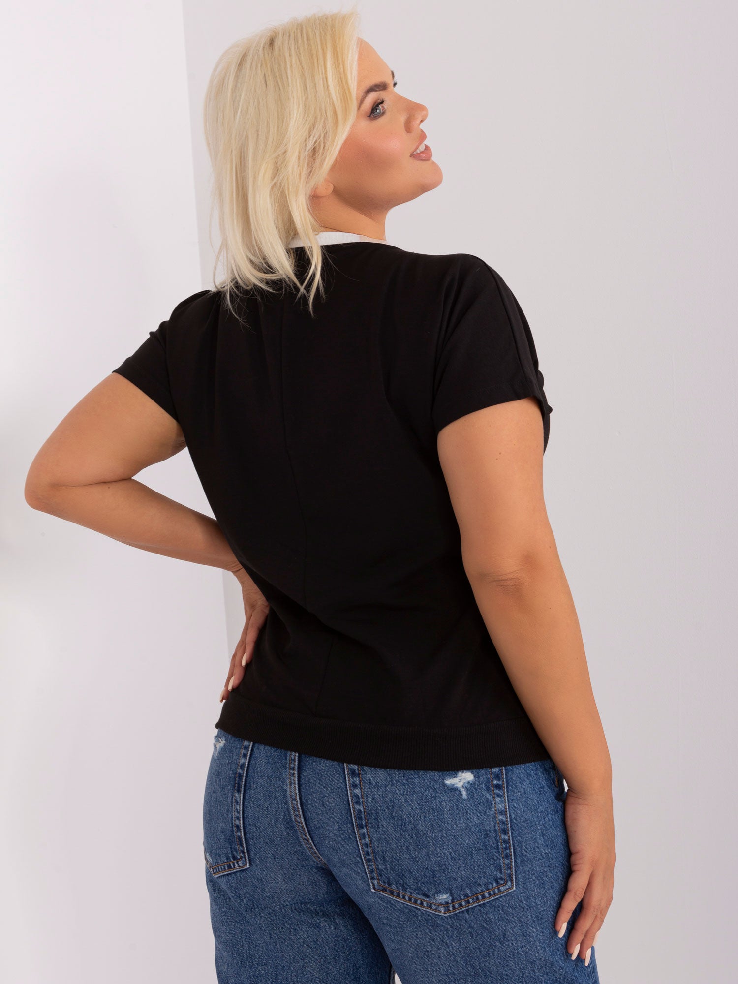 Czarna bluzka plus size z krótkim rękawem .