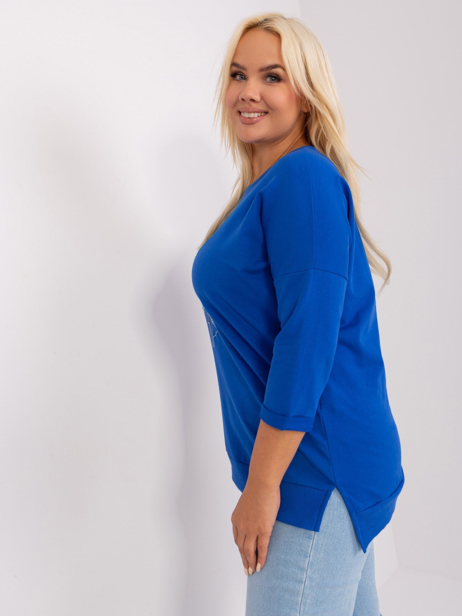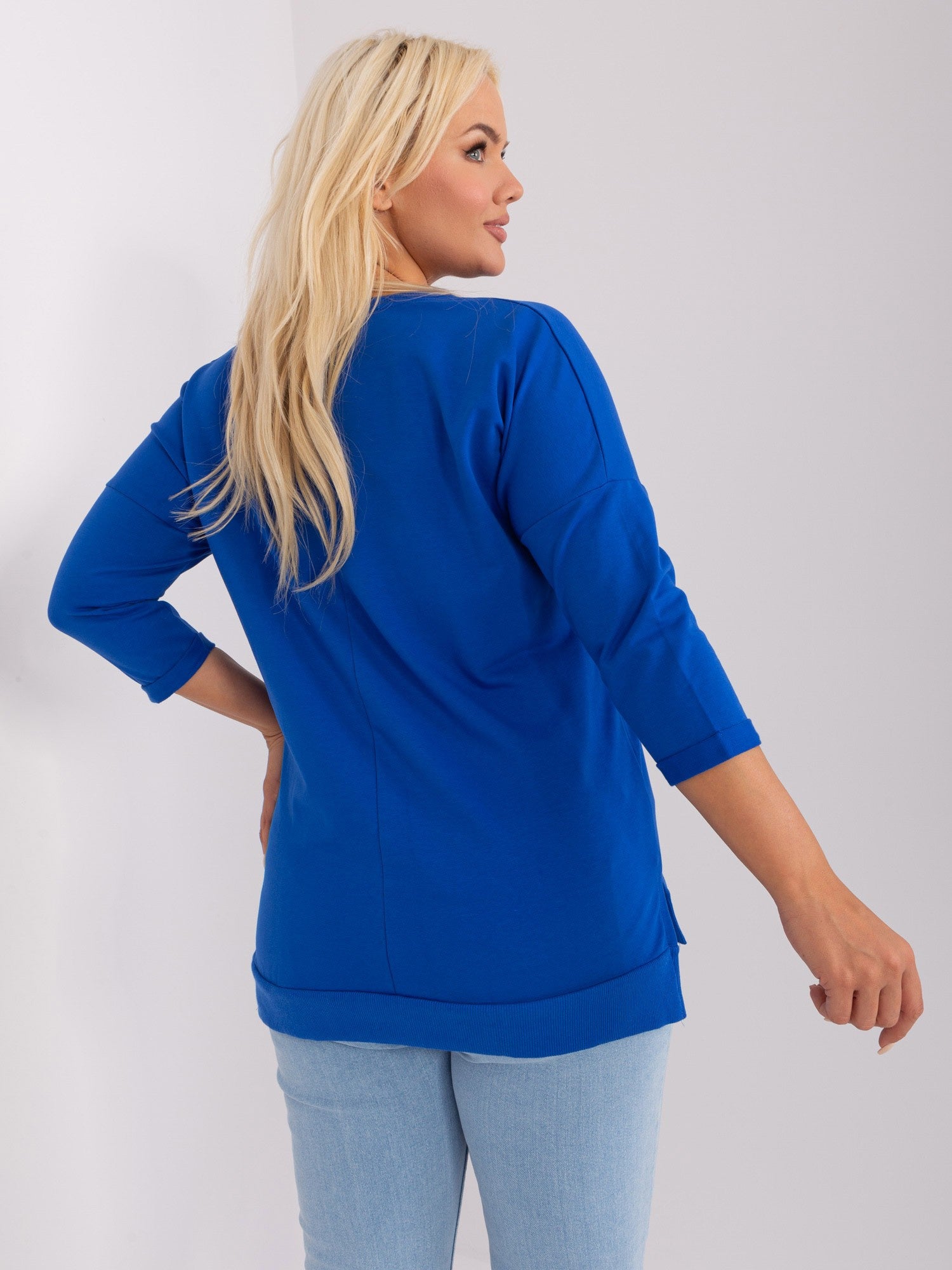 Kobaltowa bluzka plus size z aplikacją.