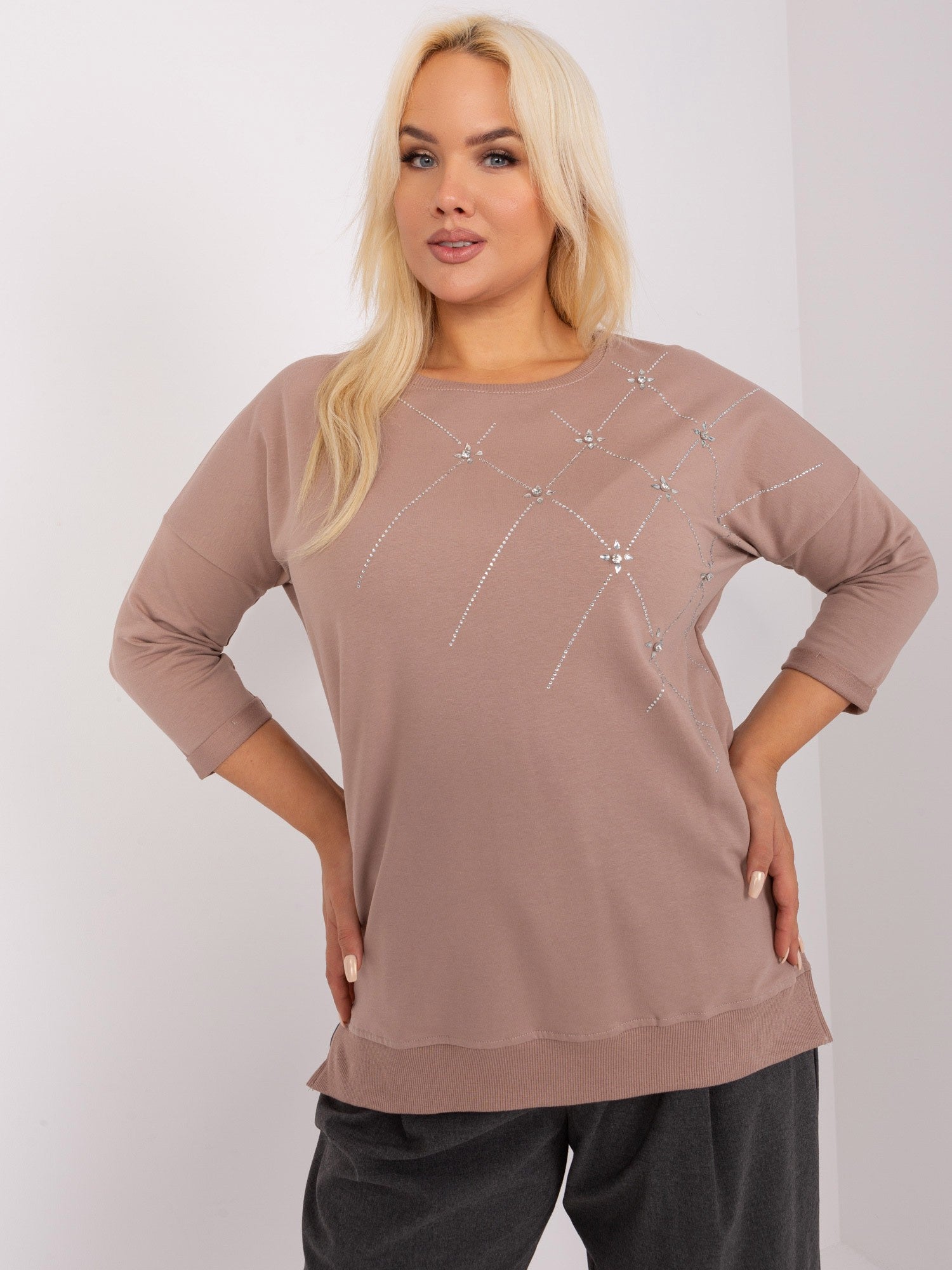 Ciemnobeżowa damska bluzka plus size z bawełny.