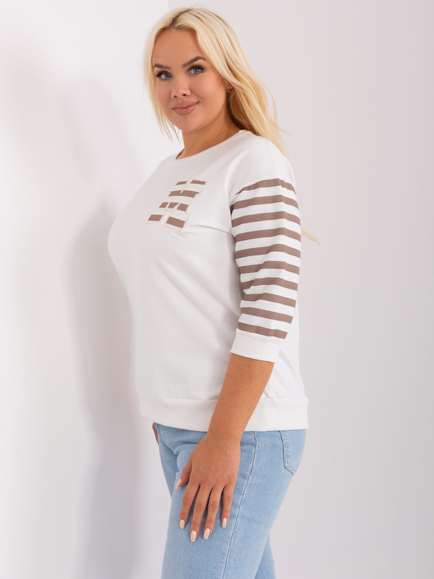 Ecru bawełniana damska bluzka plus size.