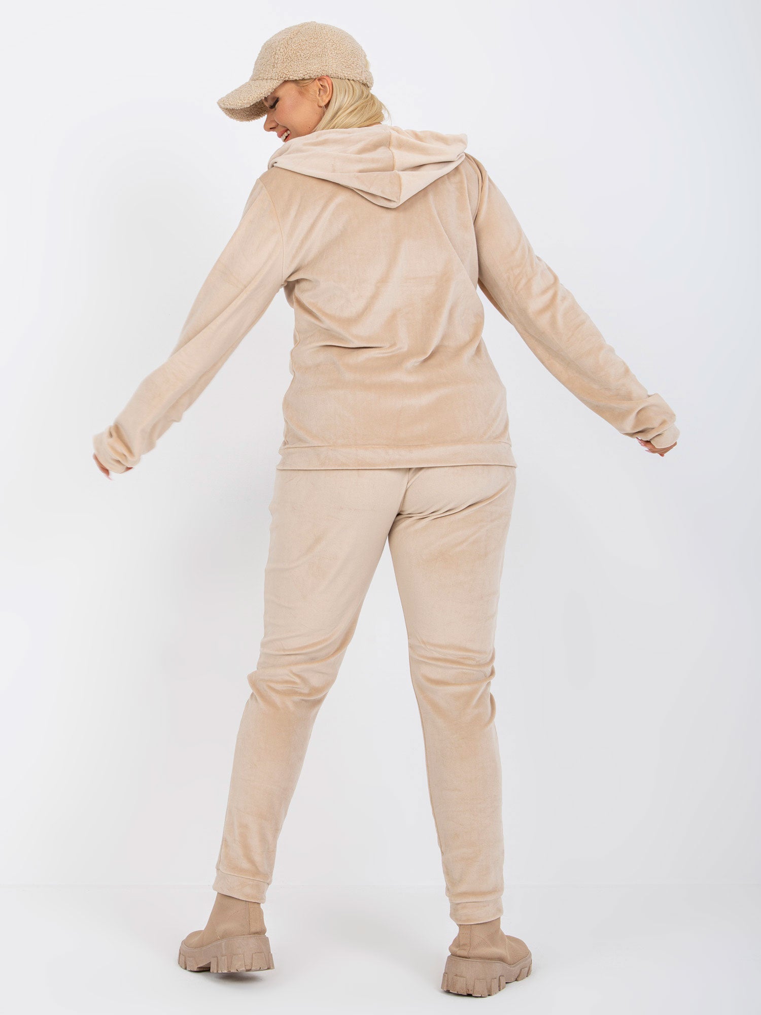 Jasnobeżowy welurowy komplet plus size z bluzą z kapturem Michell .