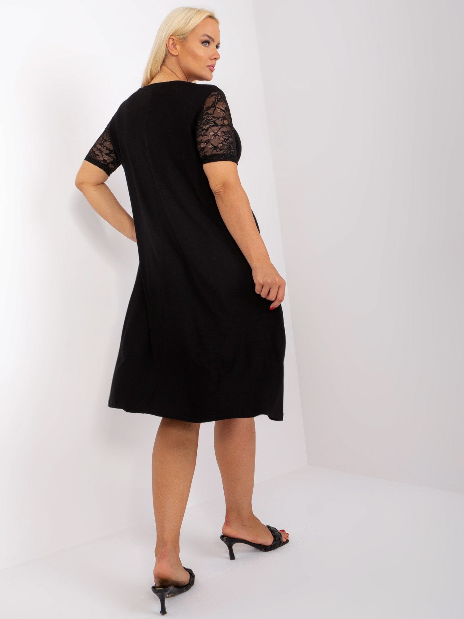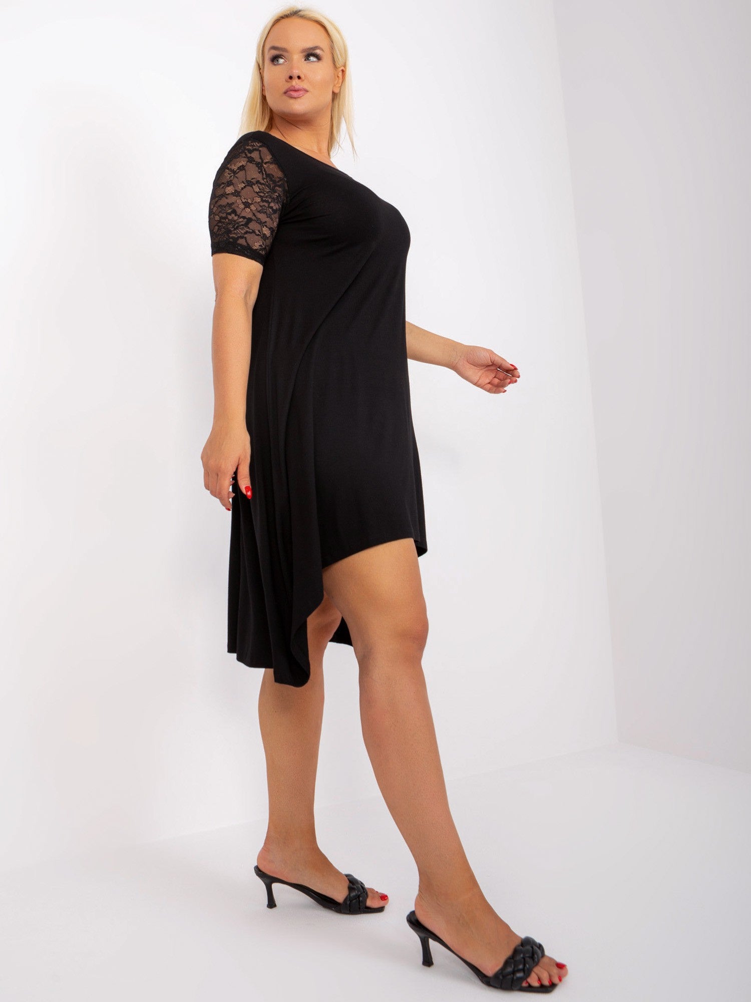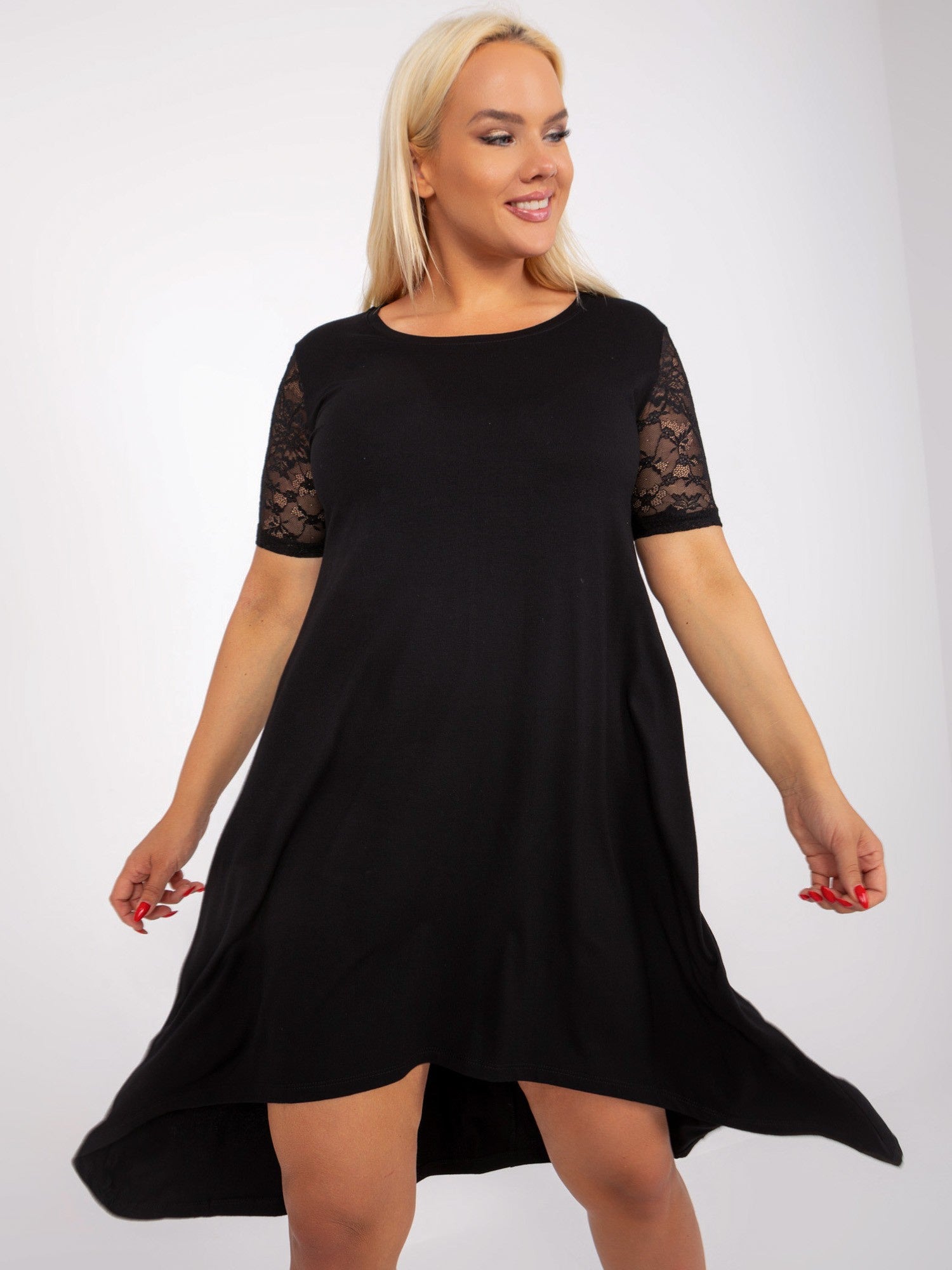 Wymiary sukienki w rozmiarze one size mierzone na płasko: szerokość pod pachami - 58 cm, długość całkowita (przód) - 91 cm, długość całkowita (tył) - 106 cm .