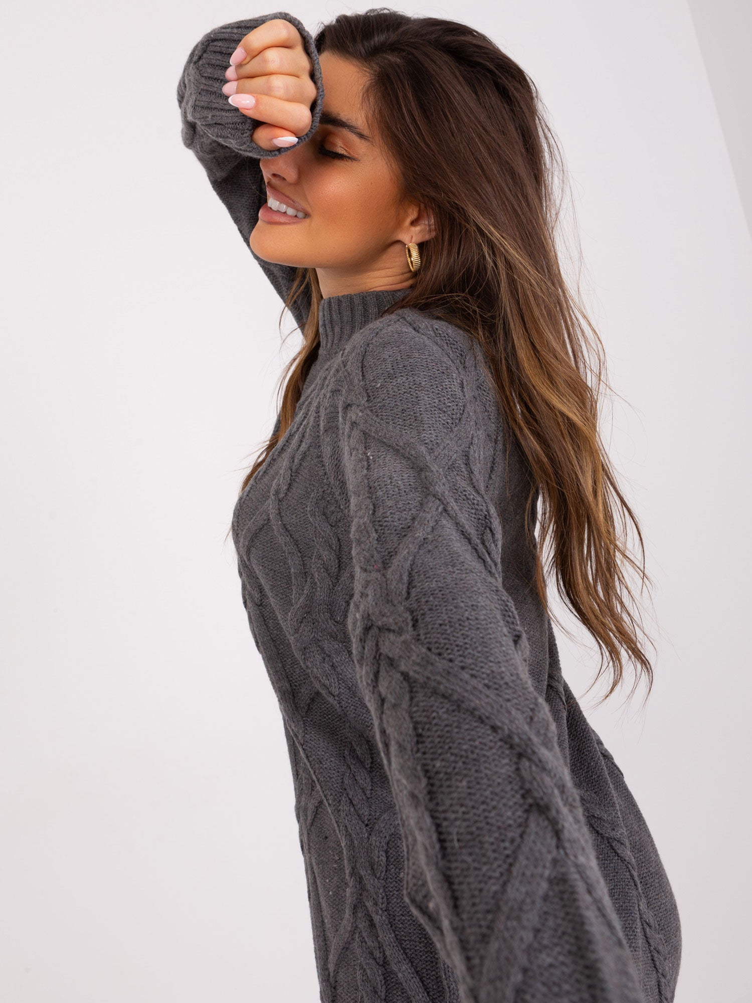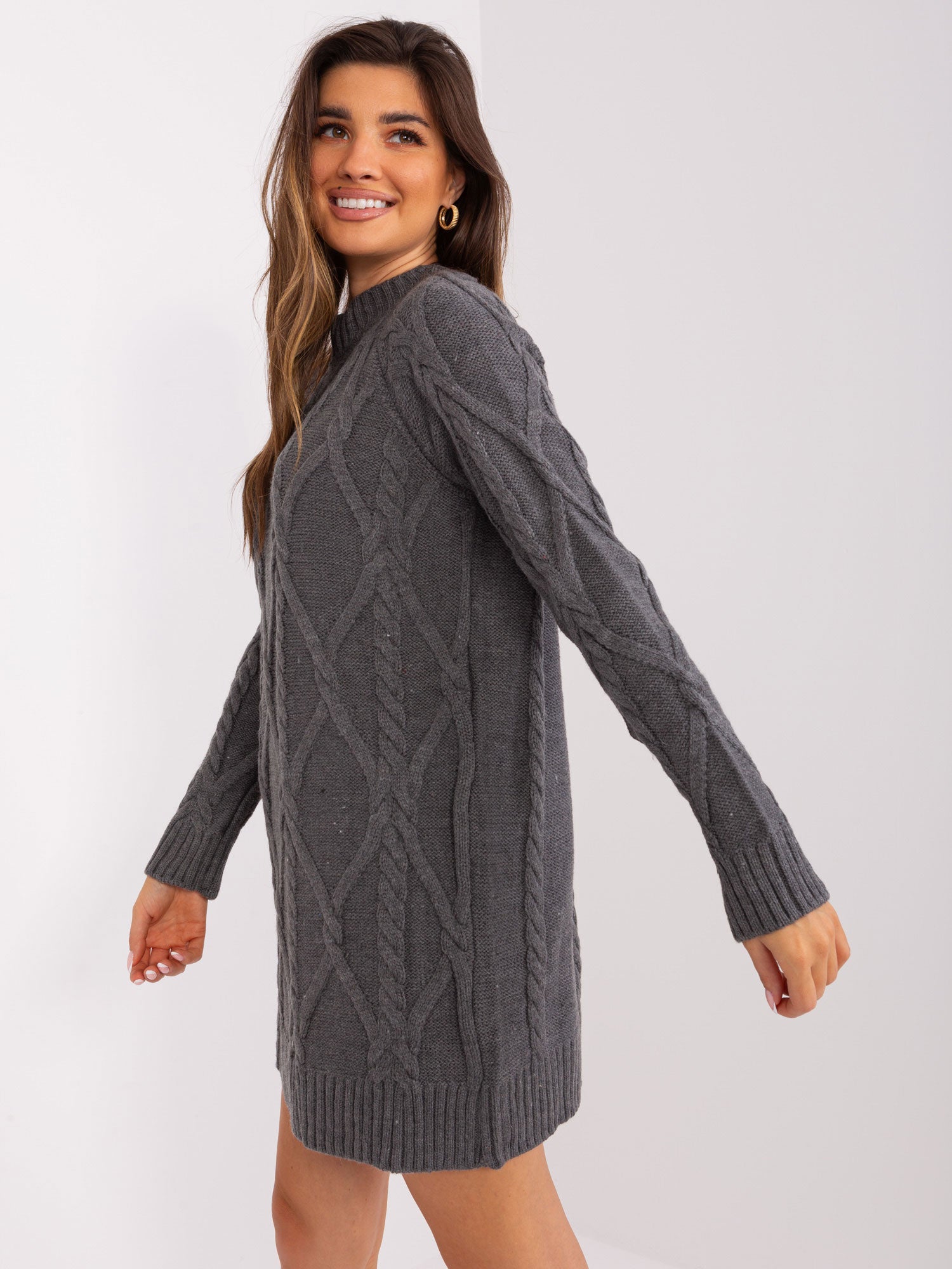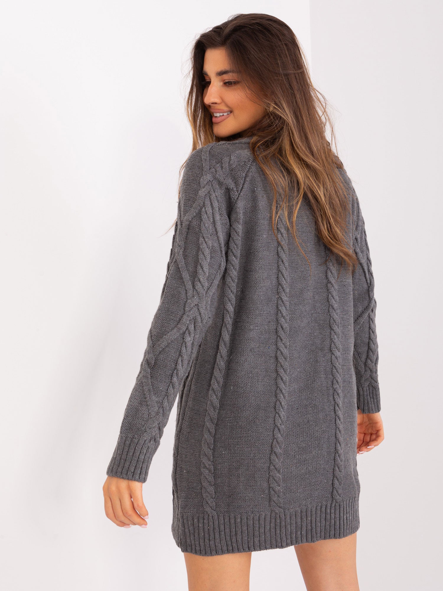 Ciemnoszara dzianinowa sukienka w warkocze.