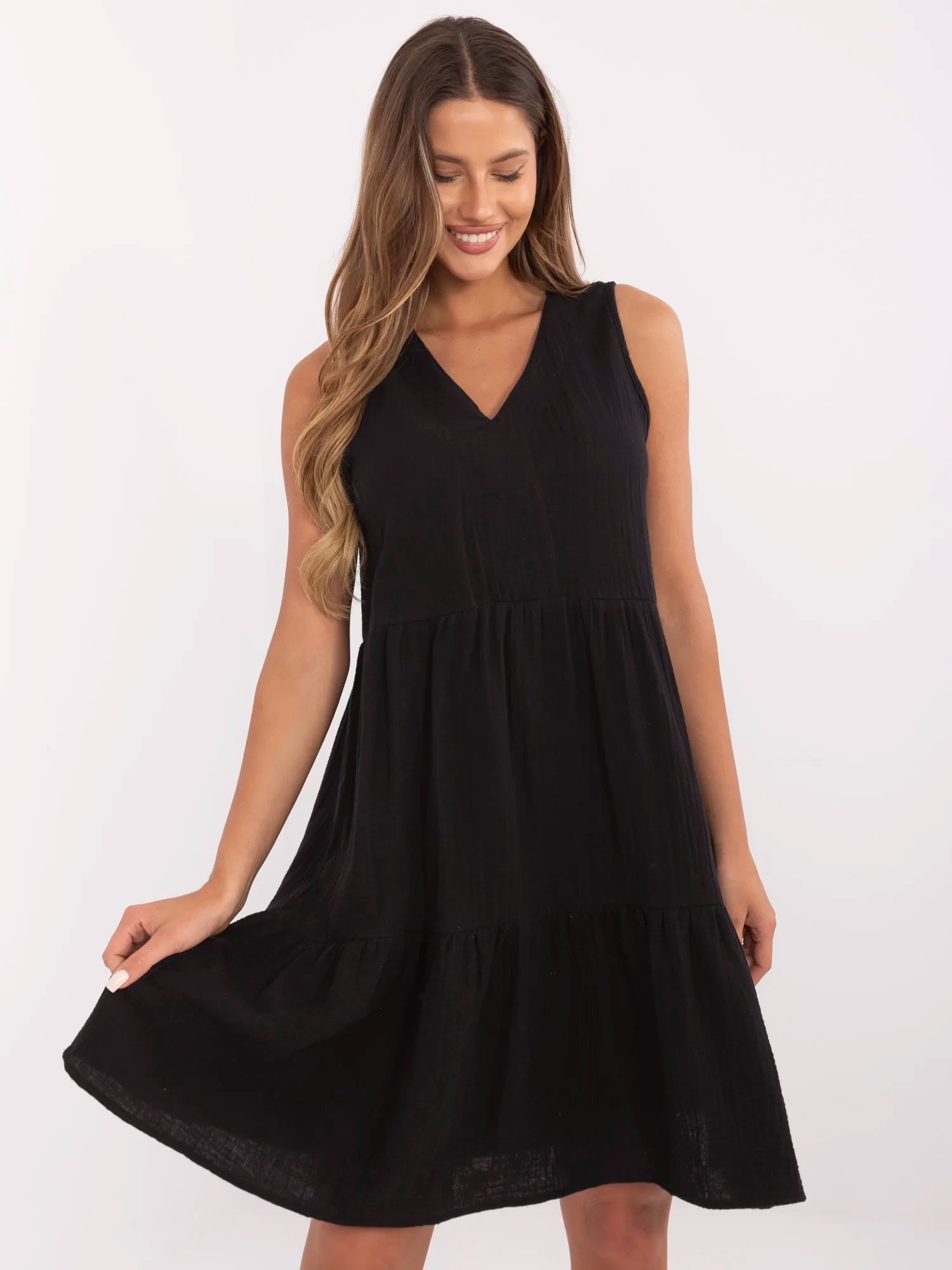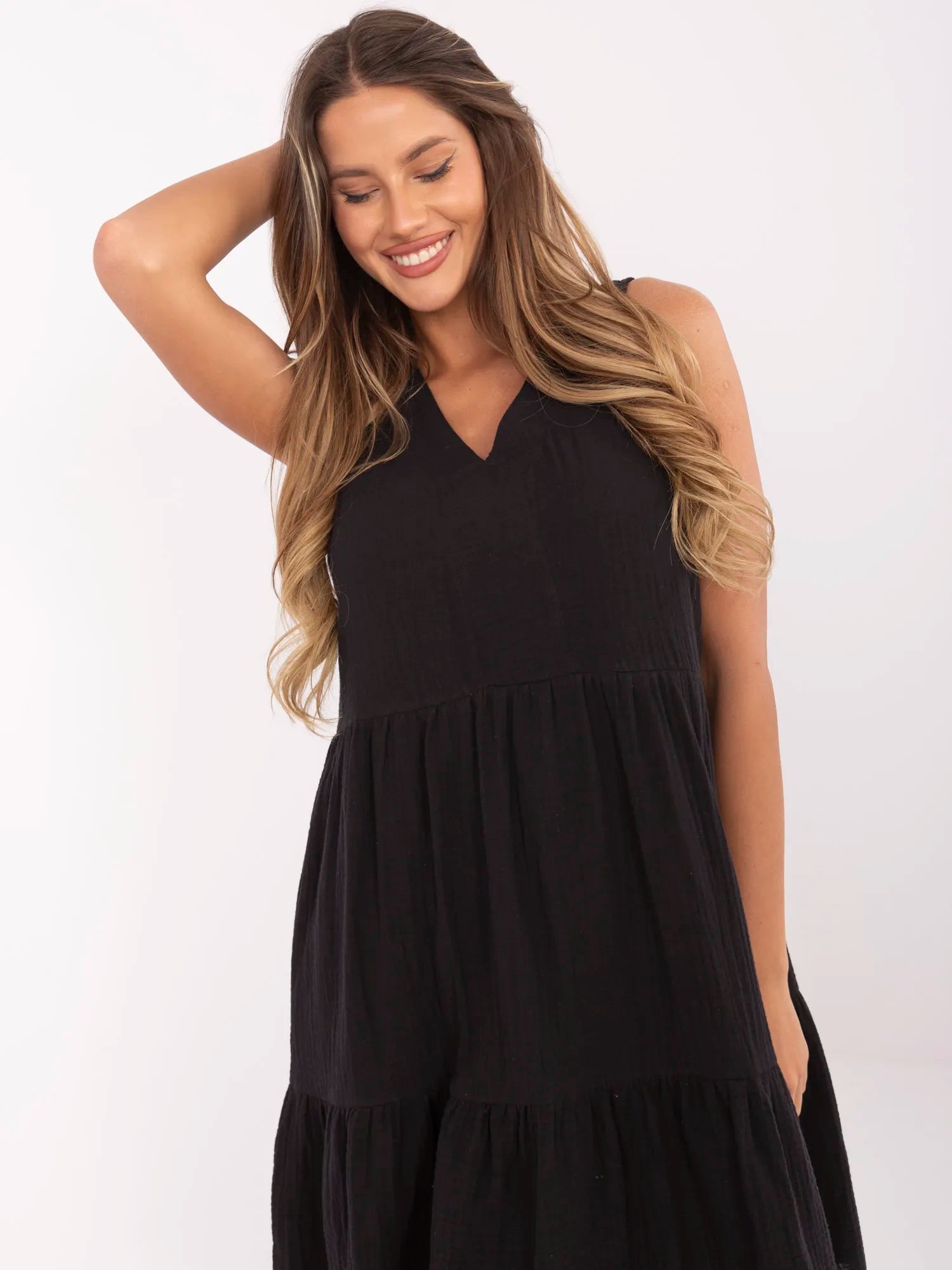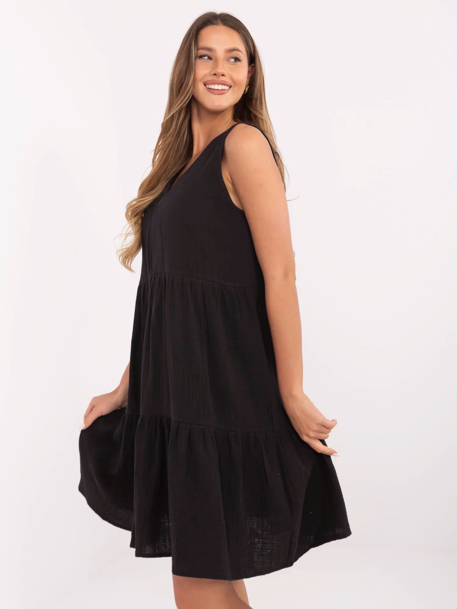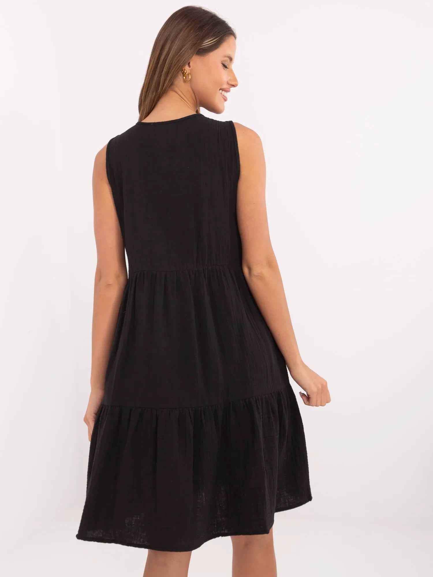 Wymiary sukienki w rozmiarze S/M mierzone na płasko: szerokość pod pachami - 50 cm, szerokość w talii - 50 cm, szerokość w biodrach - 68 cm, długość całkowita - 96 cm.