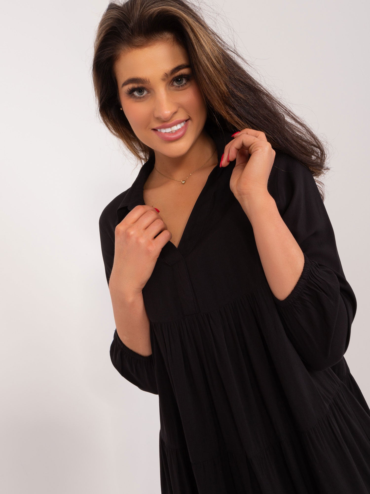 Wymiary sukienki w rozmiarze S mierzone na płasko: szerokość pod pachami - 50 cm, długość rękawa - 49 cm, długość całkowita - 94 cm.