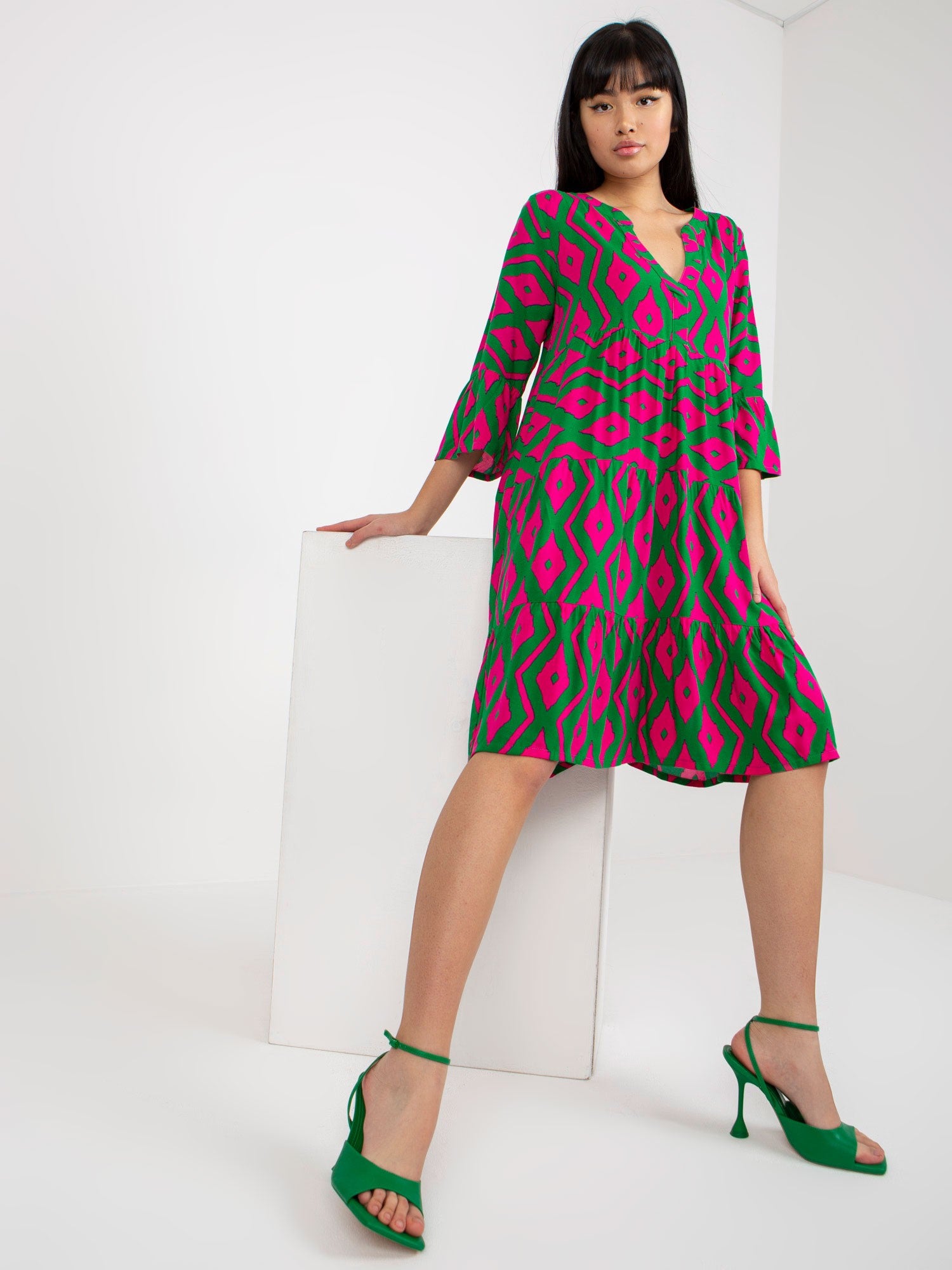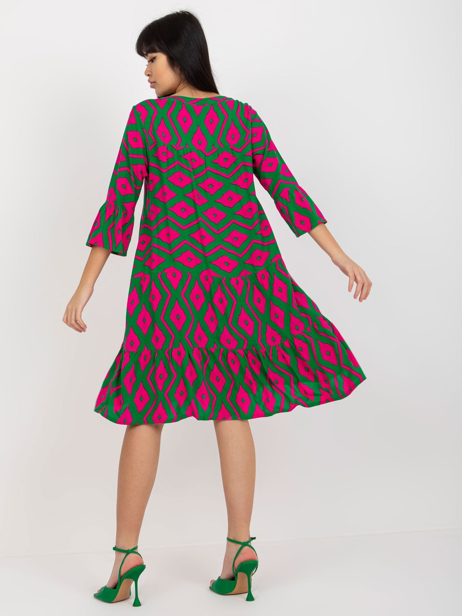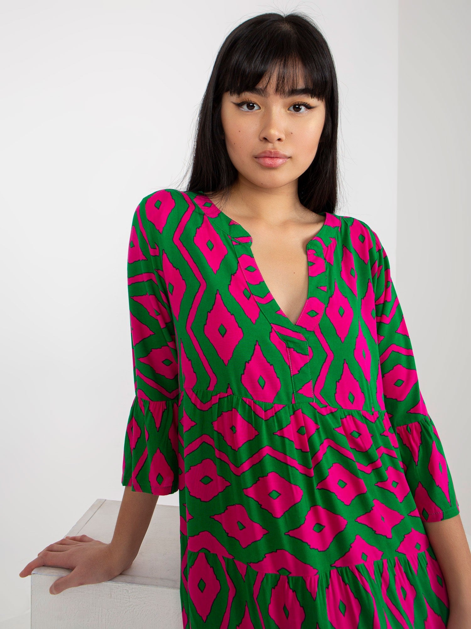 Zielona damska sukienka z printam i falbaną SUBLEVEL .