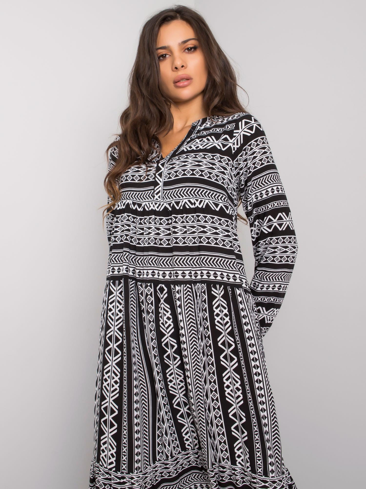 Wymiary sukienki w rozmiarze S mierzone na płasko: szerokość pod pachami - 46 cm, długość całkowita - 129 cm, długość rękawa - 58 cm