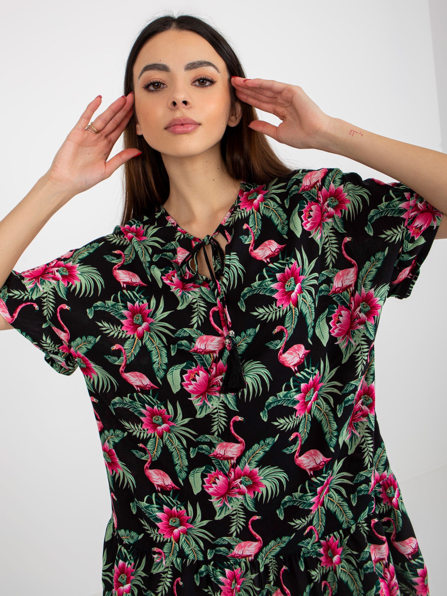 Sukienka z letnim nadrukiem i falbaną SUBLEVEL .