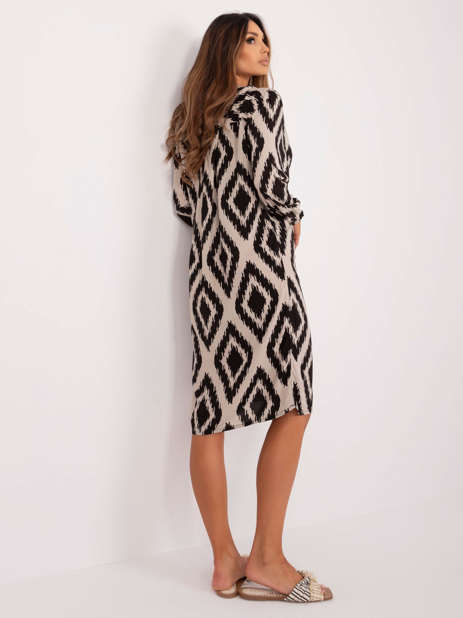 Wymiary sukienki w rozmiarze S mierzone na płasko: szerokość pod pachami - 55 cm, długość rękawa - 50 cm, długość całkowita - 107 cm.