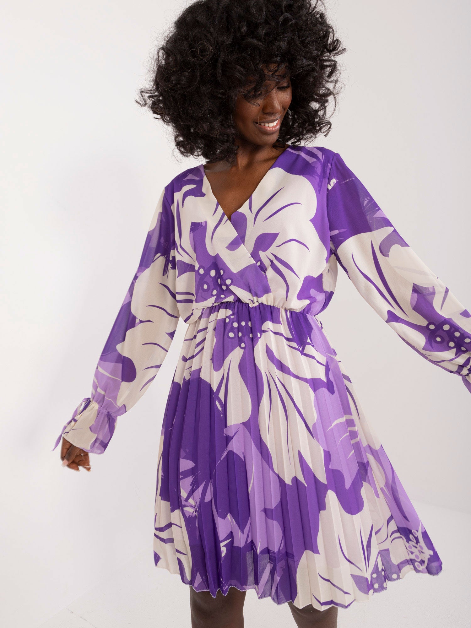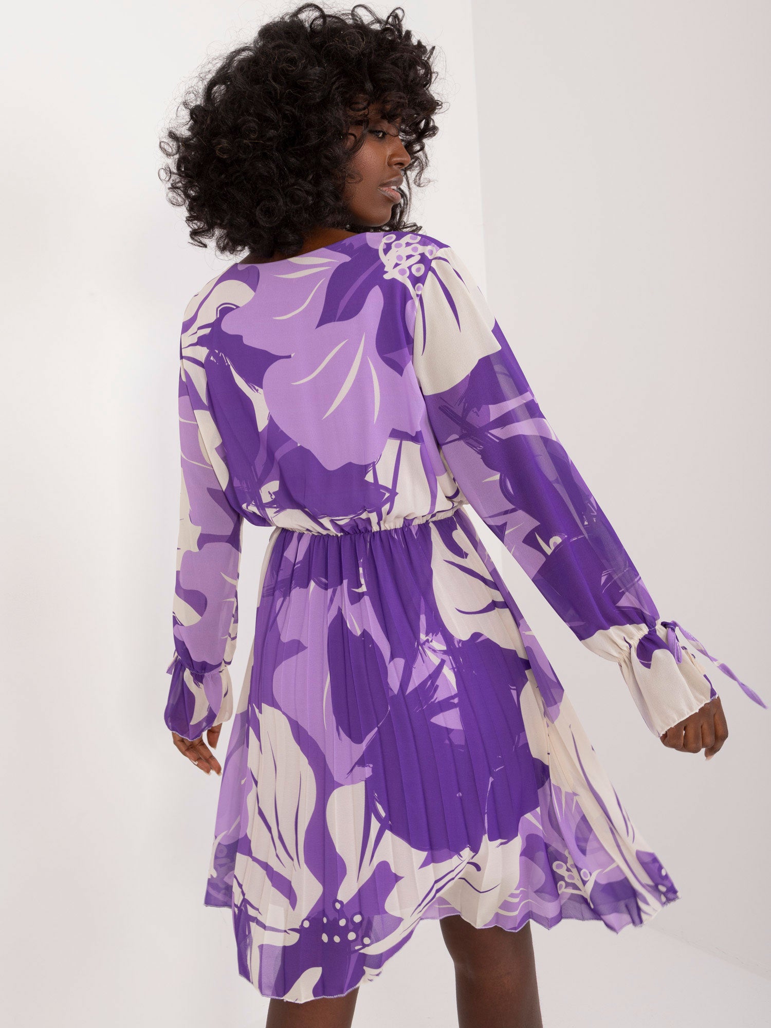 Wymiary sukienki w rozmiarze one size mierzone na płasko: szerokość pod pachami - 44 cm, długość całkowita - 90 cm, długość rękawa - 57 cm.