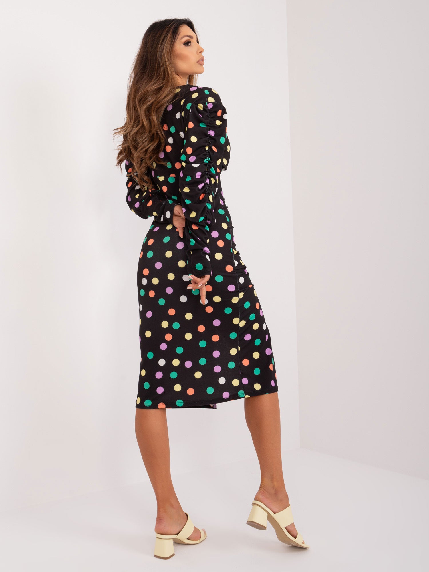 Wymiary sukienki w rozmiarze one size mierzone na płasko: szerokość pod pachami - 54 cm, długość rękawa - 64 cm, długość całkowita - 115 cm.