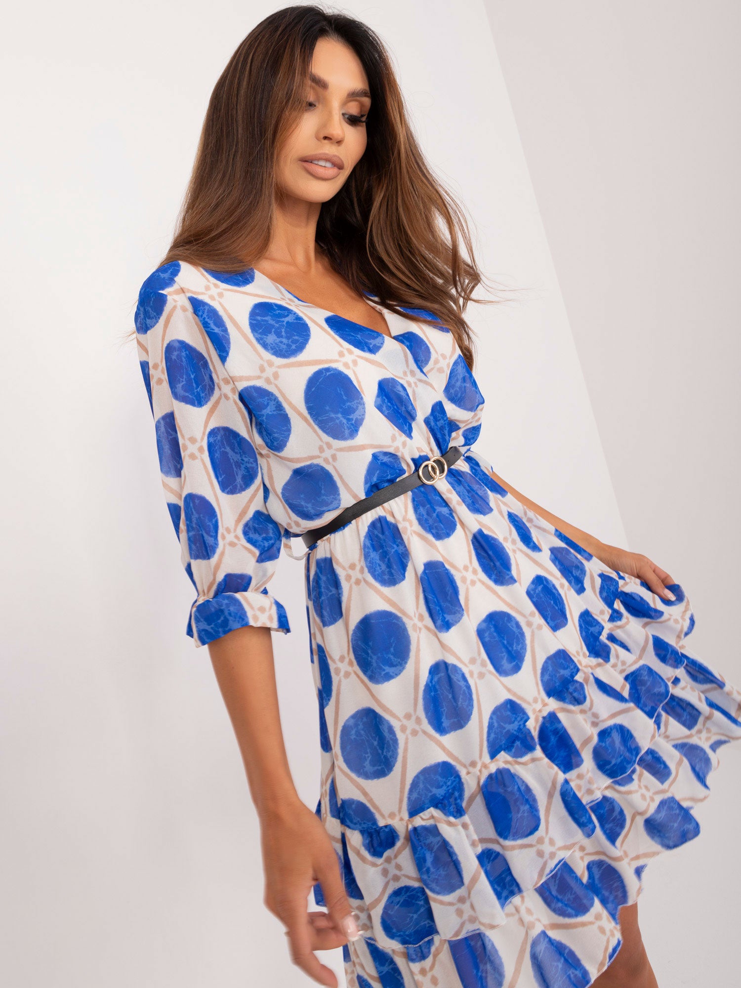 Wymiary sukienki w rozmiarze one size mierzone na płasko: szerokość pod pachami - 43 cm, długość całkowita - 86 cm, długość rękawa - 38 cm.