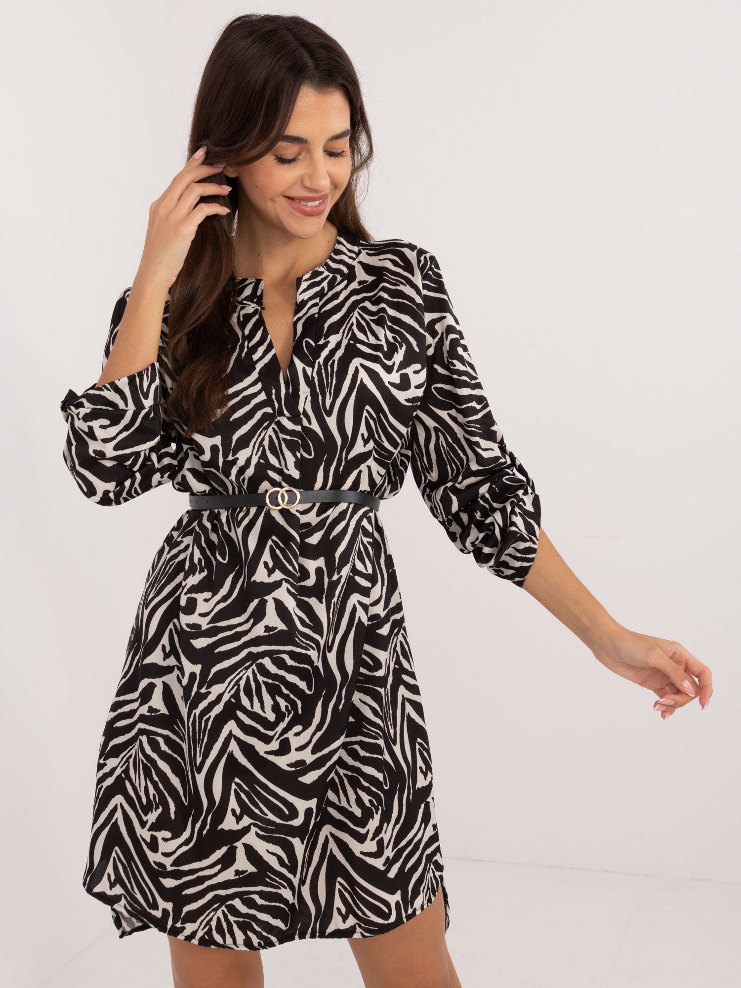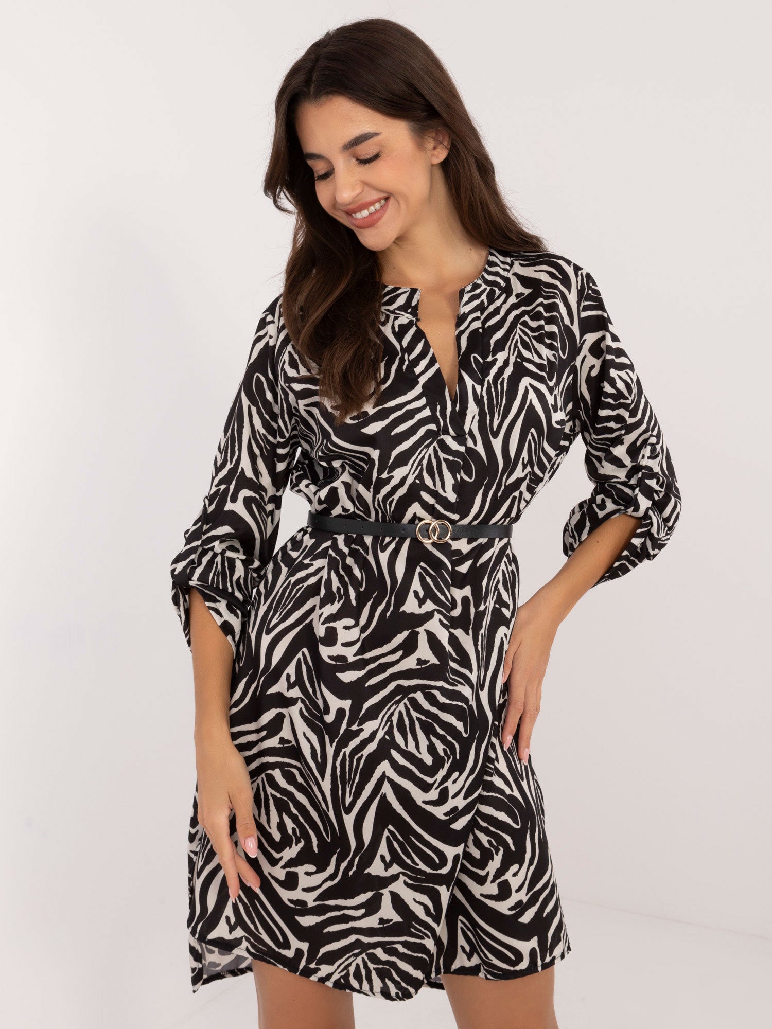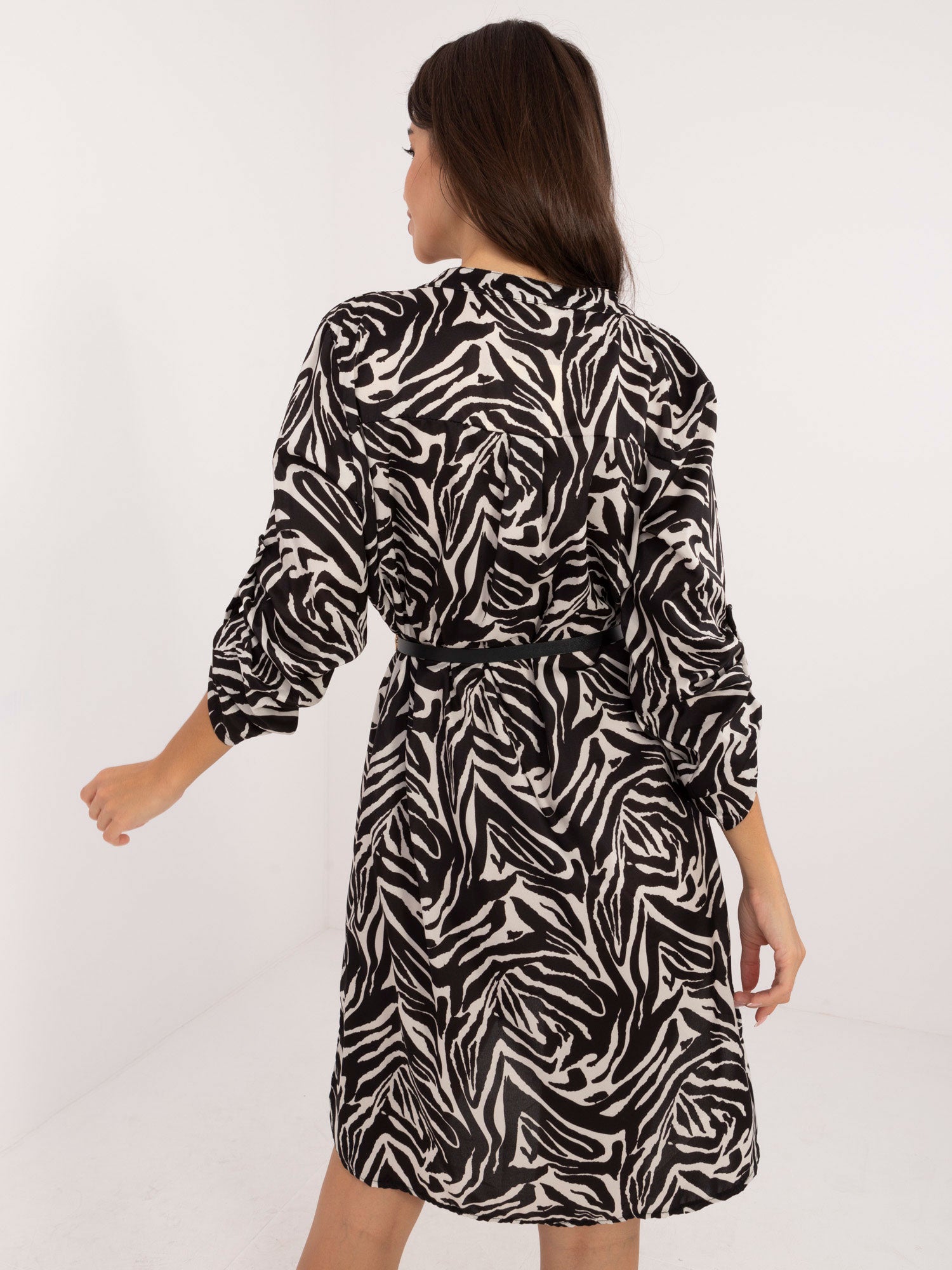 Wymiary sukienki w rozmiarze one size mierzone na płasko: szerokość pod pachami - 60 cm, długość rękawa - 62 cm, długość całkowita (przód) - 88 cm, długość całkowita (tył) - 101 cm .