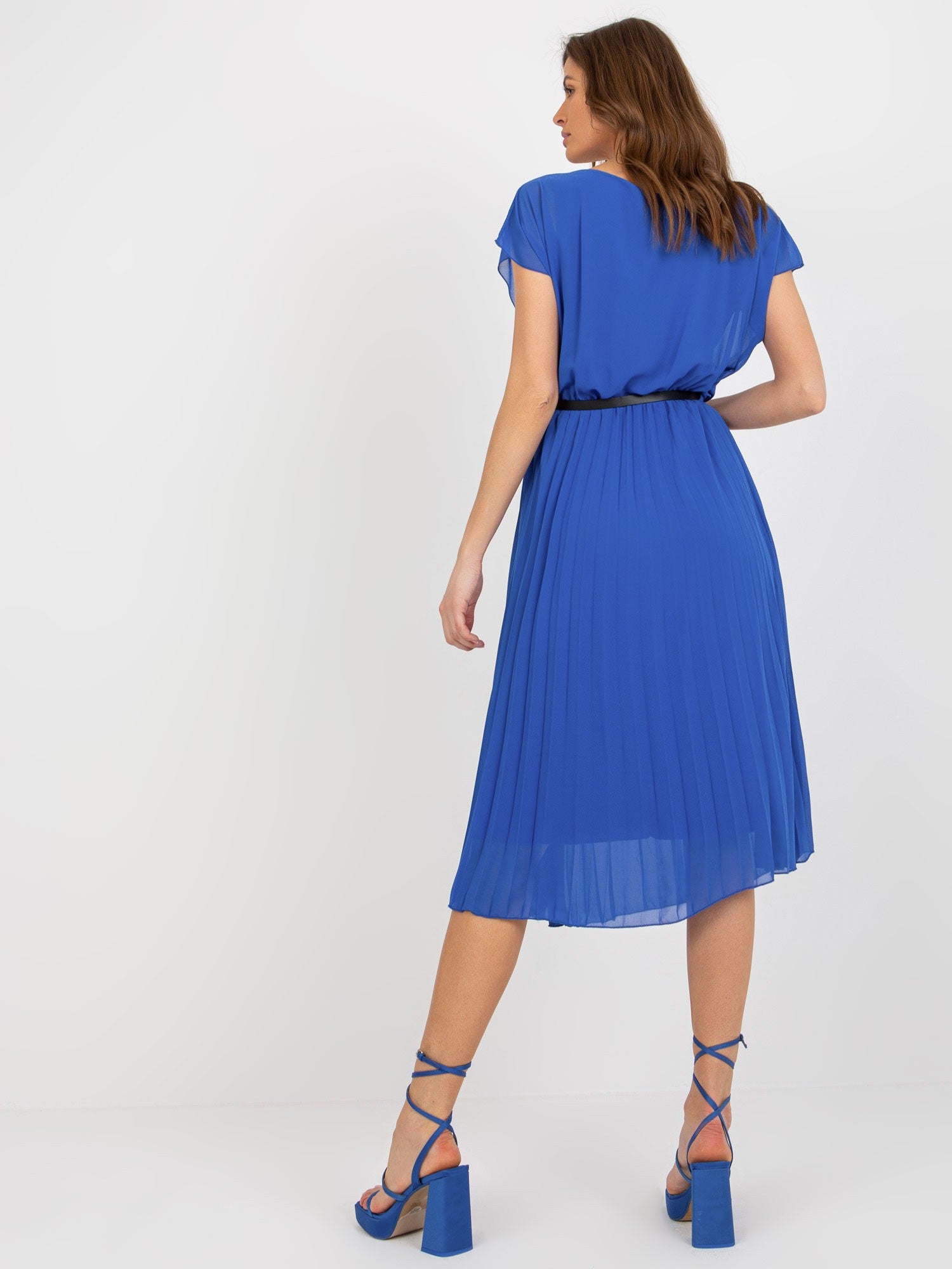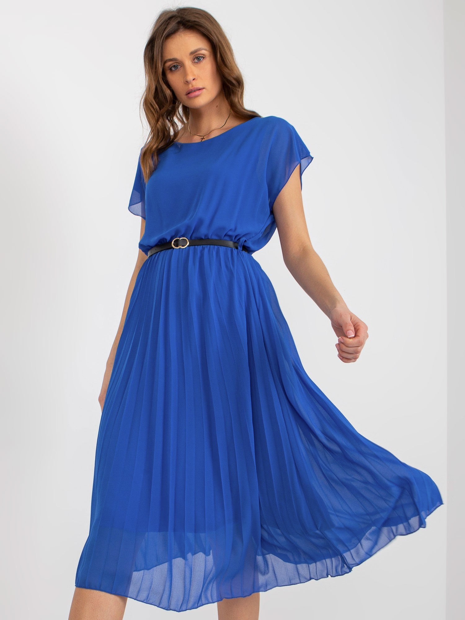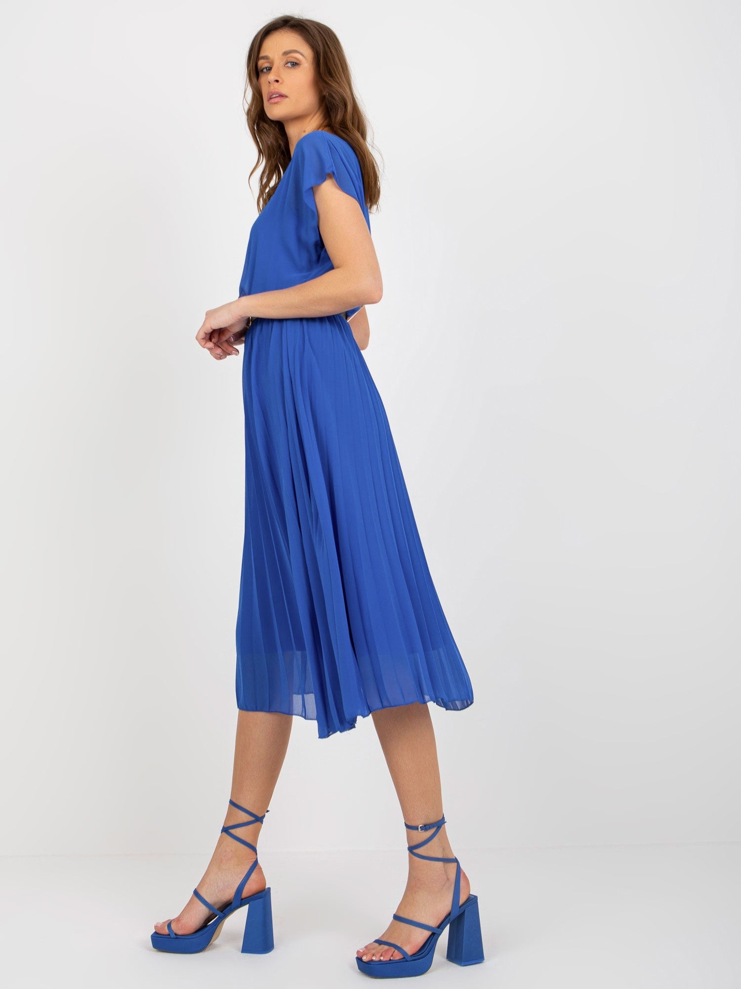 Kobaltowa sukienka plisowana z dodatkiem wiskozy .