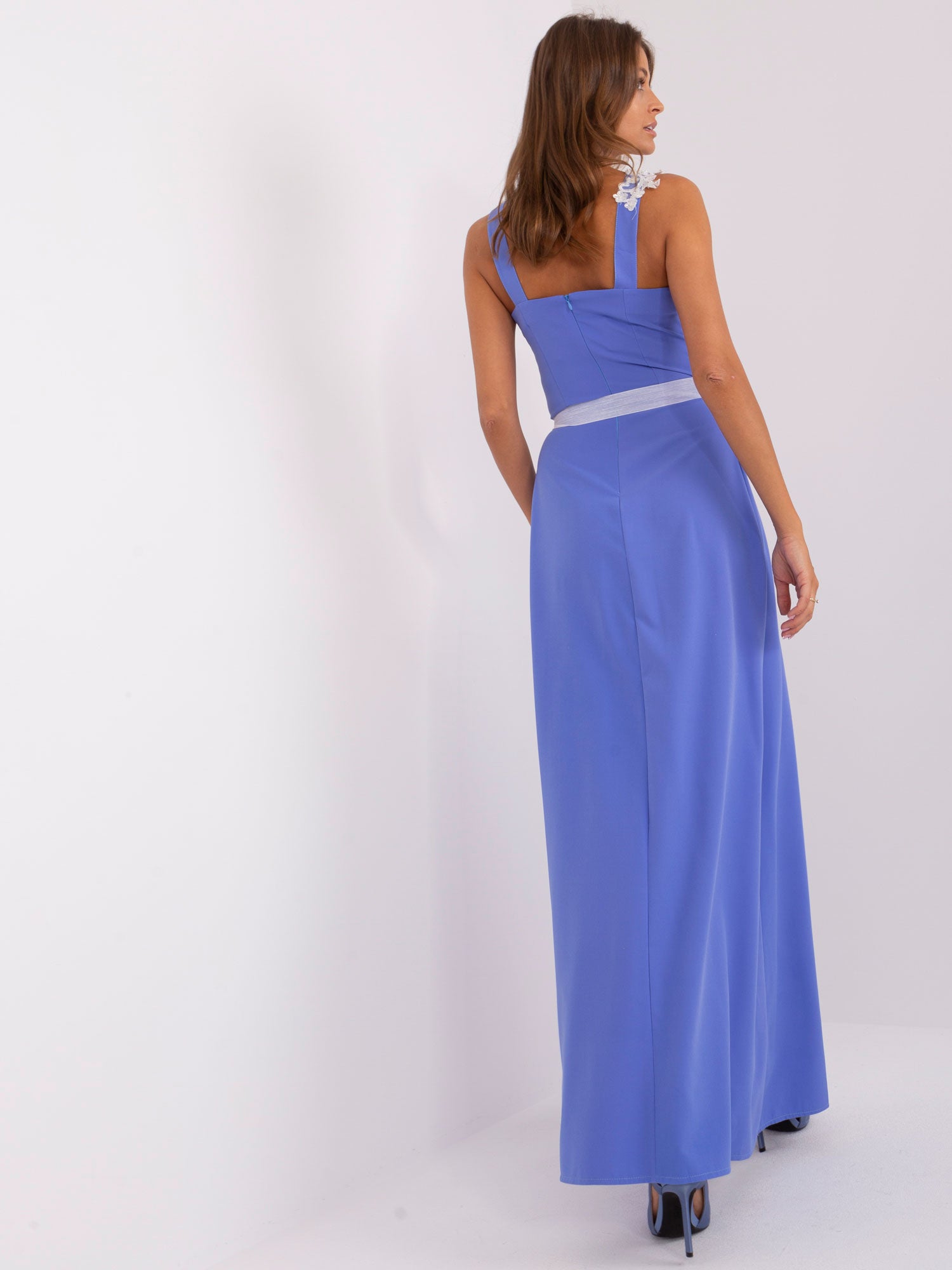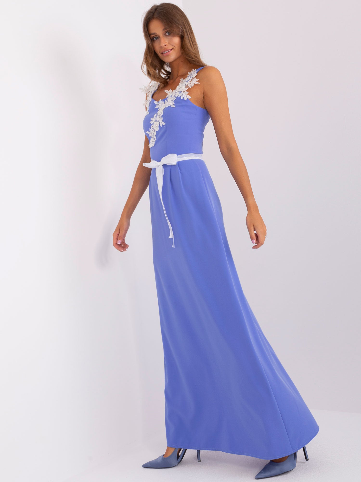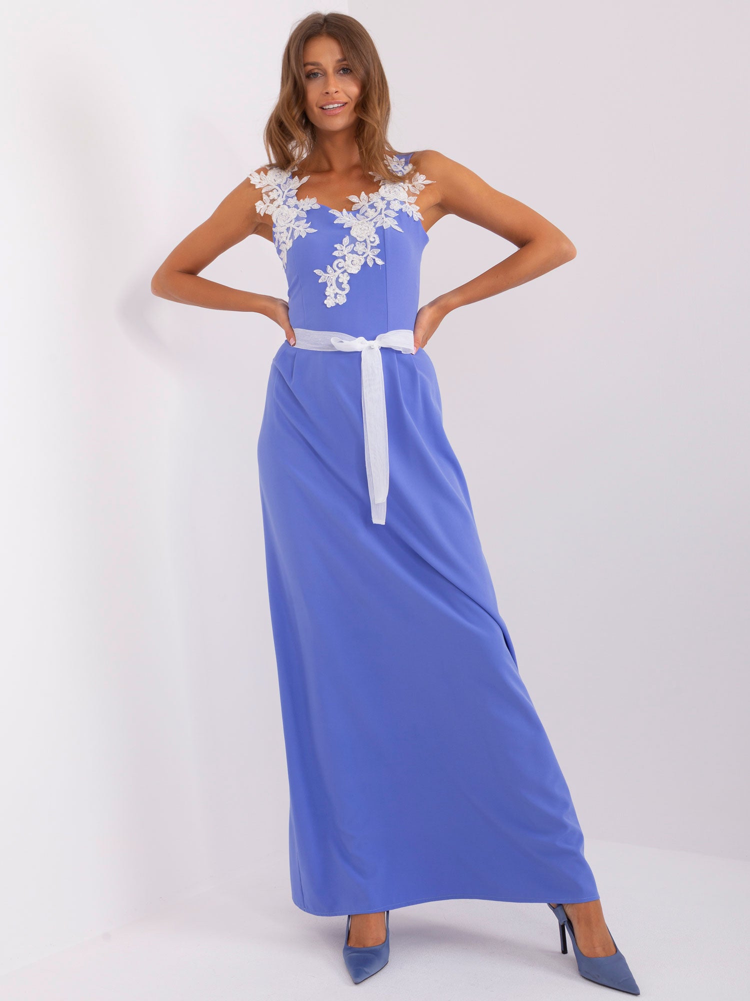 Ciemnoniebieska maxi sukienka wieczorowa z koronką .
