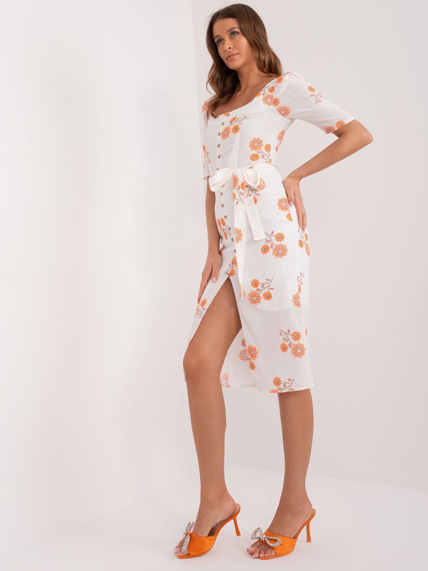 Wymiary sukienki w rozmiarze 36 mierzone na płasko: szerokość pod pachami - 41 cm, długość całkowita - 107 cm, długość rękawa - 31 cm