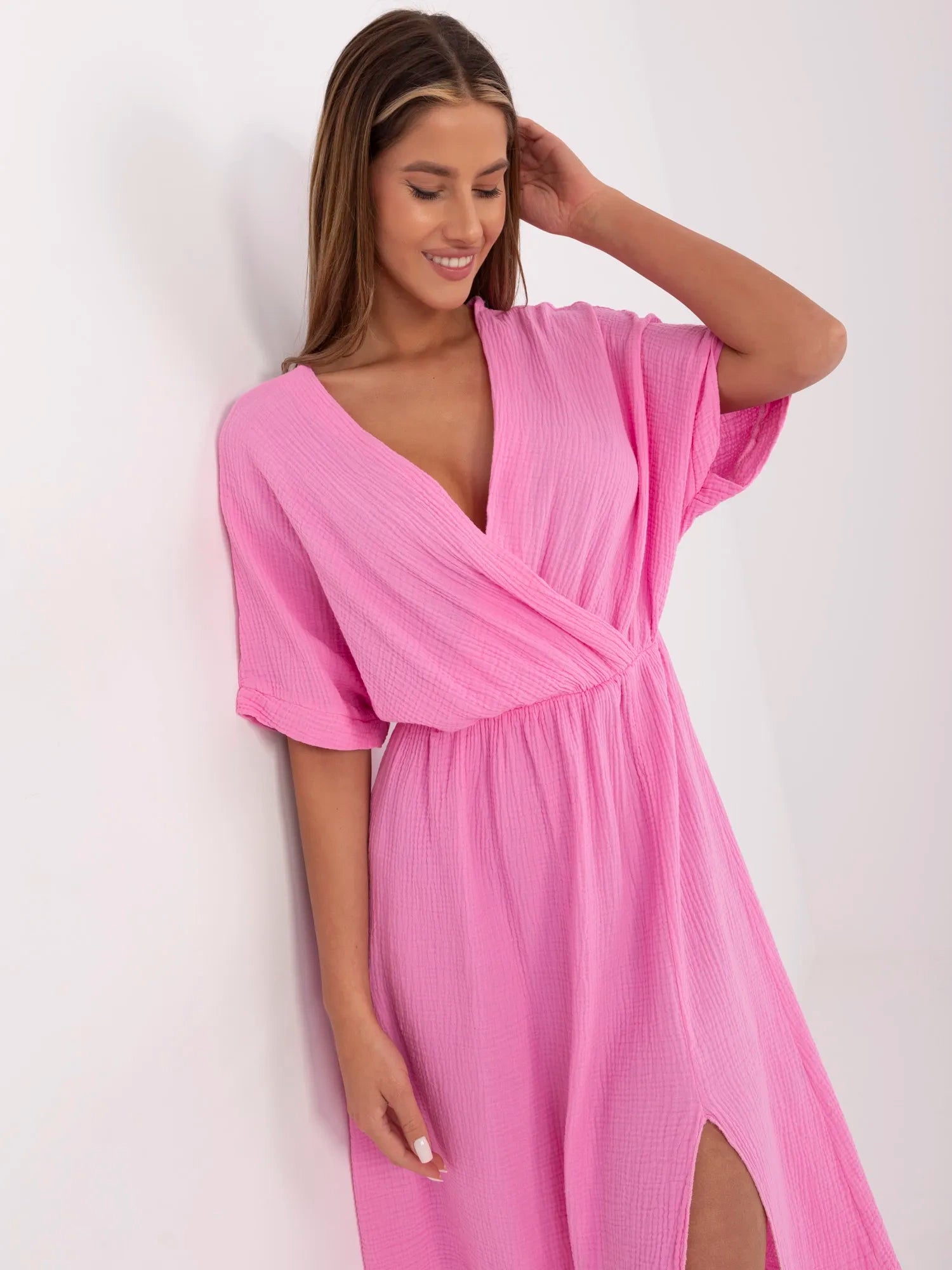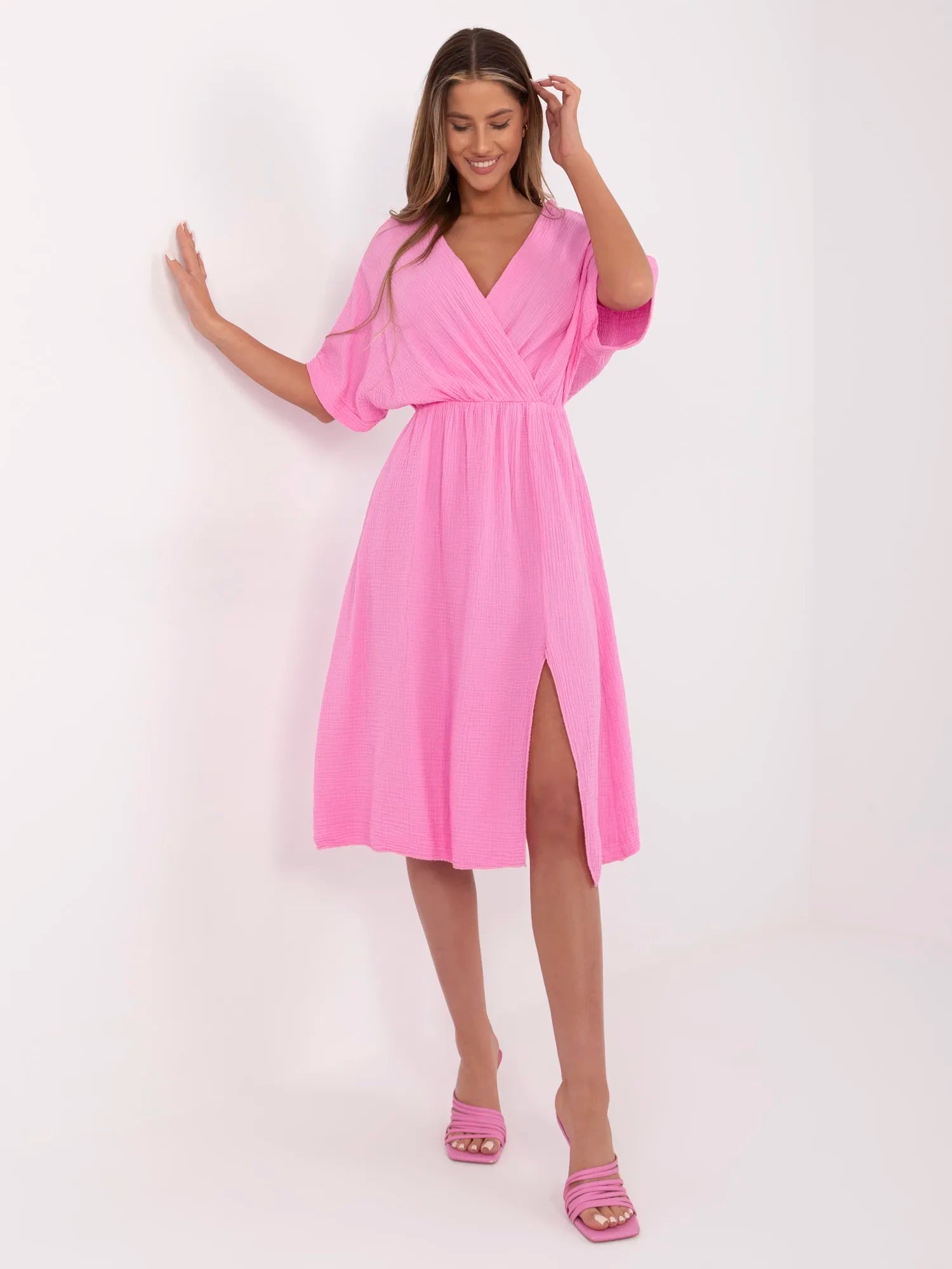 Wymiary sukienki w rozmiarze one size mierzone na płasko: szerokość pod pachami - 50 cm, szerokość w talii - 28 cm (ma płasko), szerokość w talii - 64 cm (po rozciągnięciu), długość rękawa - 36 cm, szerokość w biodrach - 62 cm, długość całkowita - 115 cm.