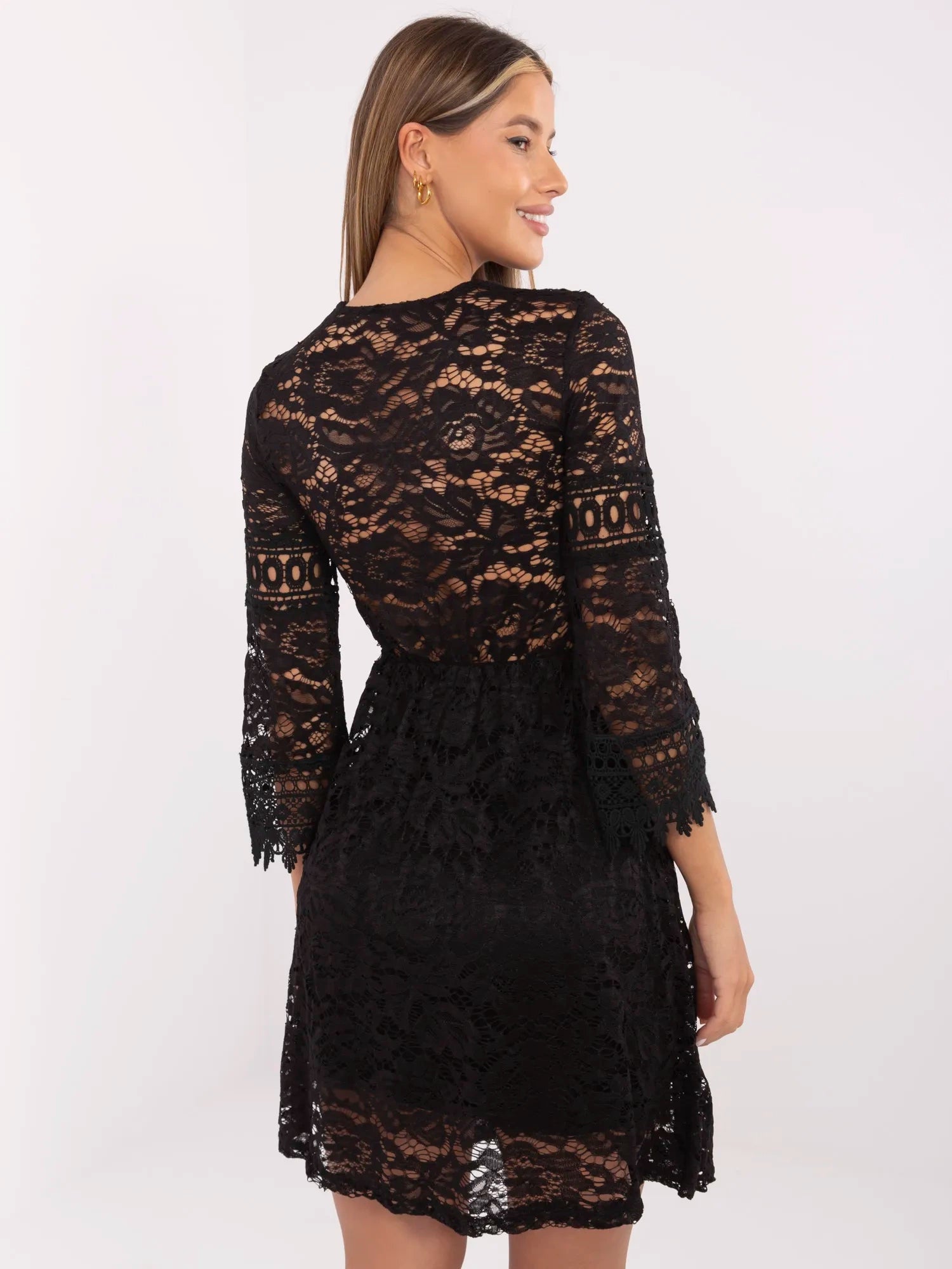 Wymiary sukienki w rozmiarze one size mierzone na płasko: szerokość pod pachami - 42 cm, szerokość w talii - 34 cm, długość rękawa - 50 cm, szerokość w biodrach - 62 cm, długość całkowita - 99 cm.