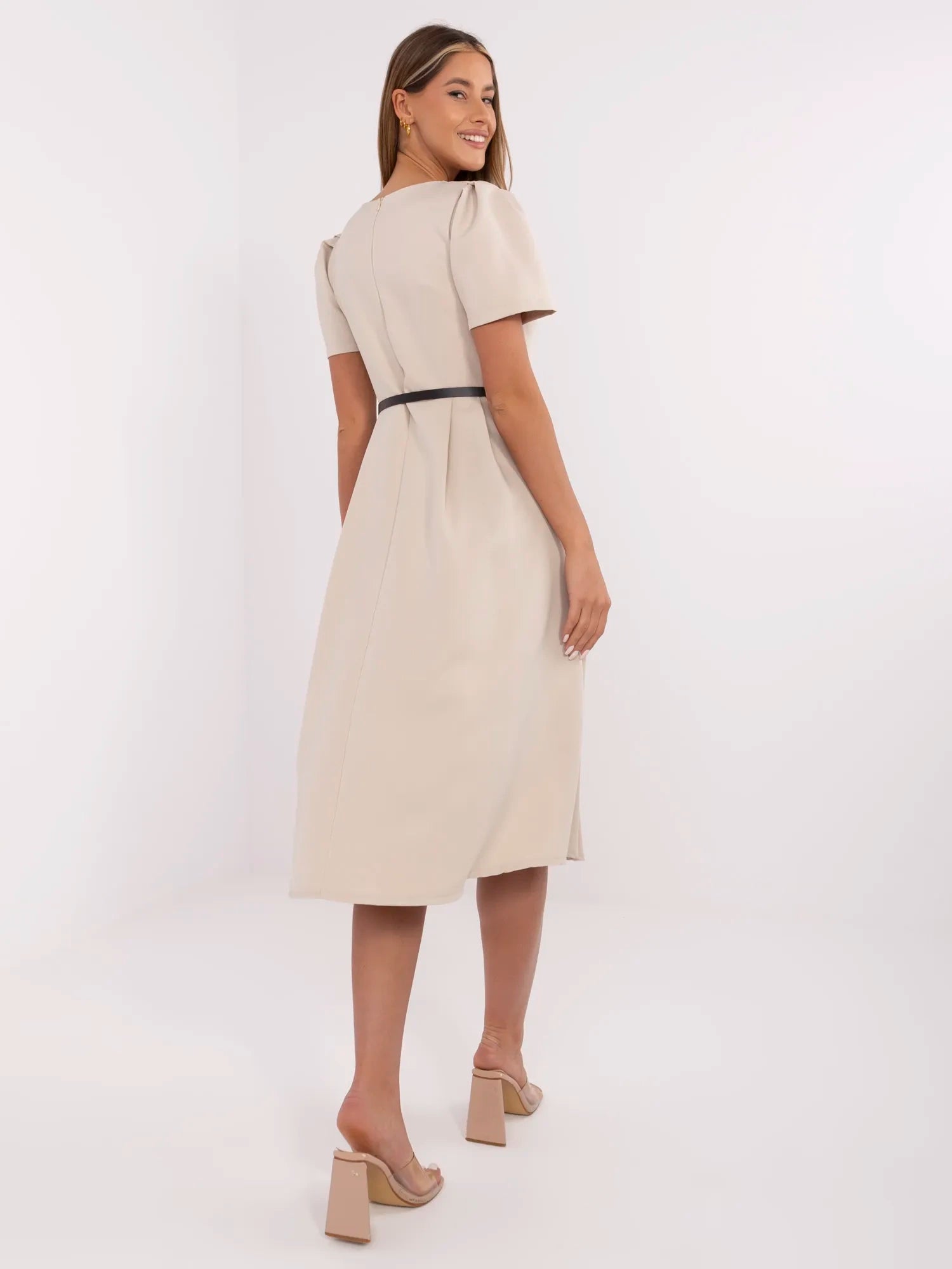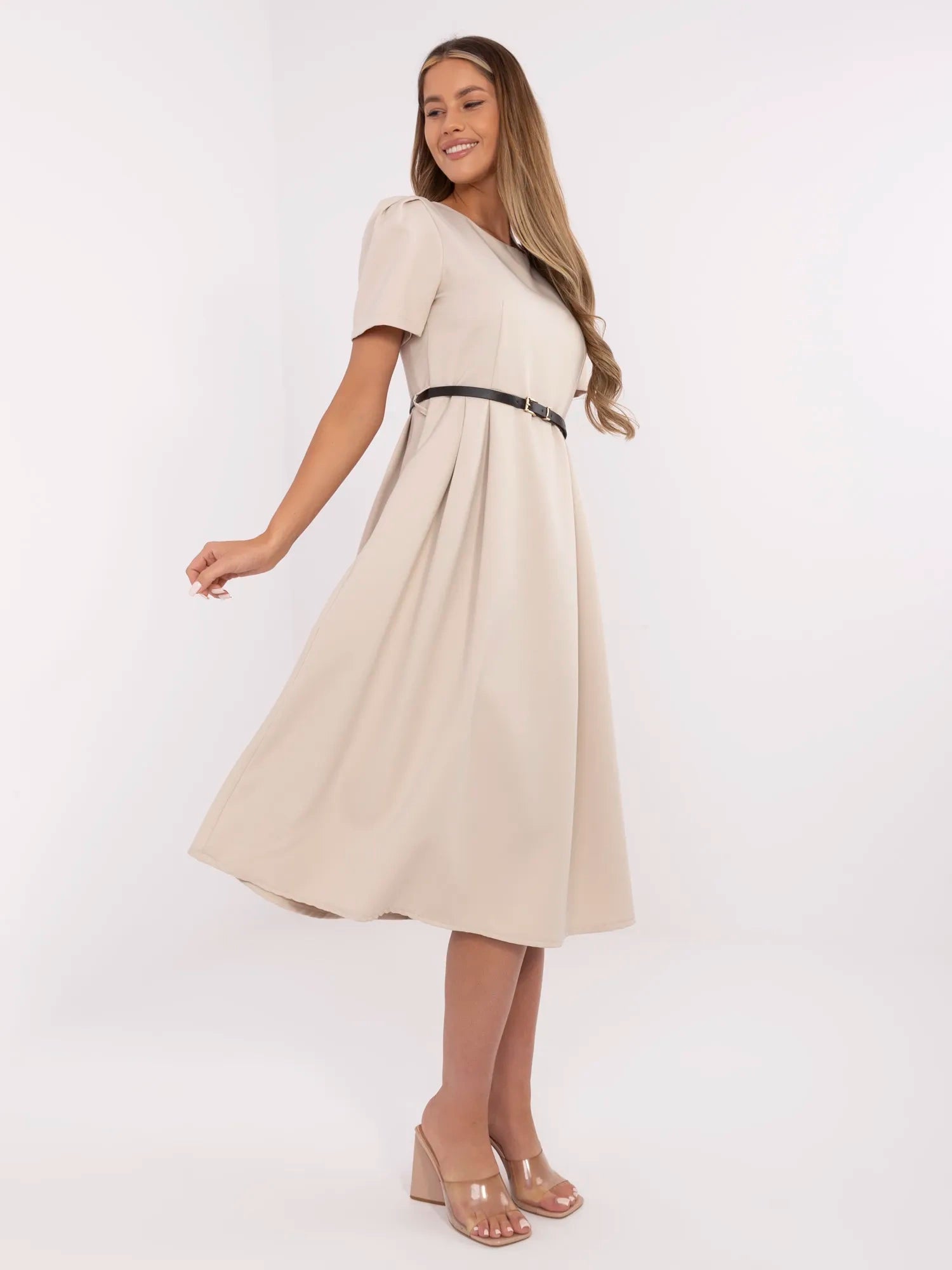 Wymiary sukienki w rozmiarze one size mierzone na płasko: szerokość pod pachami - 47 cm, szerokość w talii - 41 cm, długość rękawa - 23 cm, szerokość w biodrach - 65 cm, długość całkowita - 118 cm.