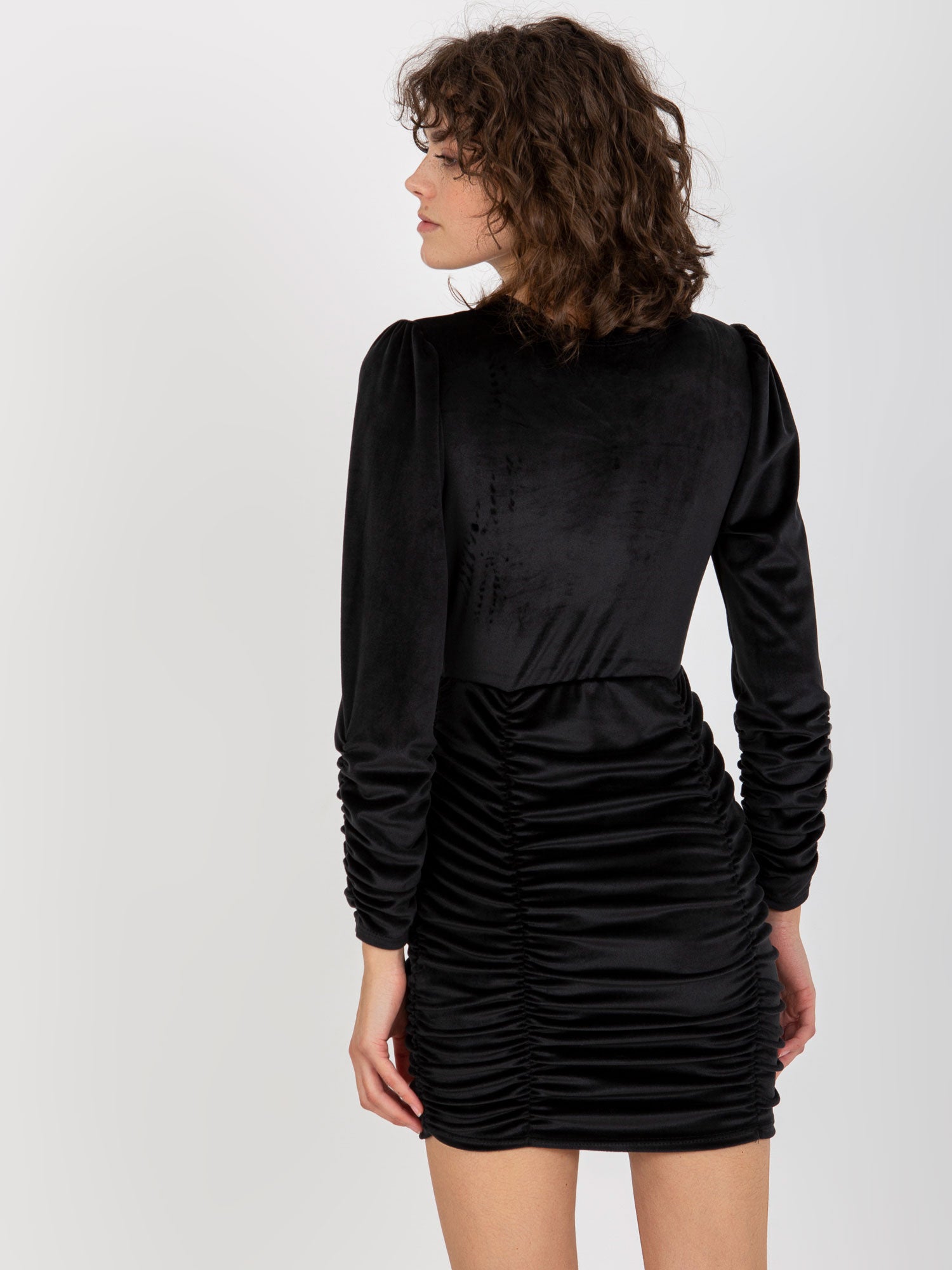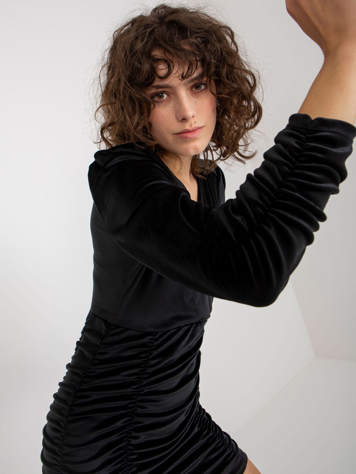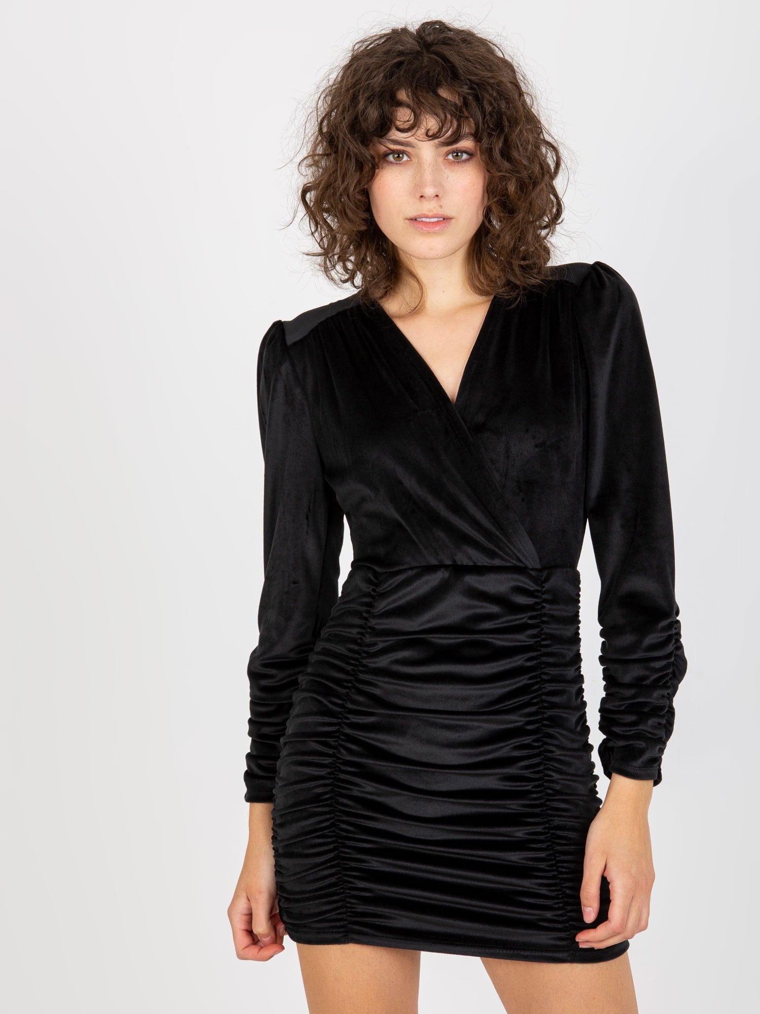 Czarna welurowa sukienka koktajlowa z marszczeniem RUE PARIS .