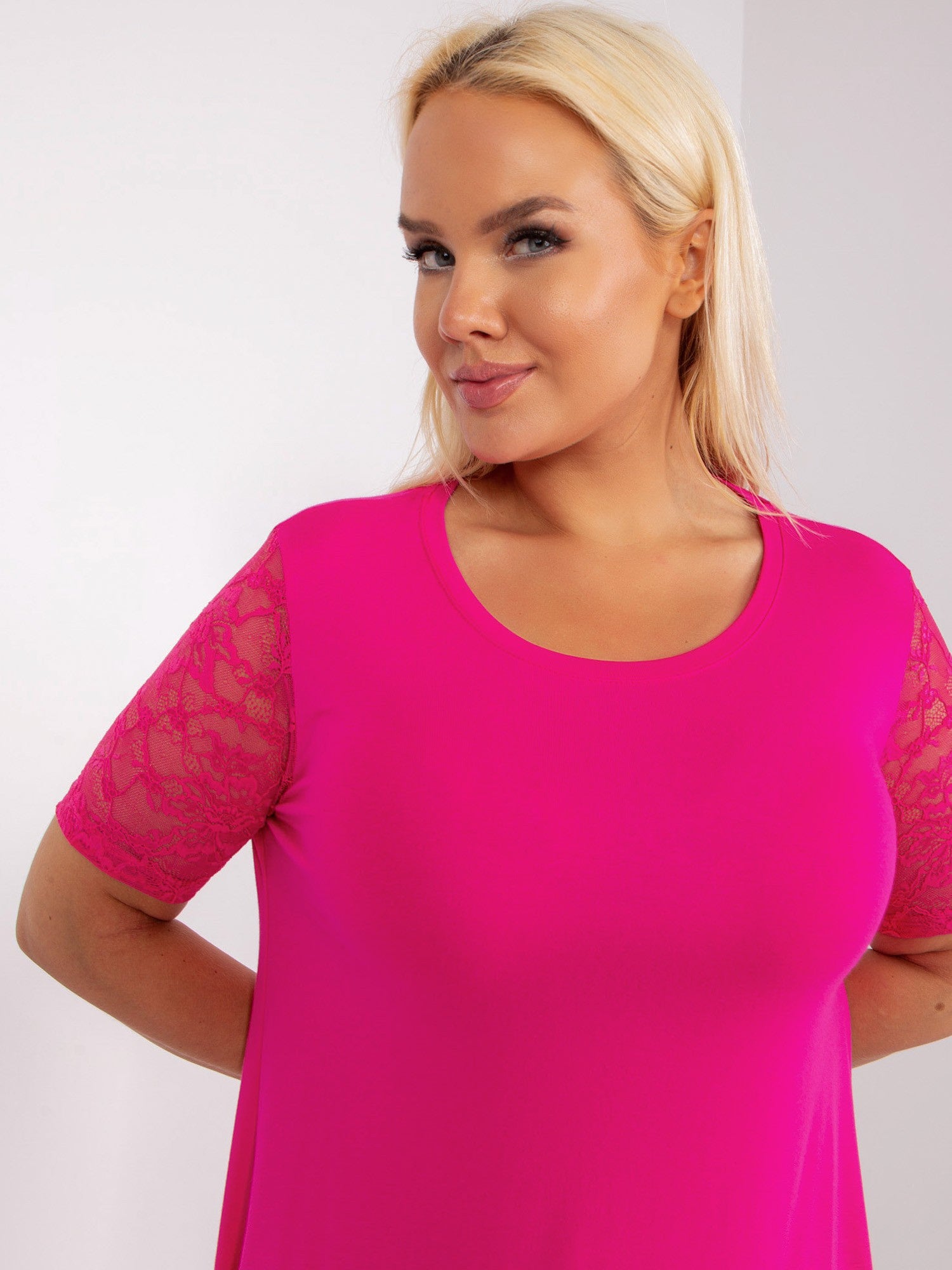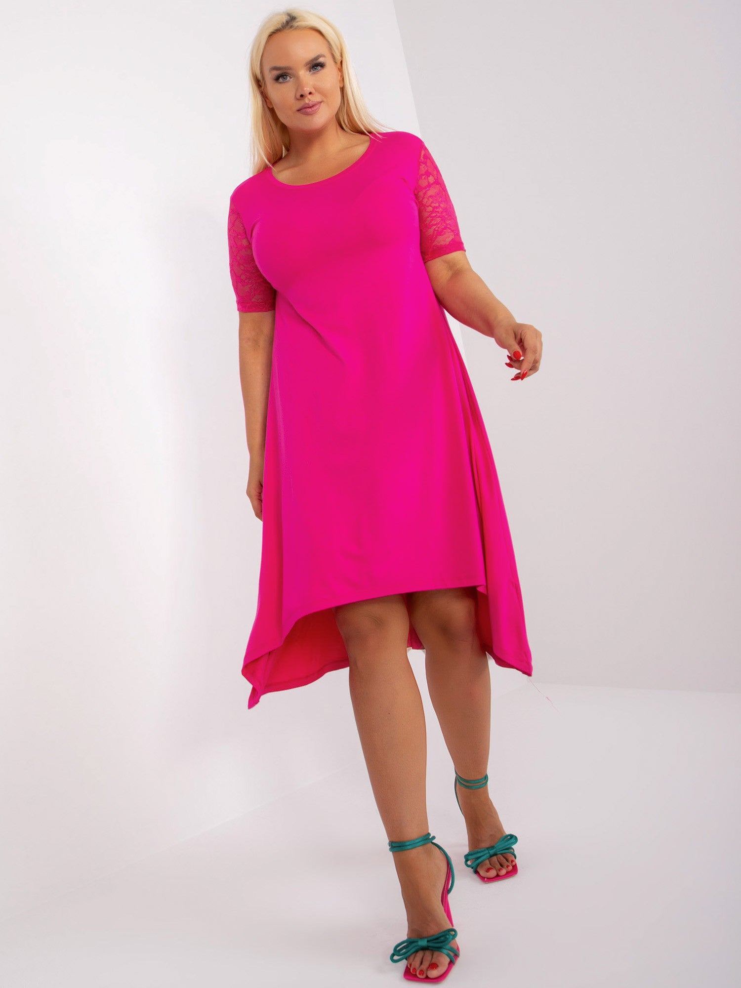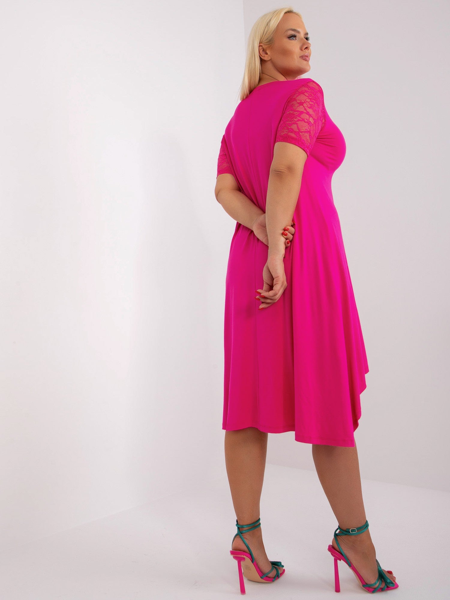 Fuksjowa letnia sukienka plus size z koronką .