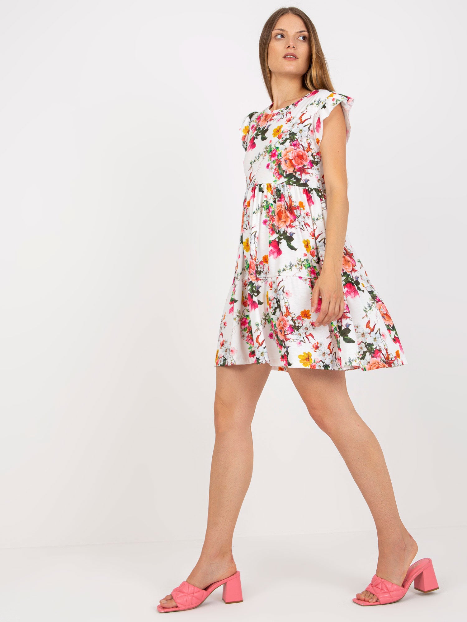 Biała mini sukienka w kwiaty z krótkim rękawem .