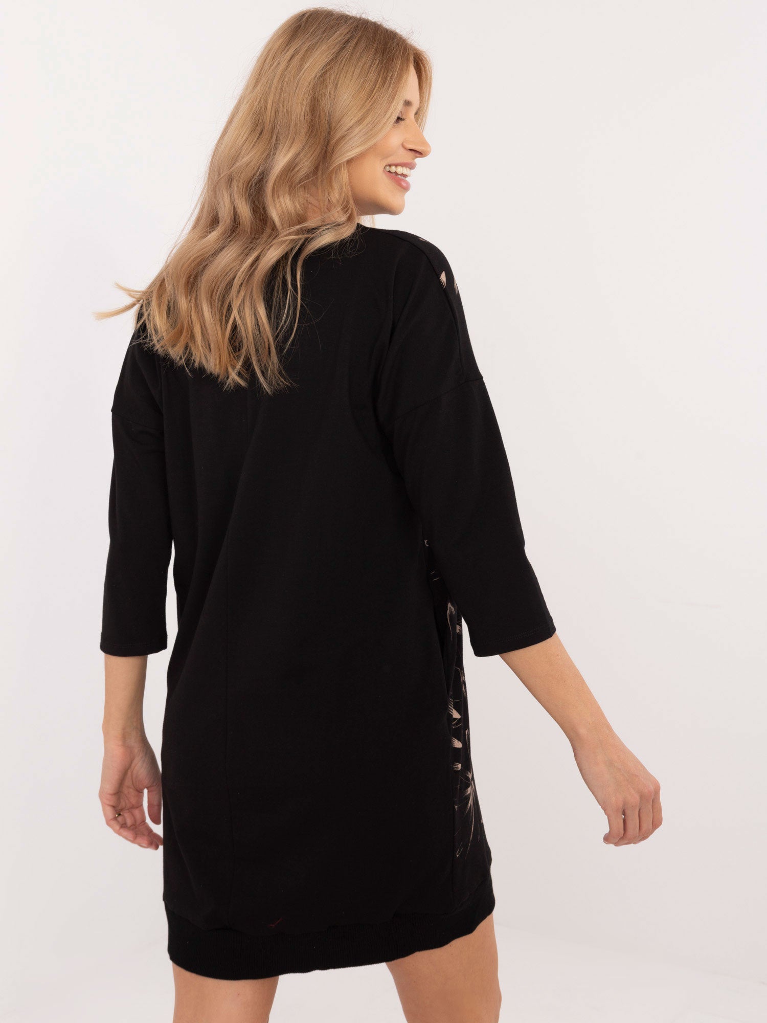 Wymiary sukienki w rozmiarze one size mierzone na płasko: szerokość pod pachami - 58 cm, długość rękawa - 30 cm (od szwu), długość całkowita - 87 cm.