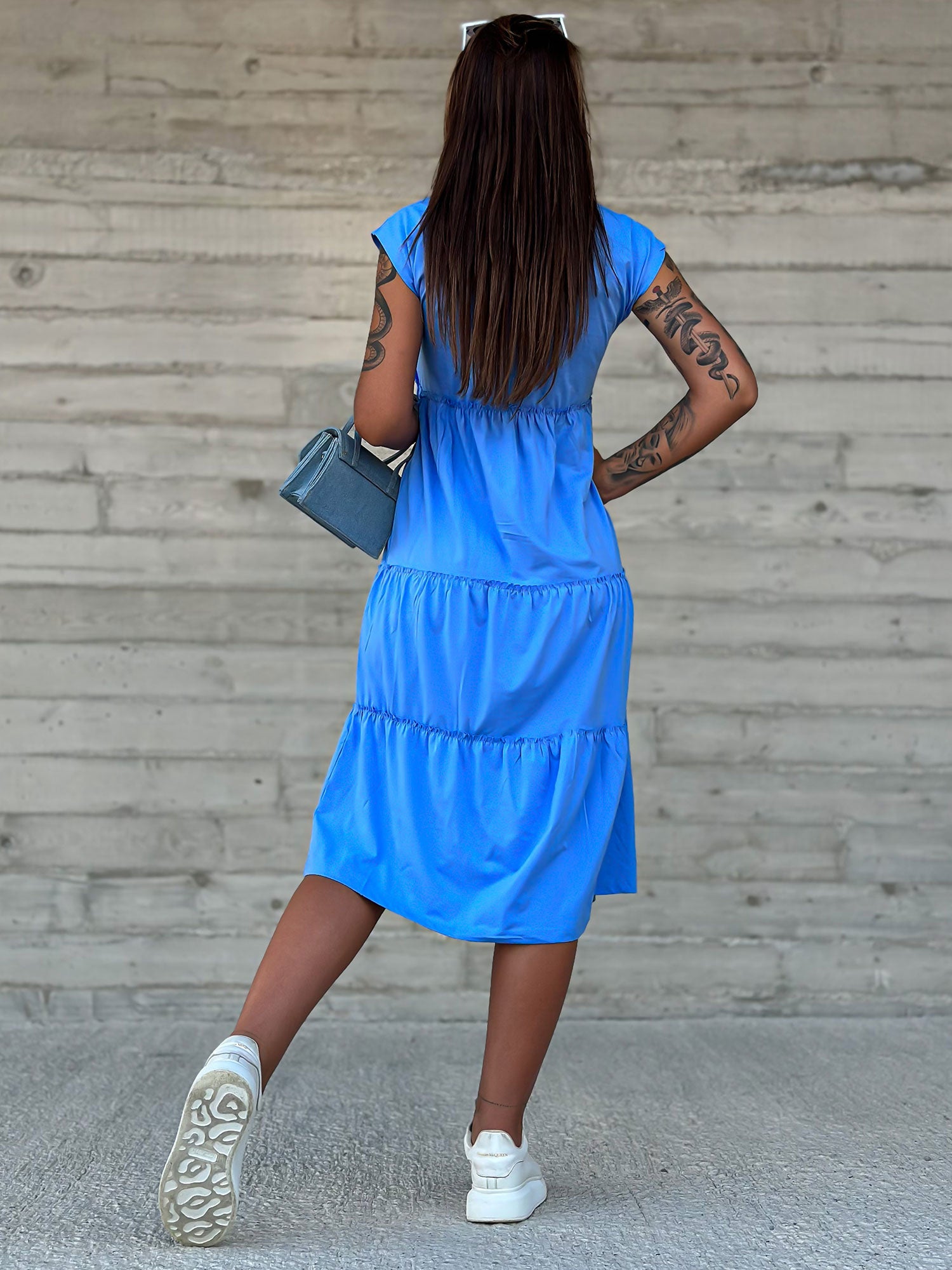 Niebieska sukienka z falbaną z bawełny MAYFLIES.