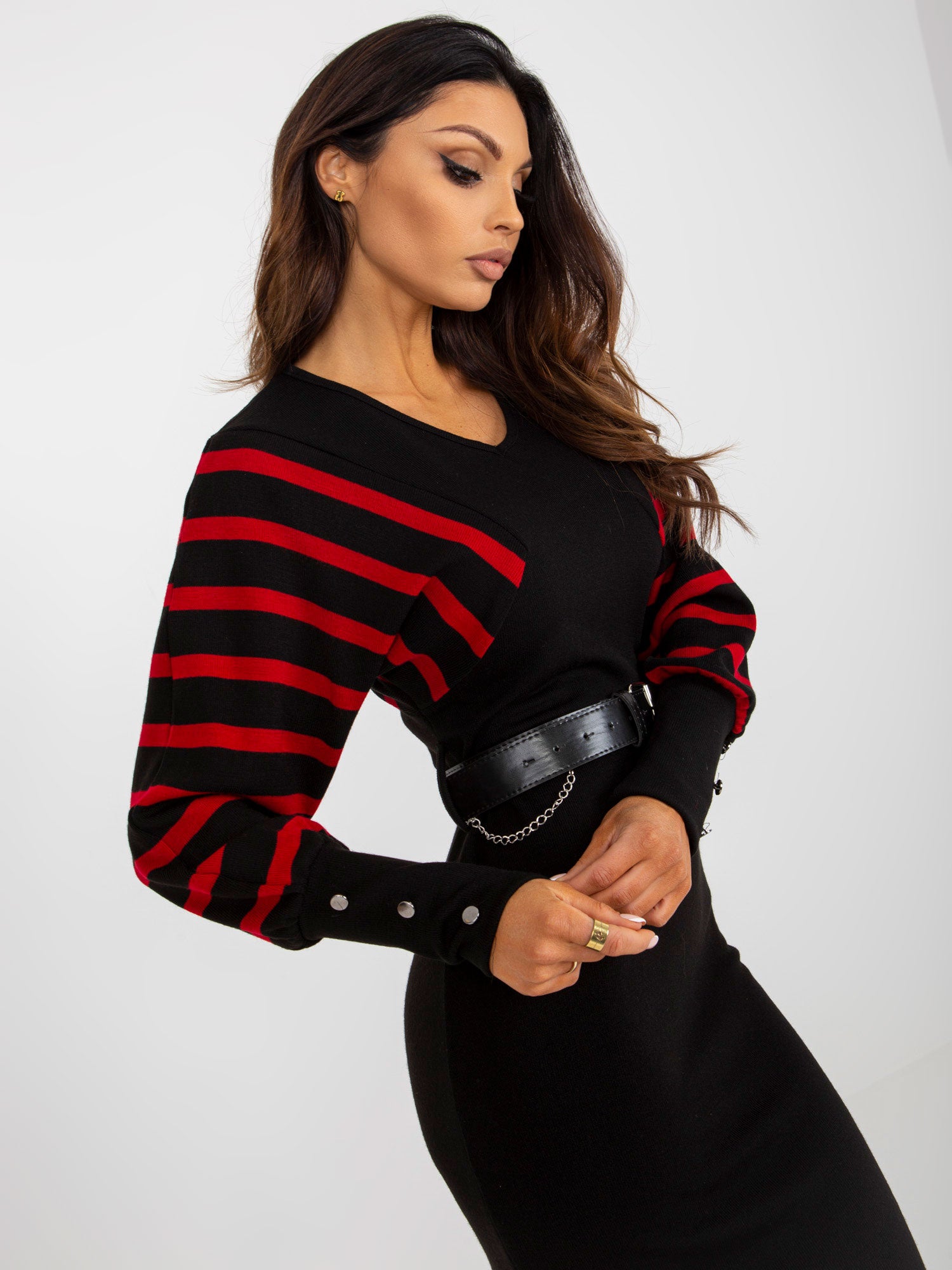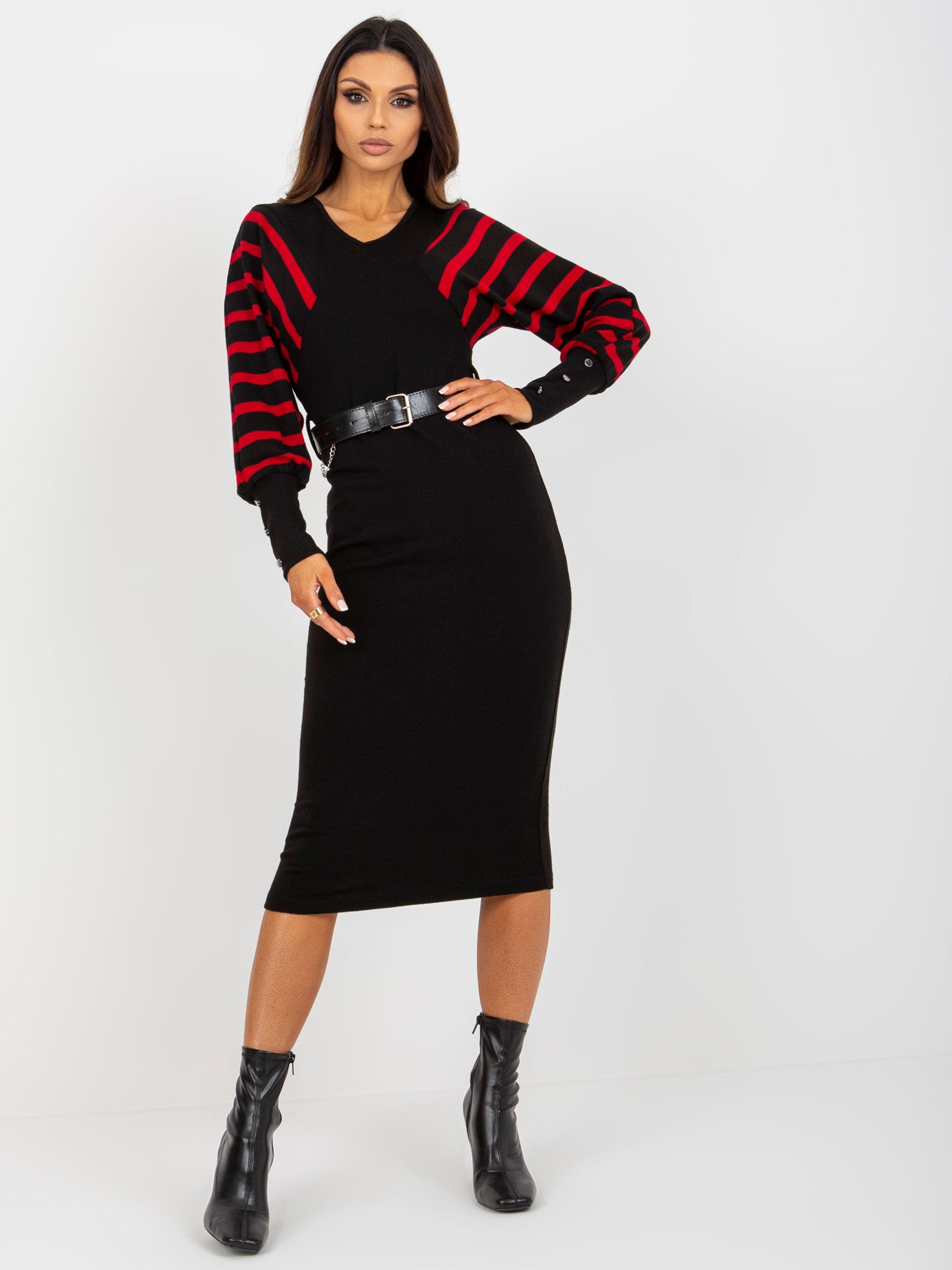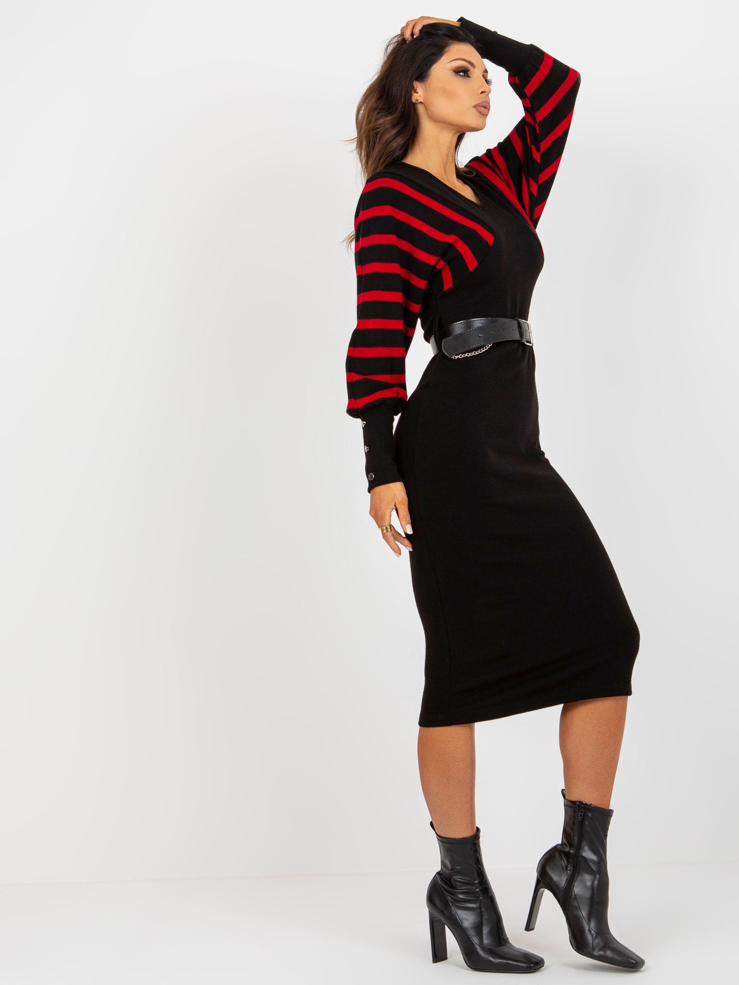 Czarno-czerwona midi sukienka dzianinowa z dekoltem V OCH BELLA .