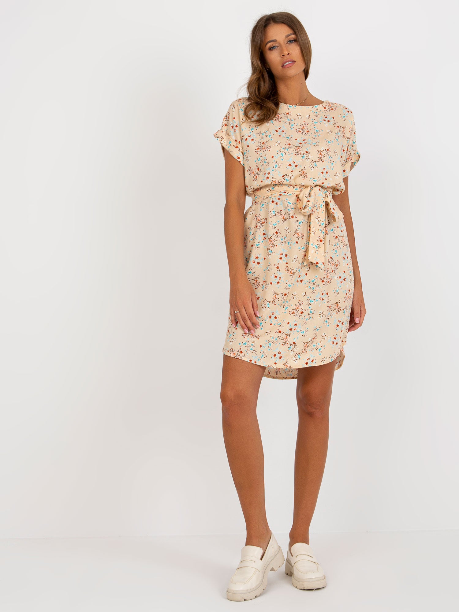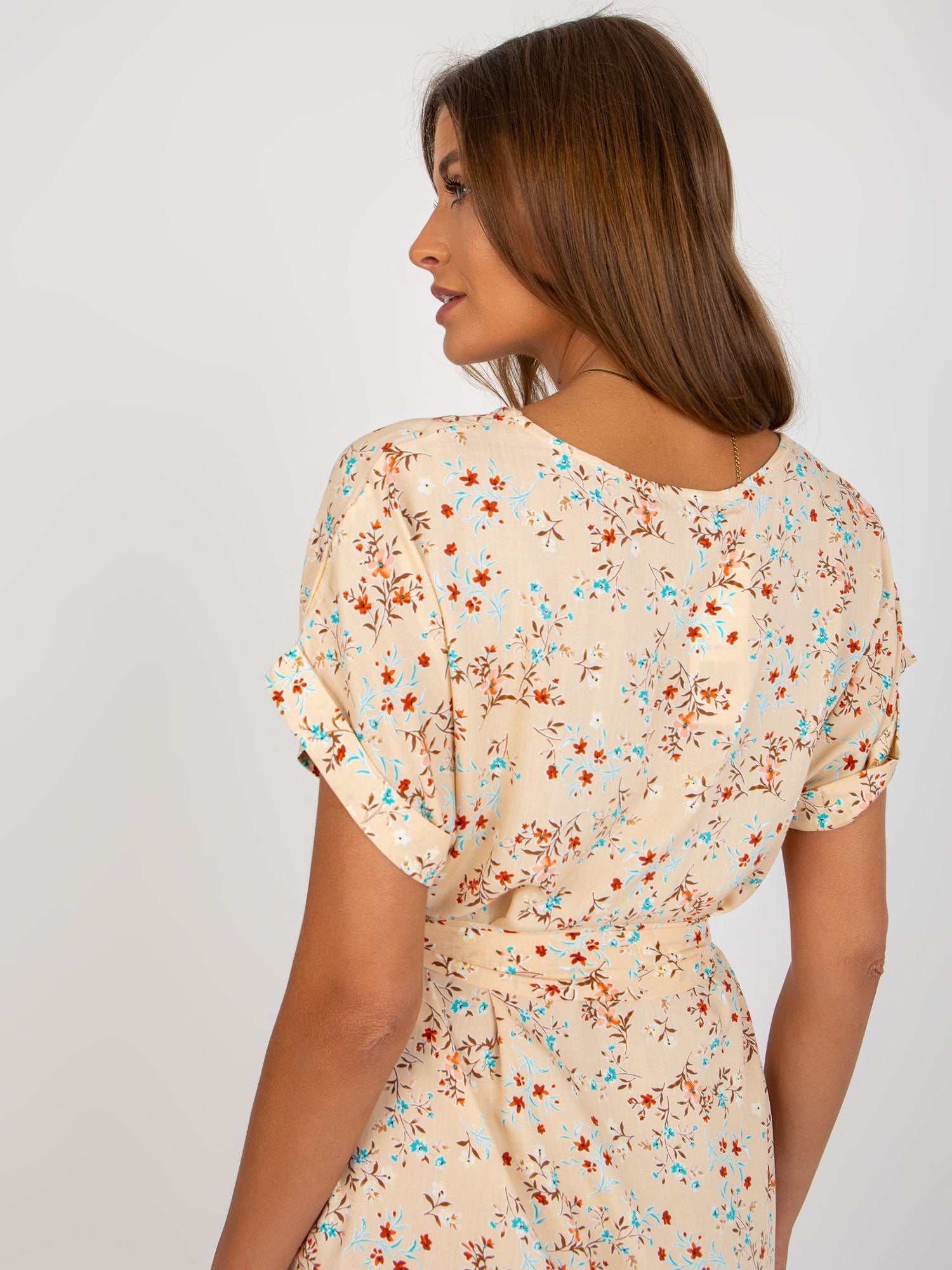 Beżowa sukienka w kwiaty do kolana RUE PARIS .